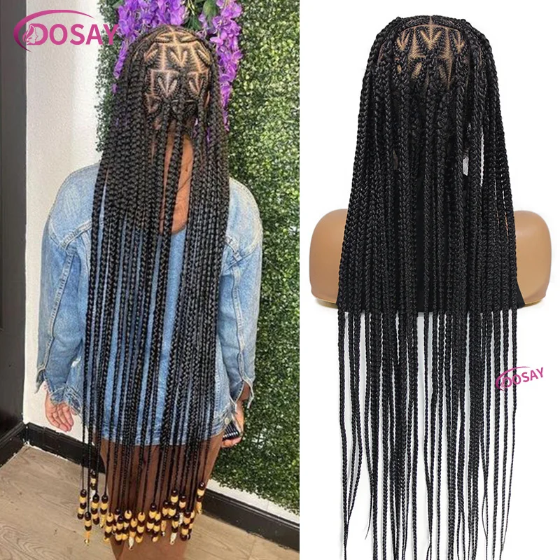 36'' Synthetic Full Lace Braided Wig Cornrow Braids Lace Front Wig For Black Women Knotless Heart Box Braid Lace Wig Baby Hair