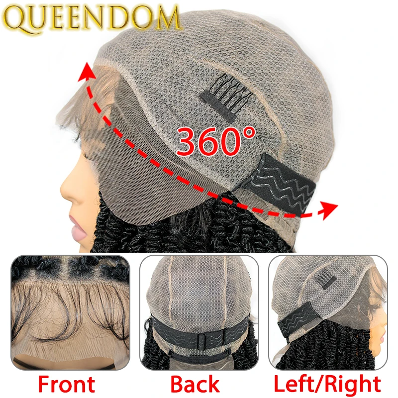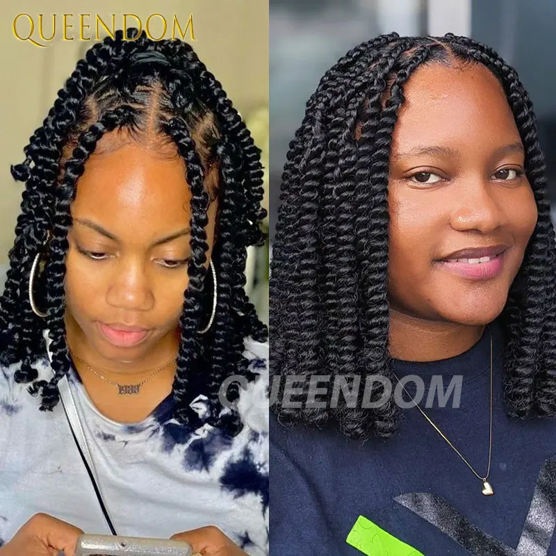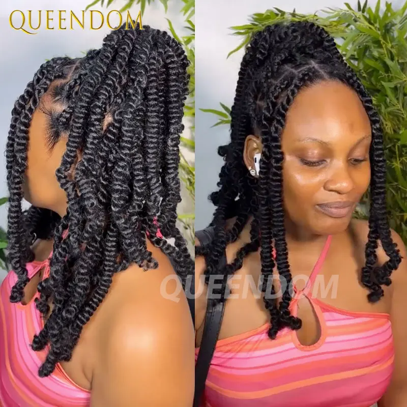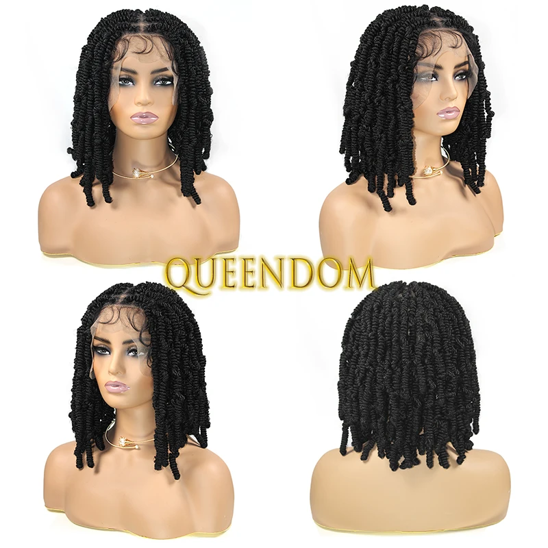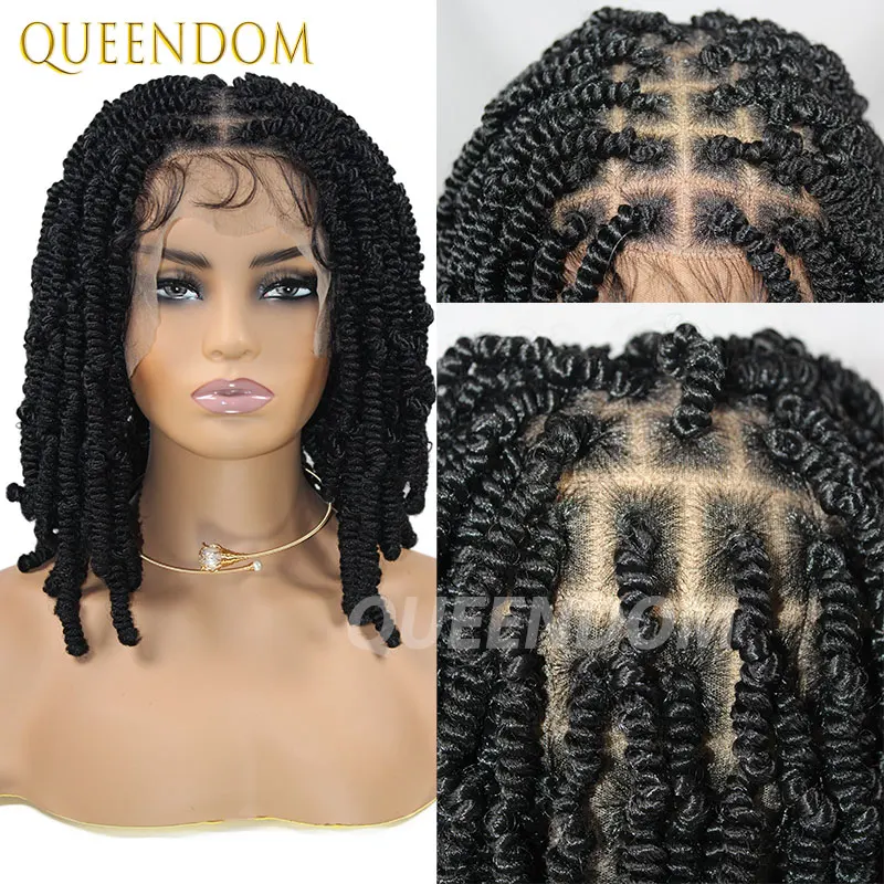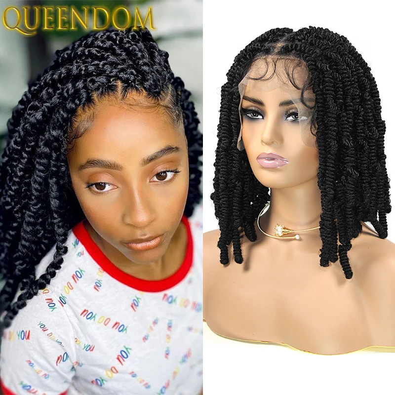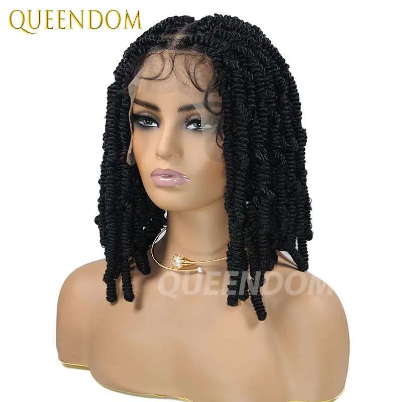 360 Full Lace Afro Spring Twist Crochet Hair Braided Wigs For Black Women Spiral Curls Braiding Wig Short Bob 12" Box Braids Wig