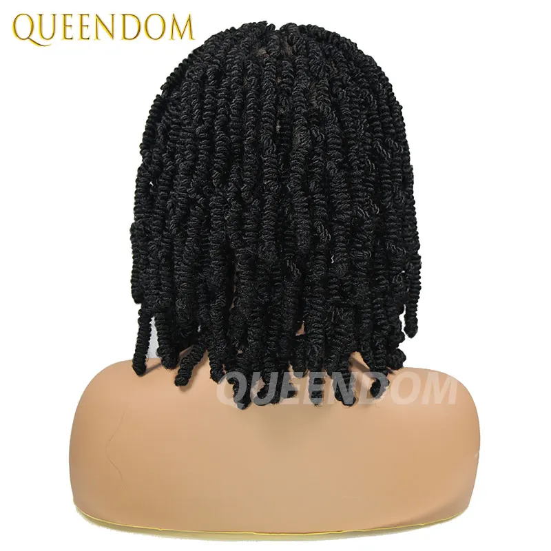 Spiral Curls Braided Wigs Spring Twist Hair 12 Inches Full Lace Curly Braided Wigs Afro Spring Crochet Dreadlocks Synthetic Wigs