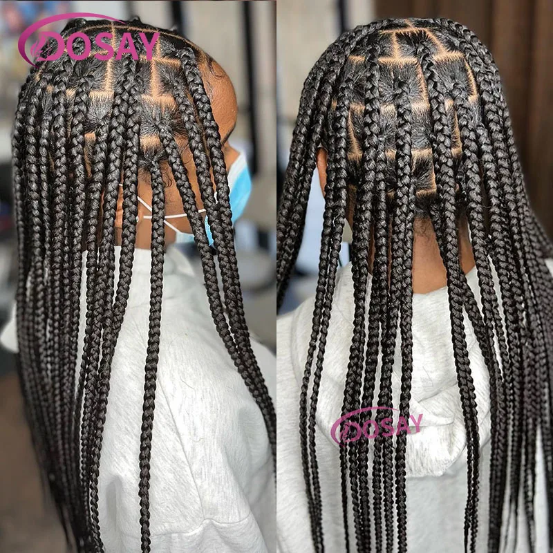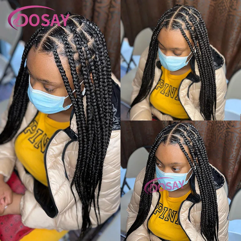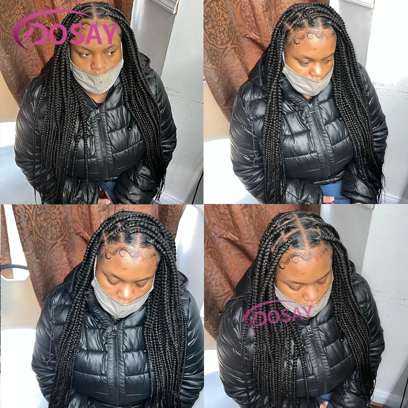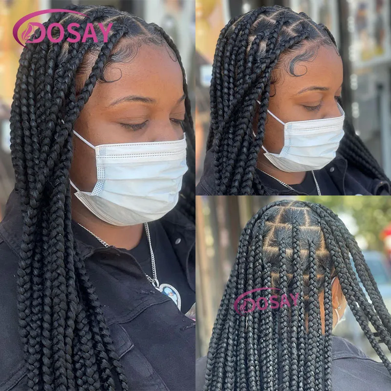 360 Full Lace Front Wig Big Square Knotless Box Braided Wig with Baby Hair Cornrow Synthetic Braids Lace Wig for Black Women