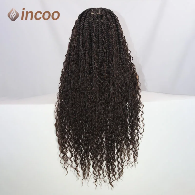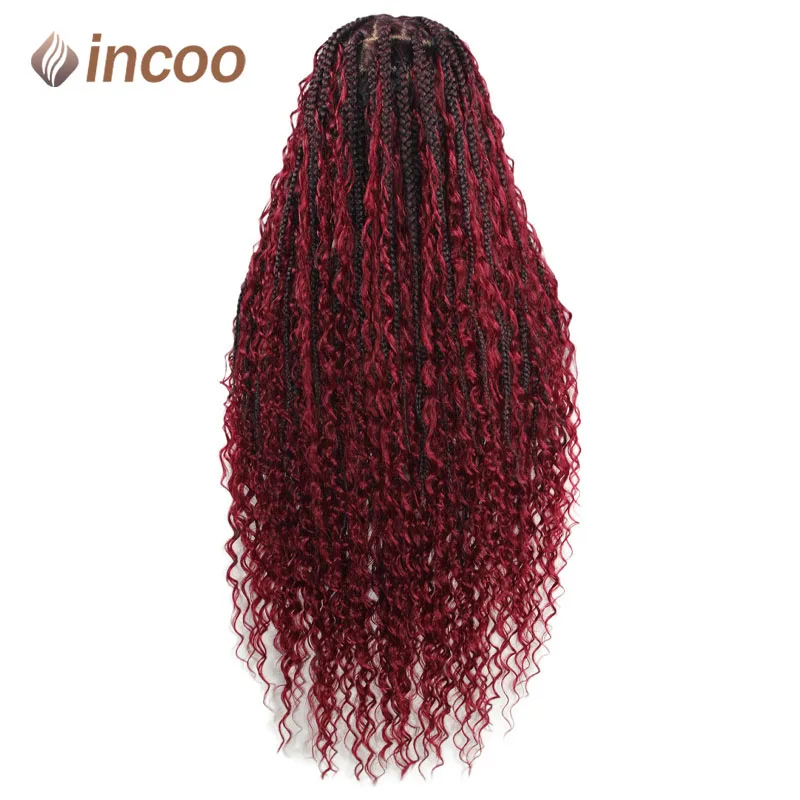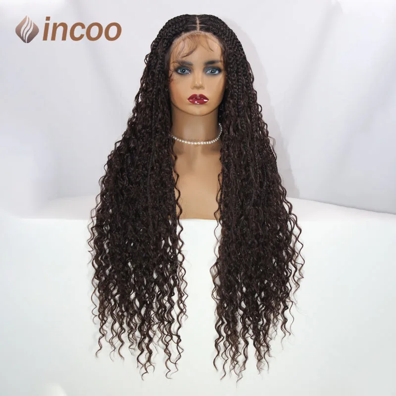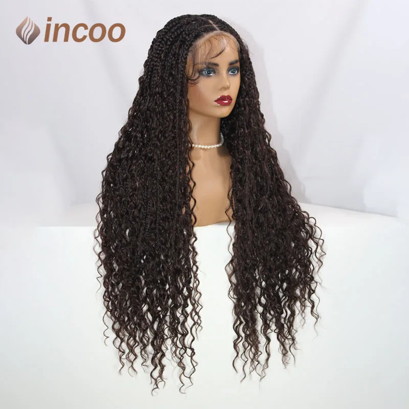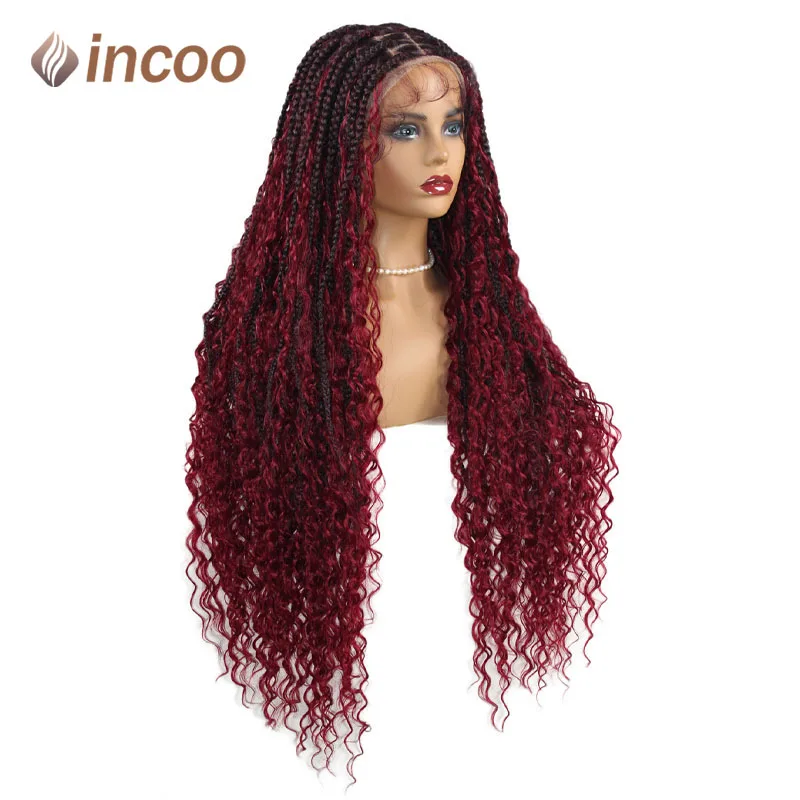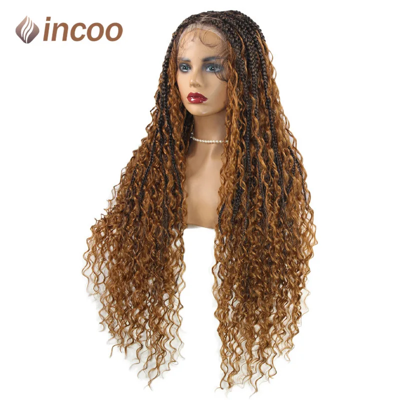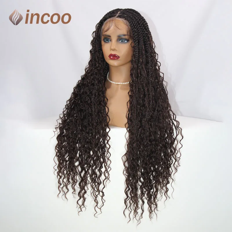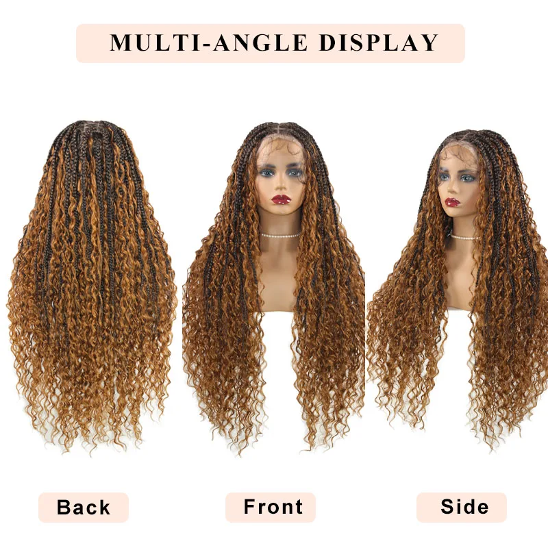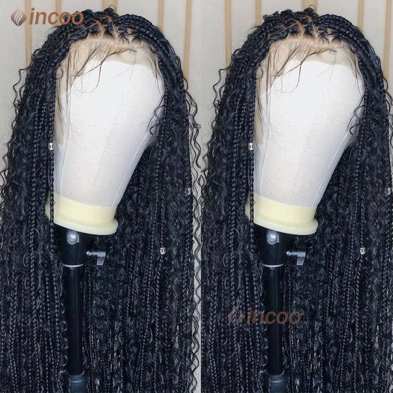 360 Full Lace Frontal Boho Braided Wigs Wave Curly Preplucked Goddess Locs Lace Braided Wig With Baby Hair Synthetic Box Braids Wig