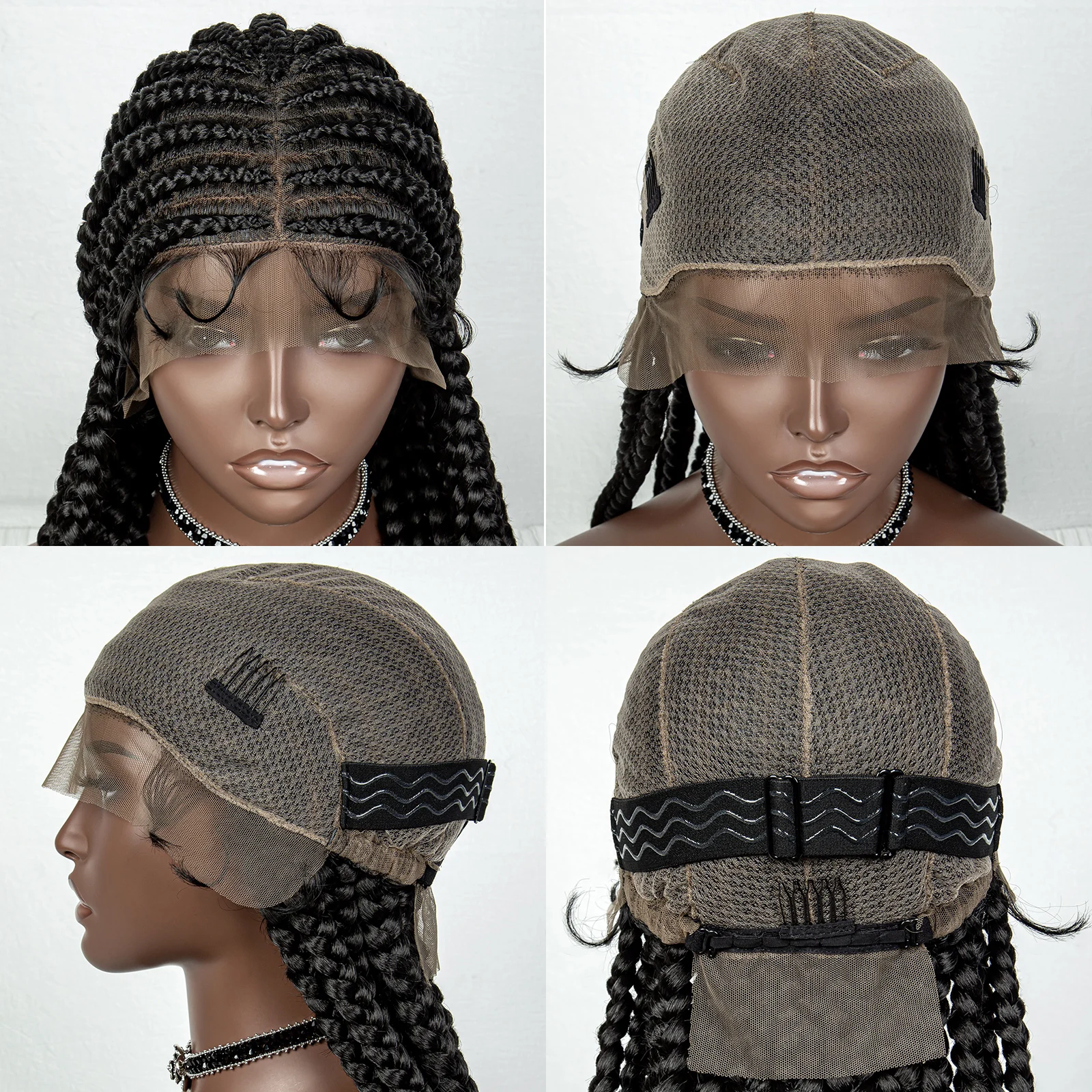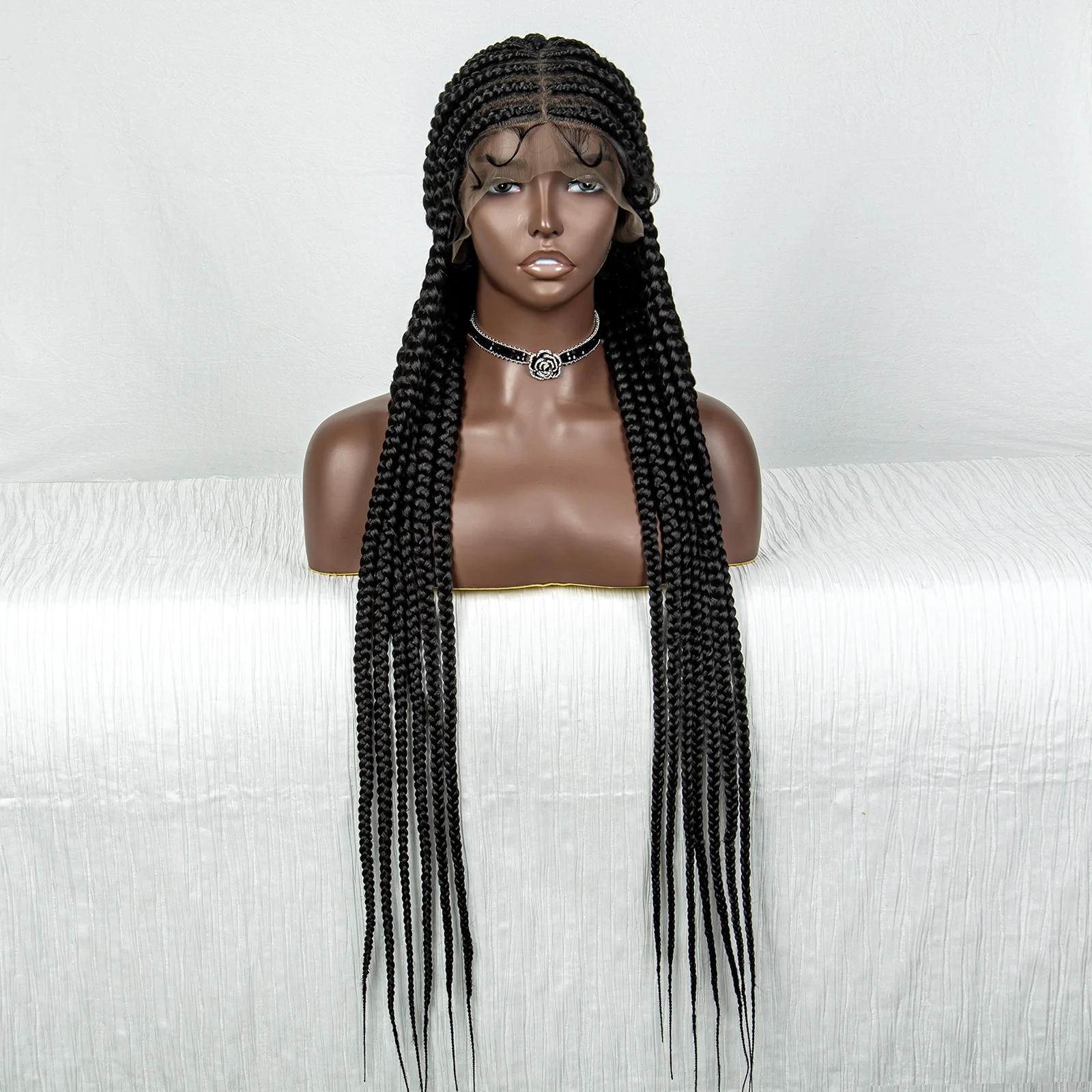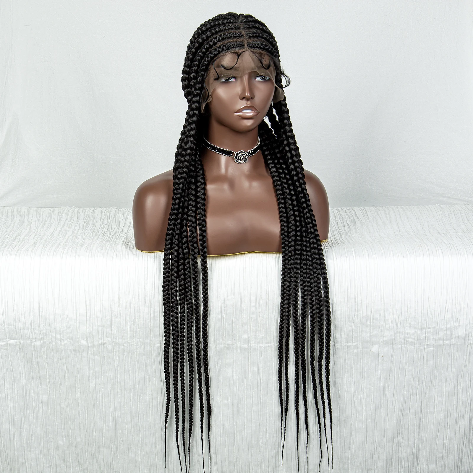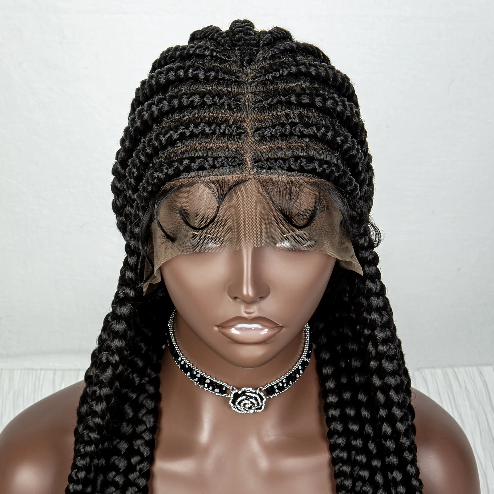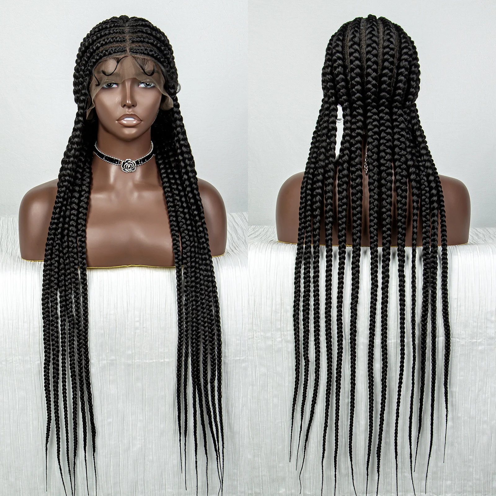 36inch Cornrow Braided Wigs Synthetic Tansparent Full Lace Braids Wig with Baby Hair for Black Women Lace Front Braided Hair Wig