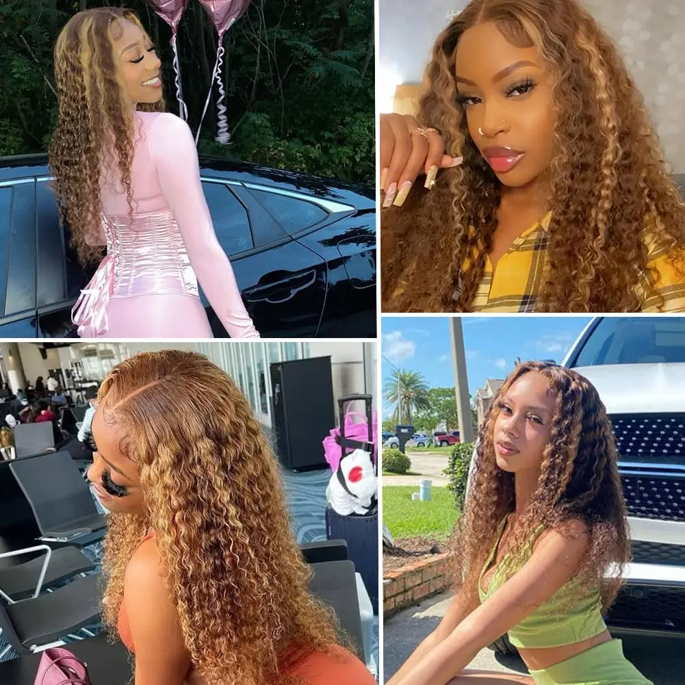 4/27 Highlight Water Wave Human Hair Wig 13x6 Lace Frontal Human Hair Wig For Women Curly Wig Transparent Lace Front Wig 180%