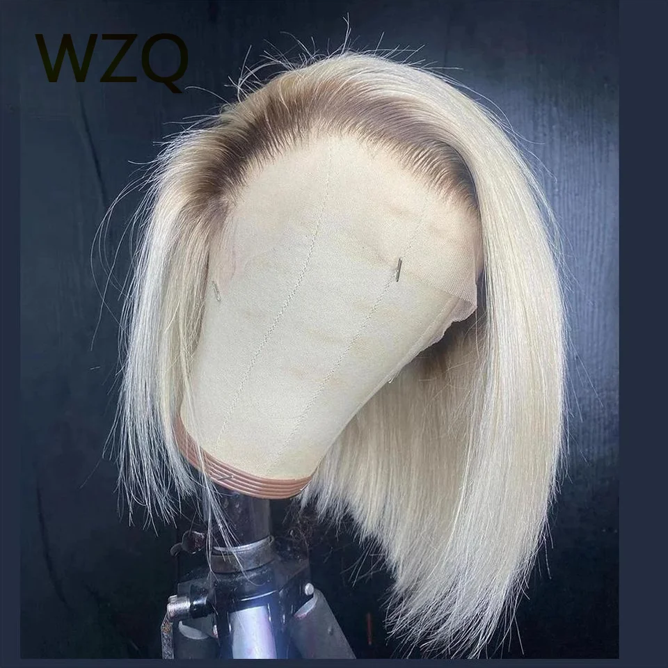 #4/60 White Colored Short Bob Wig 13x4 Transparent Lace Front Human Hair Wigs Straight Lace Frontal Wig Remy Honey Blonde Wig