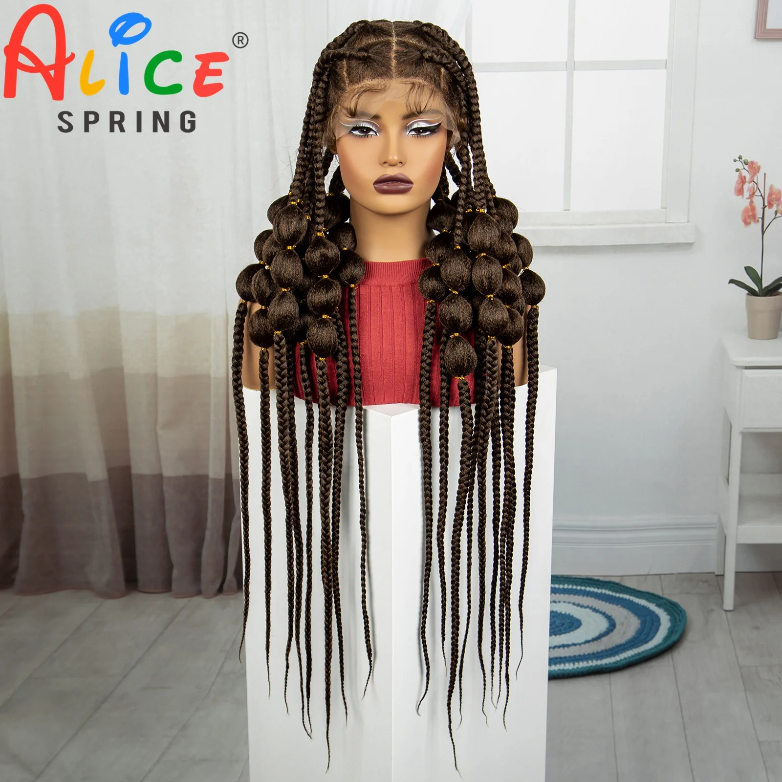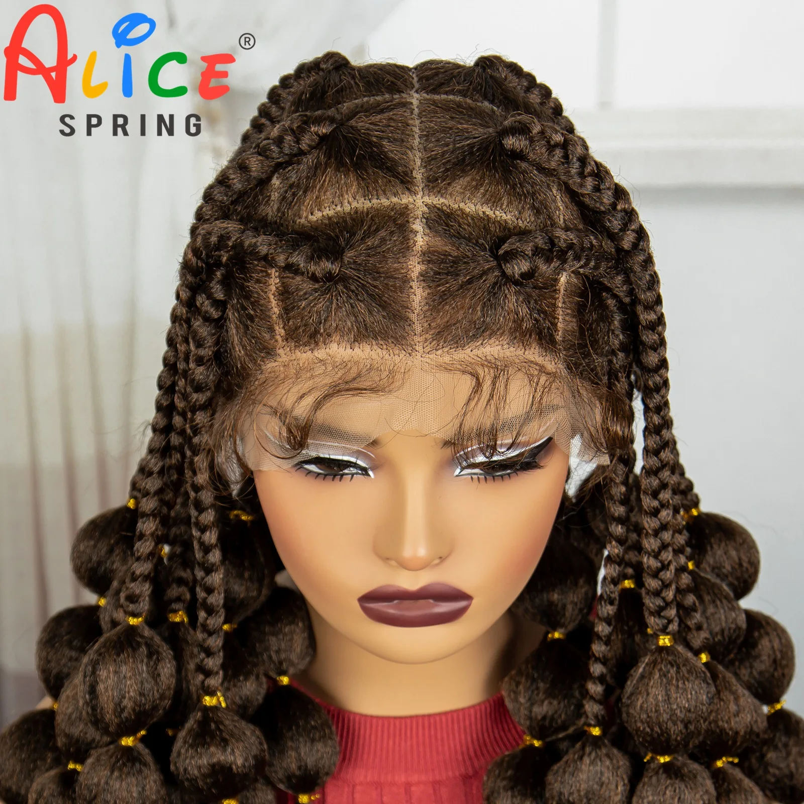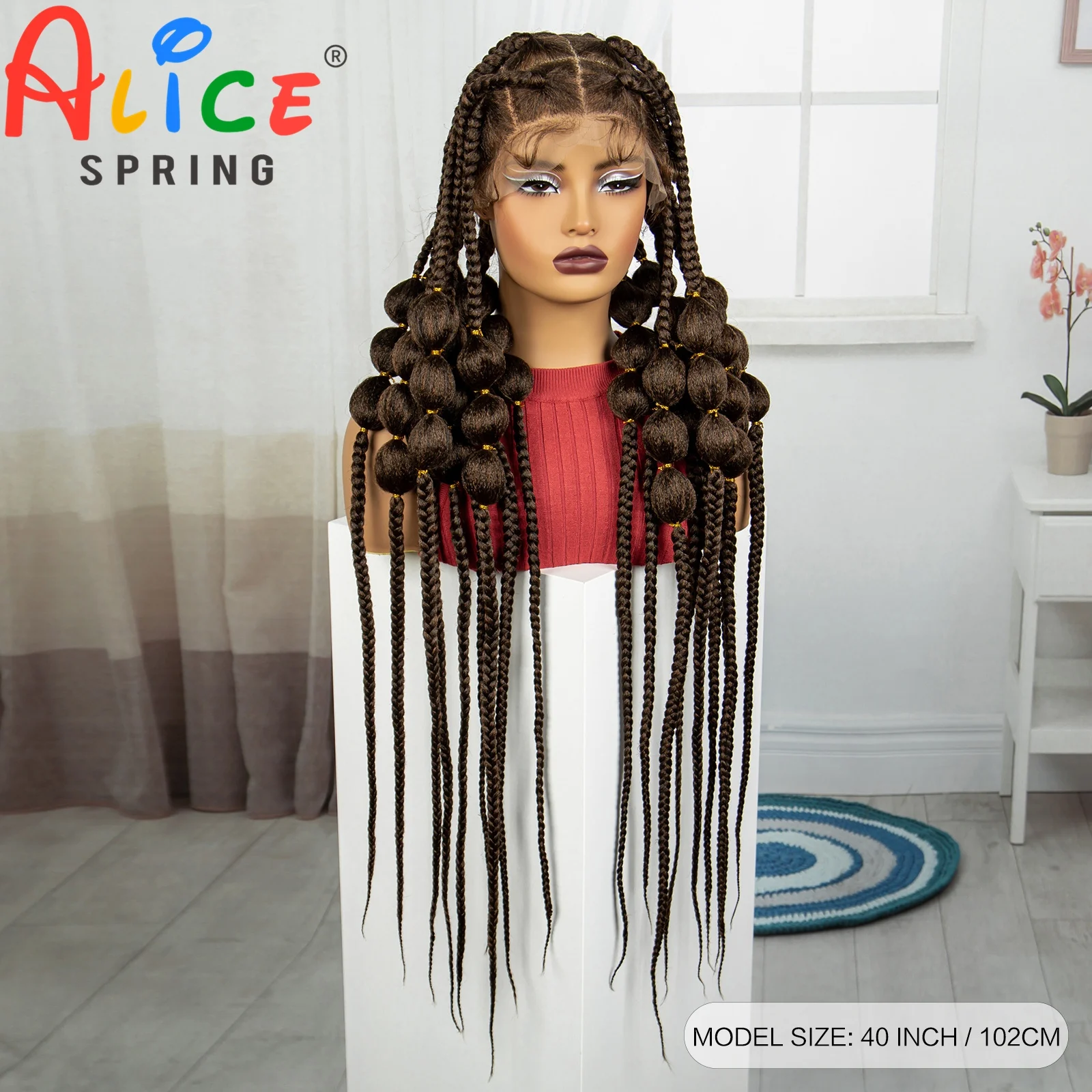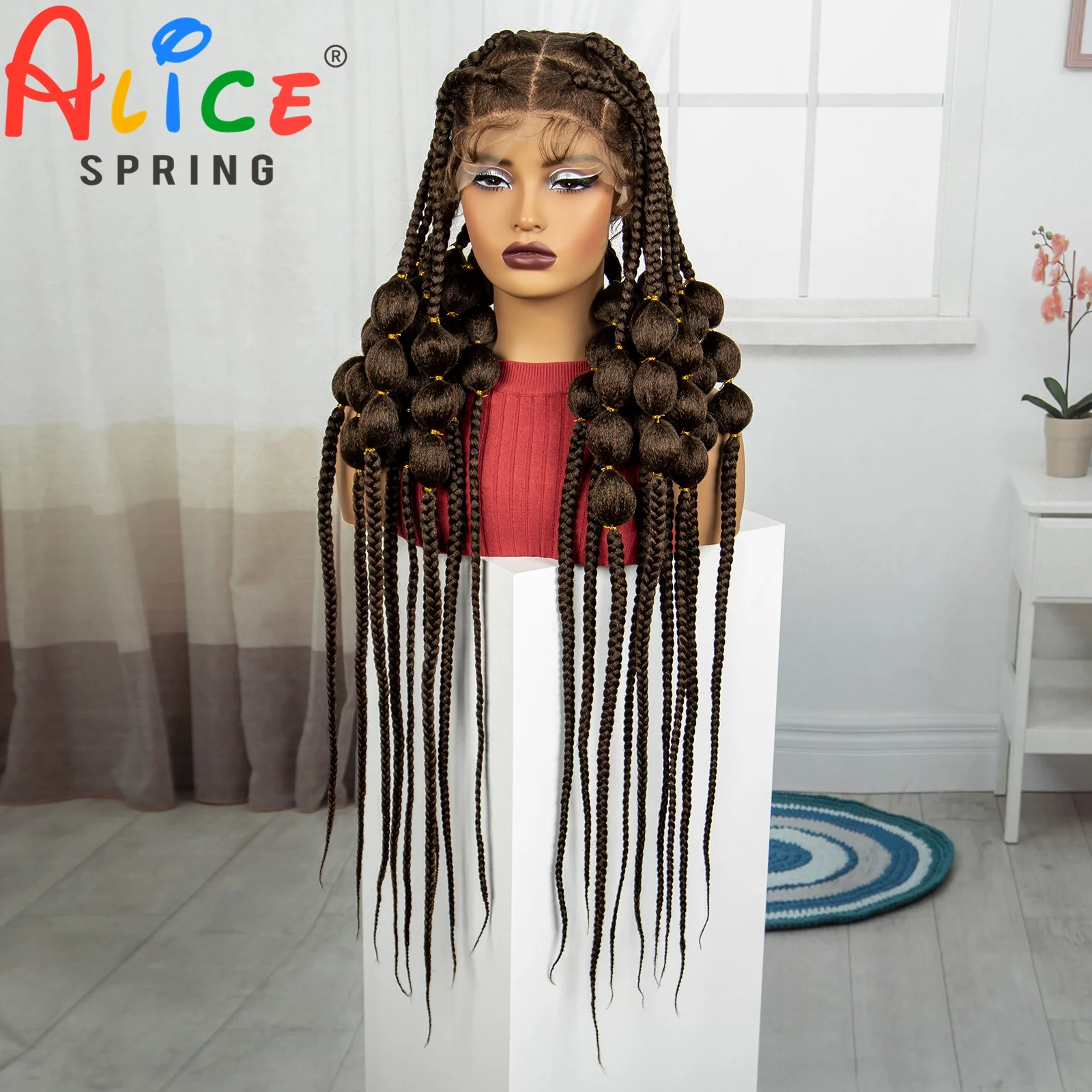 40 Inch 1B-30 Color Synthetic Full Lace Braided Wigs Synthetic Knotless Handmade Bantu Braids Lace Wig With Baby Hair For Women