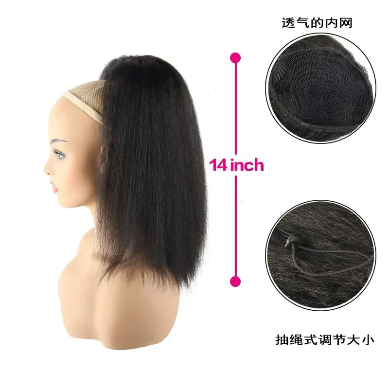 4Color 14"inch New long black & brown Wavy Dstring Ponytail Wig Curly Clip Hair Extension