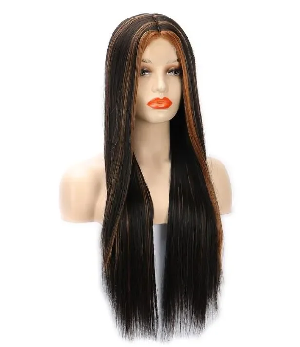 4Color New Fashion Women's Long black MIX Blonde Middle Part Ombre Hairs Straight small Lace Hair Wig