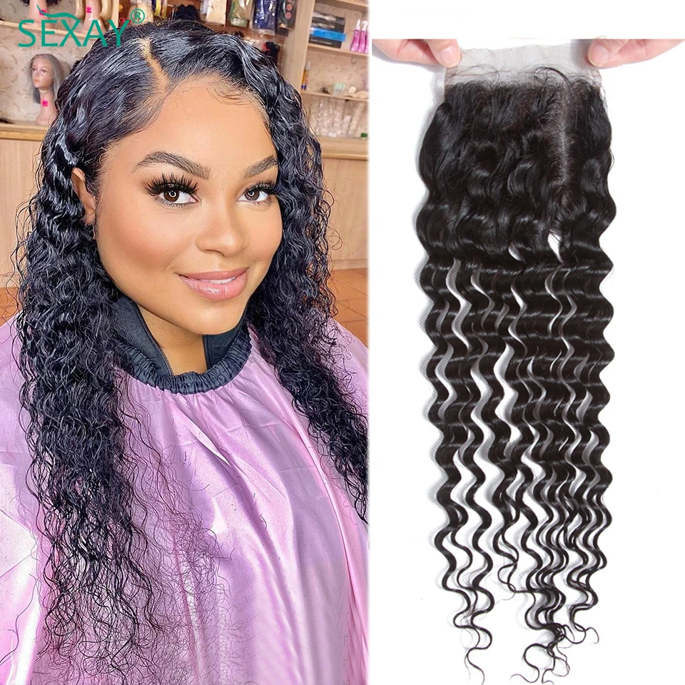 4x4 Deep Wave Lace Closure With Baby Hair Raw Indian Human Hair One Piece Water Wave HD Transparent Lace Closures Only For Black Women