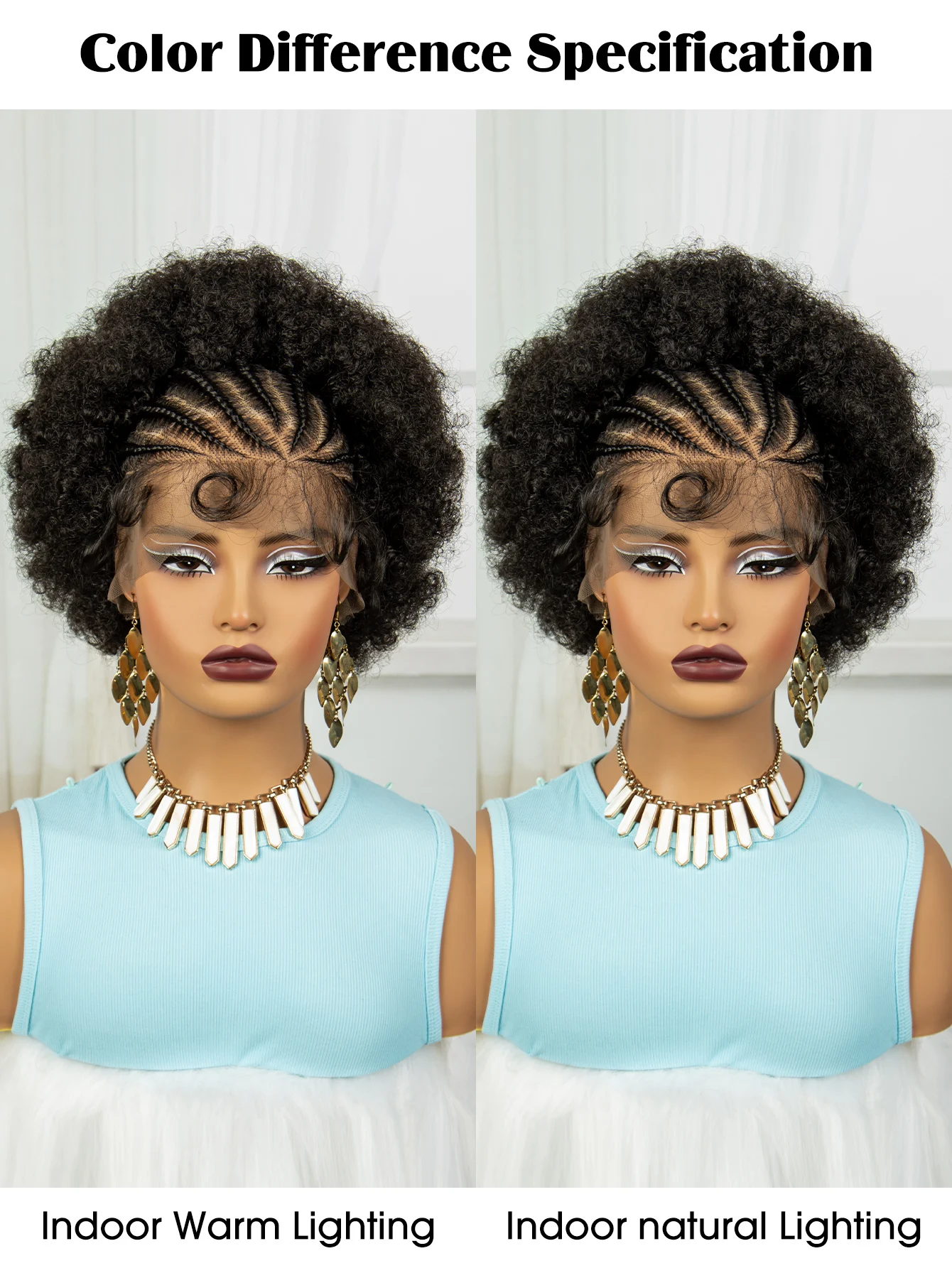 6 Inch 13x6 Transparent Synthetic Lace Frontal Afro Curly Braided Wigs With Baby Hair For Black Women Short Curly Braids Wigs
