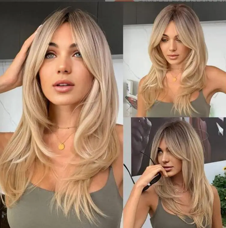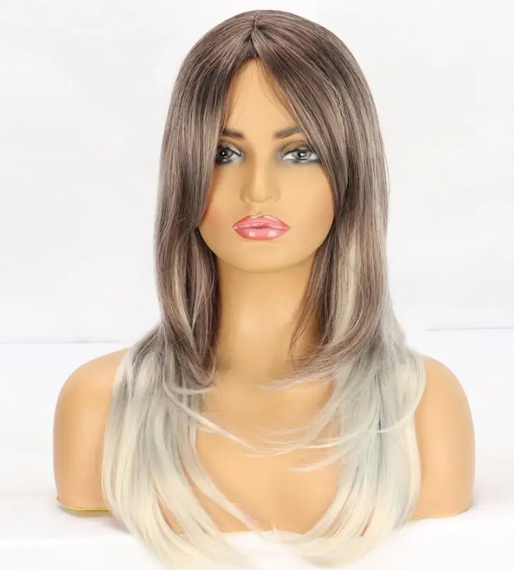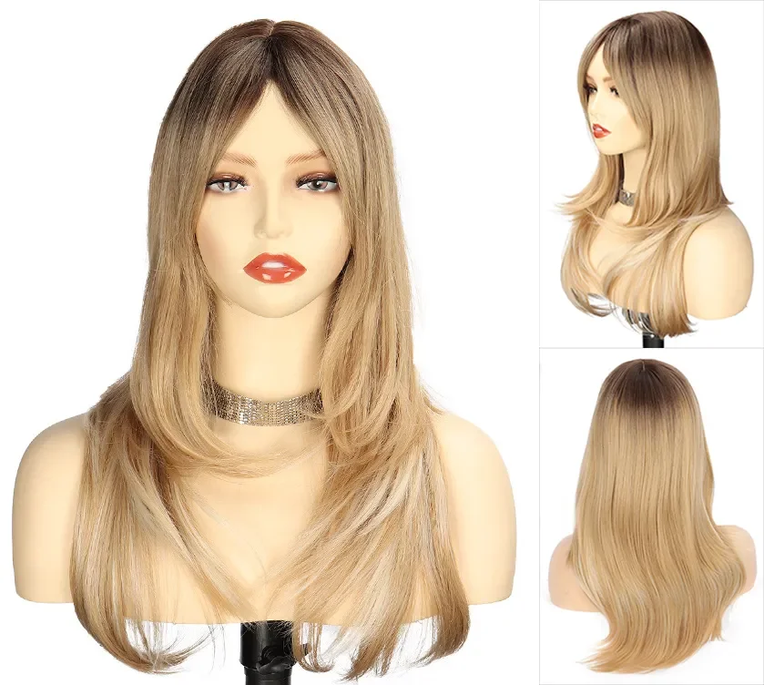 60cm New Women's Long mixed Middle Part Ombre Wavy Cosplay Party Hair Full Wig