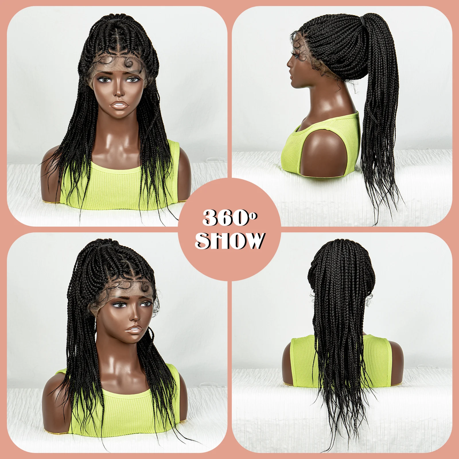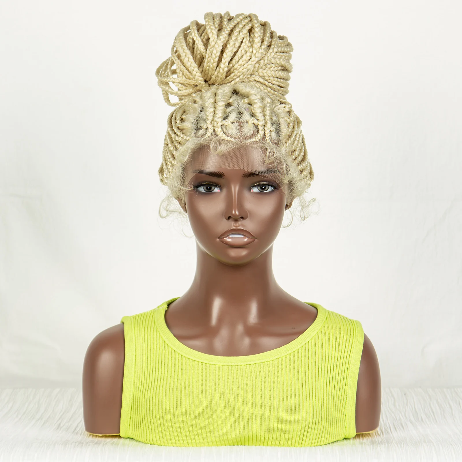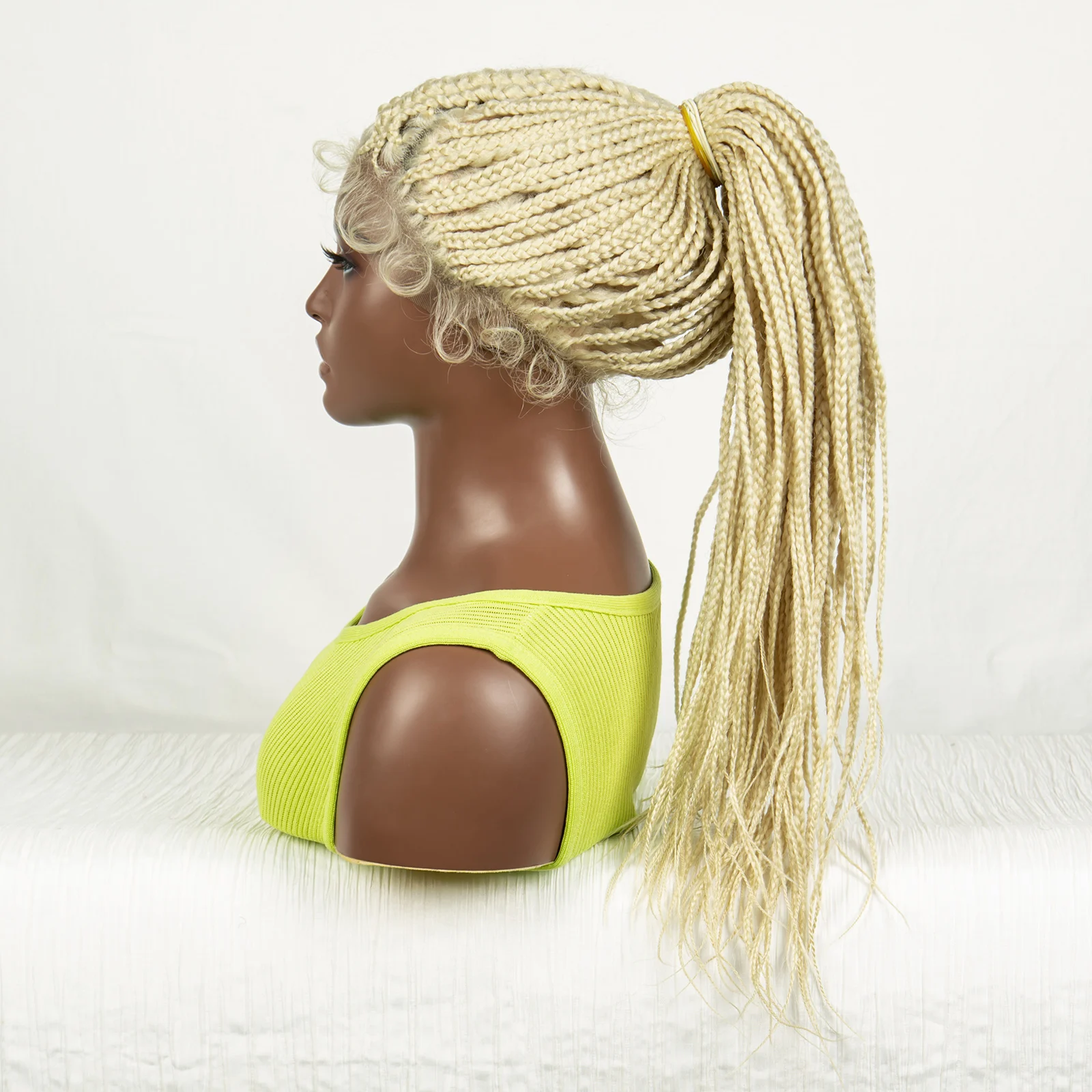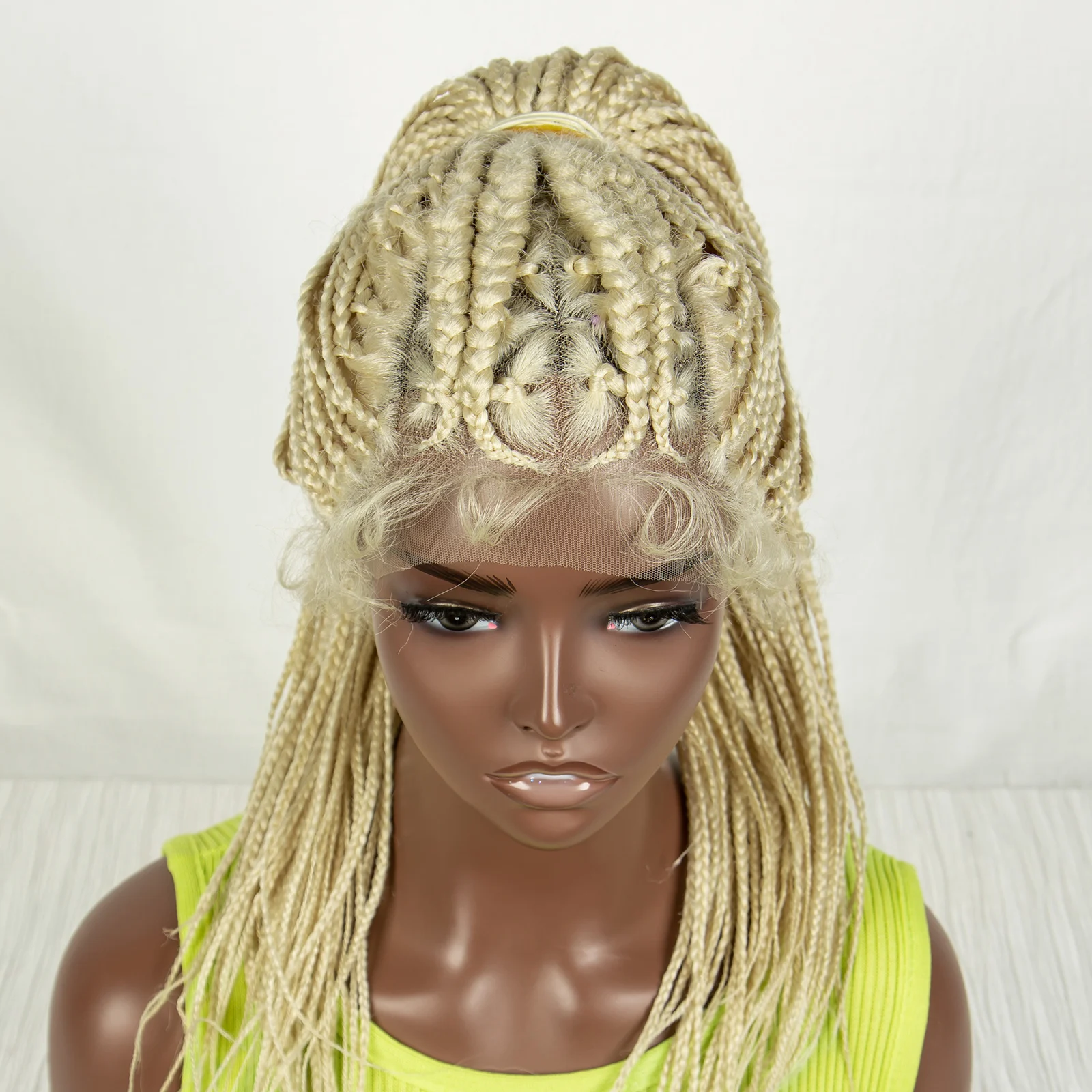 613 Blonde High Ponytail Braided Wigs Synthetic Lace Front Braided Wig for Women Knotless Box Cornrow Twist Braiding Hair Wig