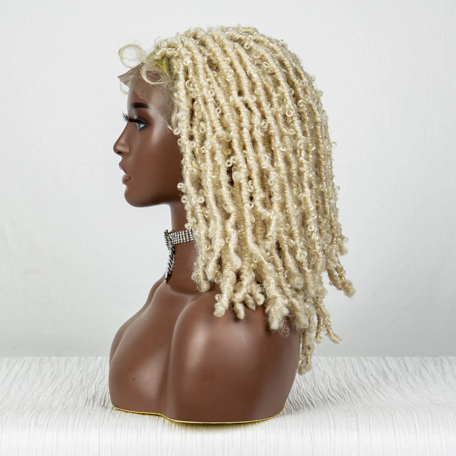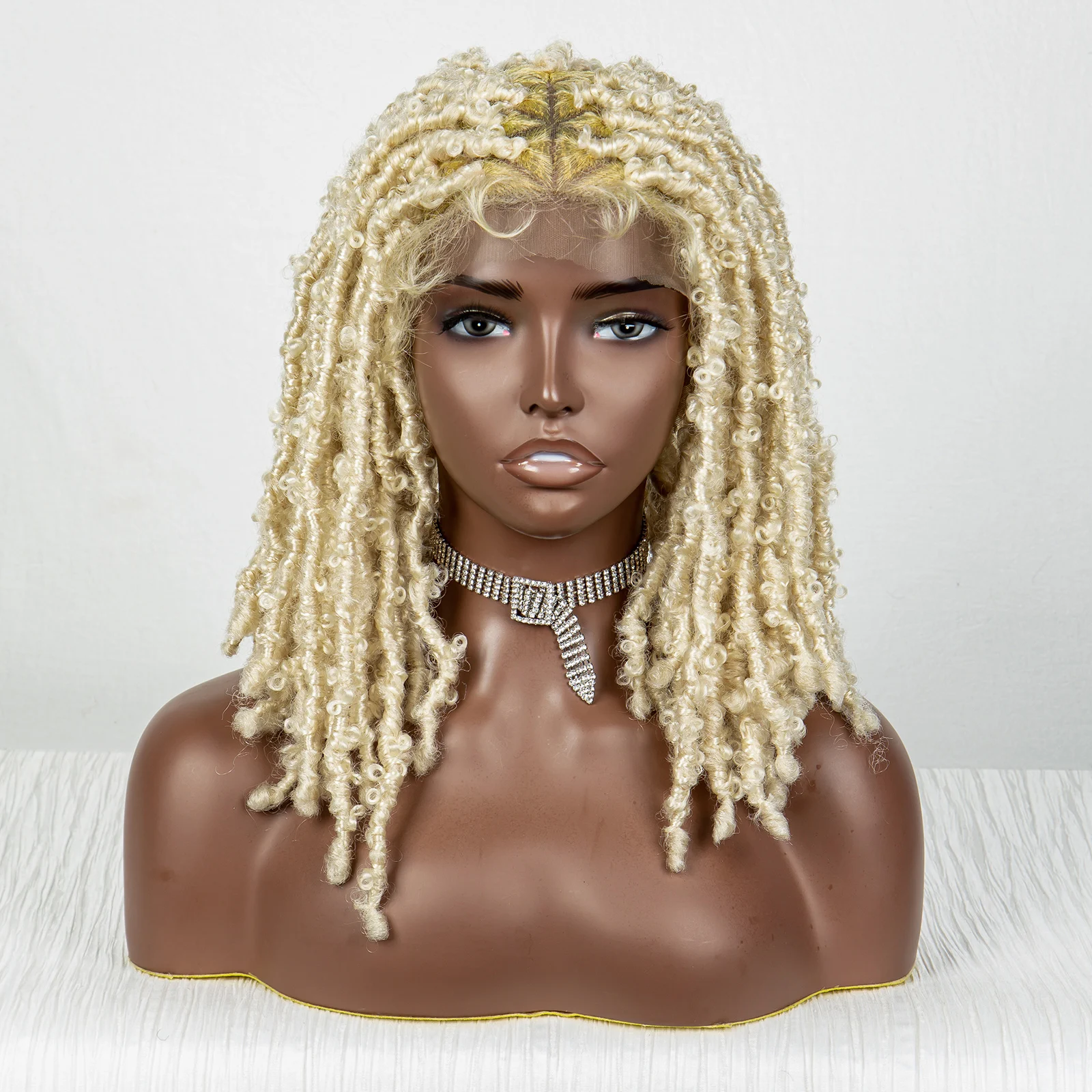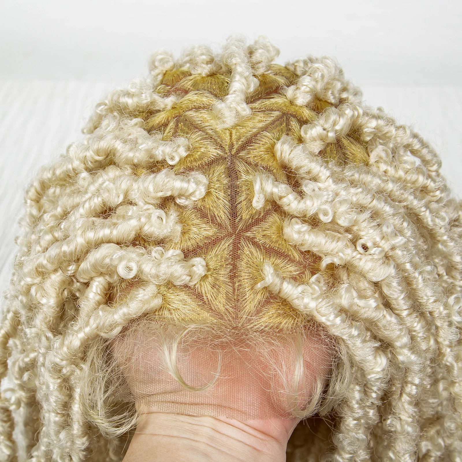 613 Blonde Synthetic Full Lace Braided Wigs Knotless Crochet Hair Wig for Black Women Colorful Butterfly Locs Box Braiding Wigs