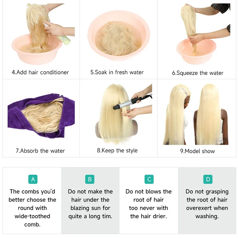 3.Silk,Smooth,Soft Touch and Tangle Free,Shedding Free,Can be Washed,Dyed,Permed,Curled,Straightened,Durable,Resuable,After Wash, It Return Same Texture.