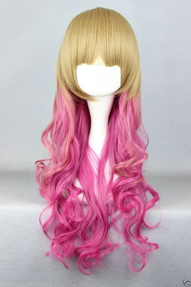 65cm Fashion Long Blonde & Pink Wavy Girl Lolita Cosplay Party Hair Wig