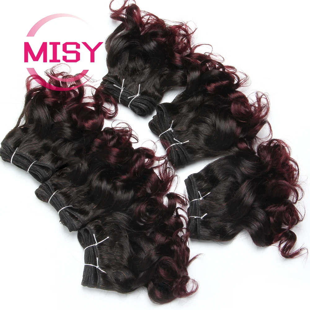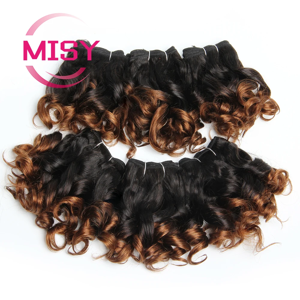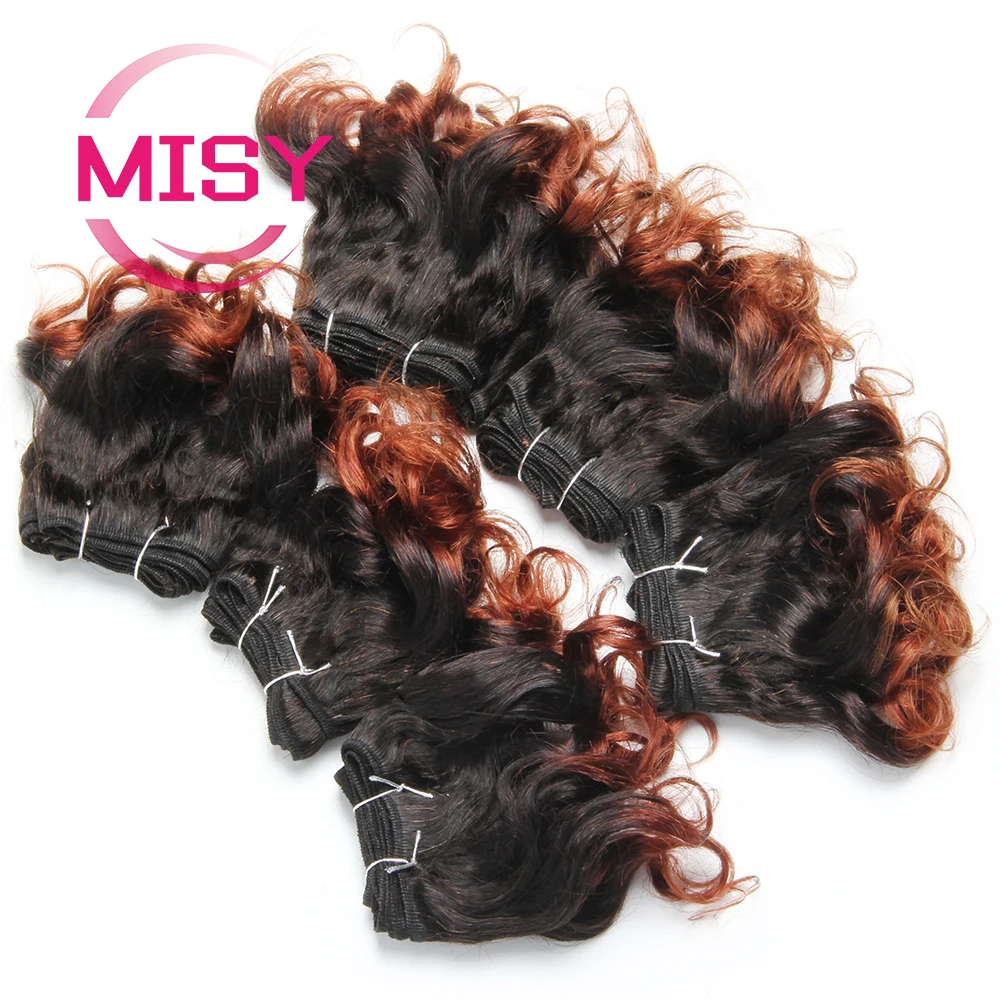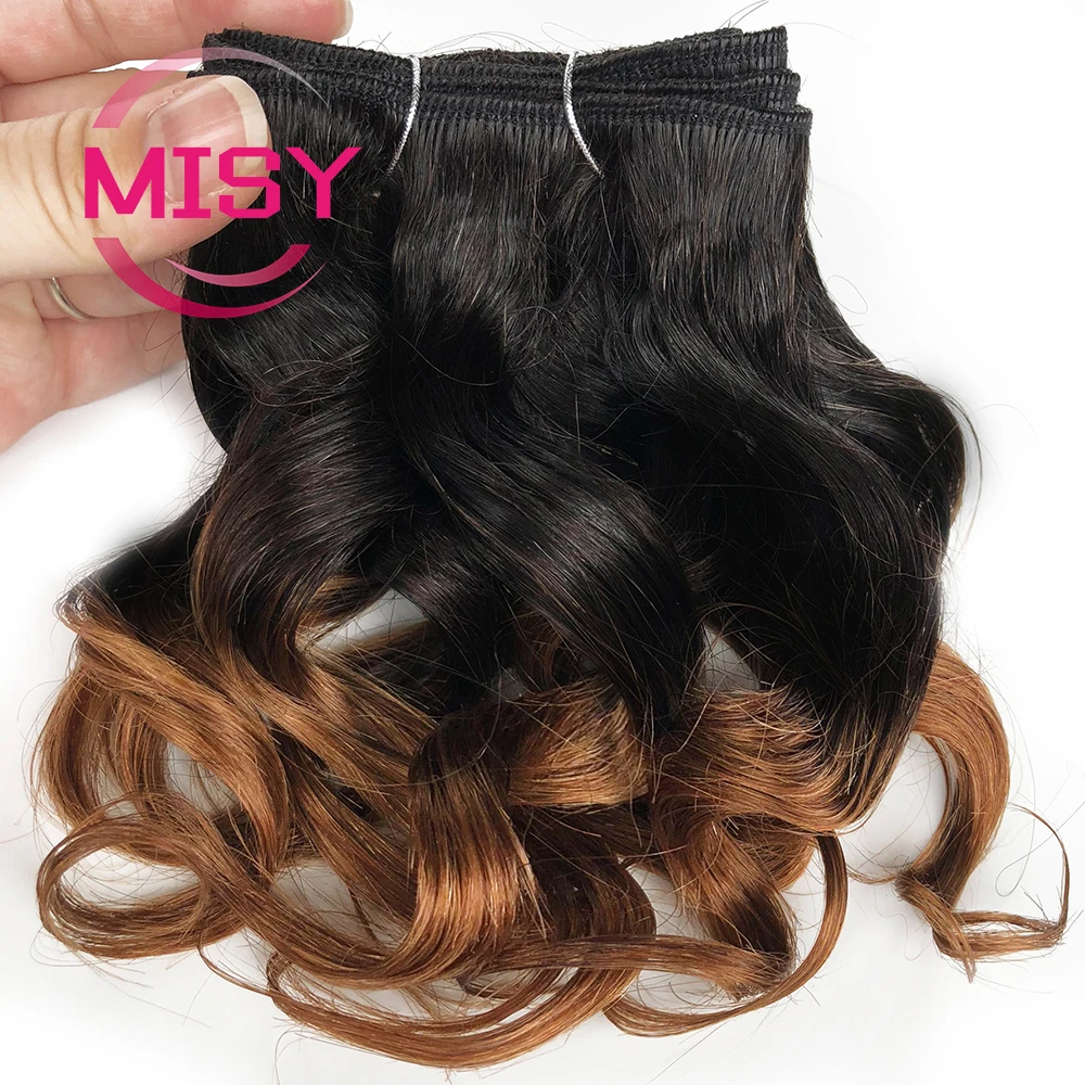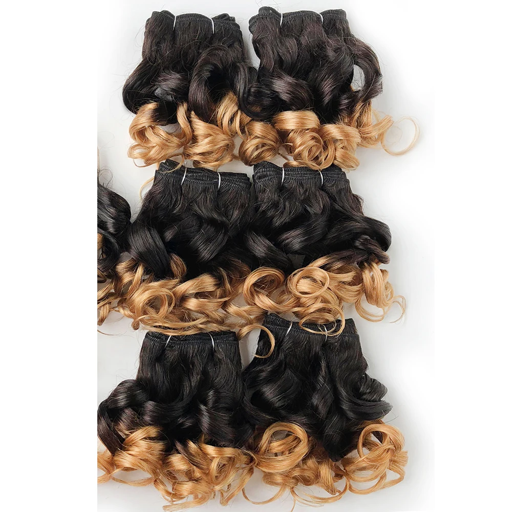6Pcs/Lot Curly Human Hair Bundles Ombre Color Brazilian Hair Weave Bundles Short Remy Human Hair Curly Bundles For Women
