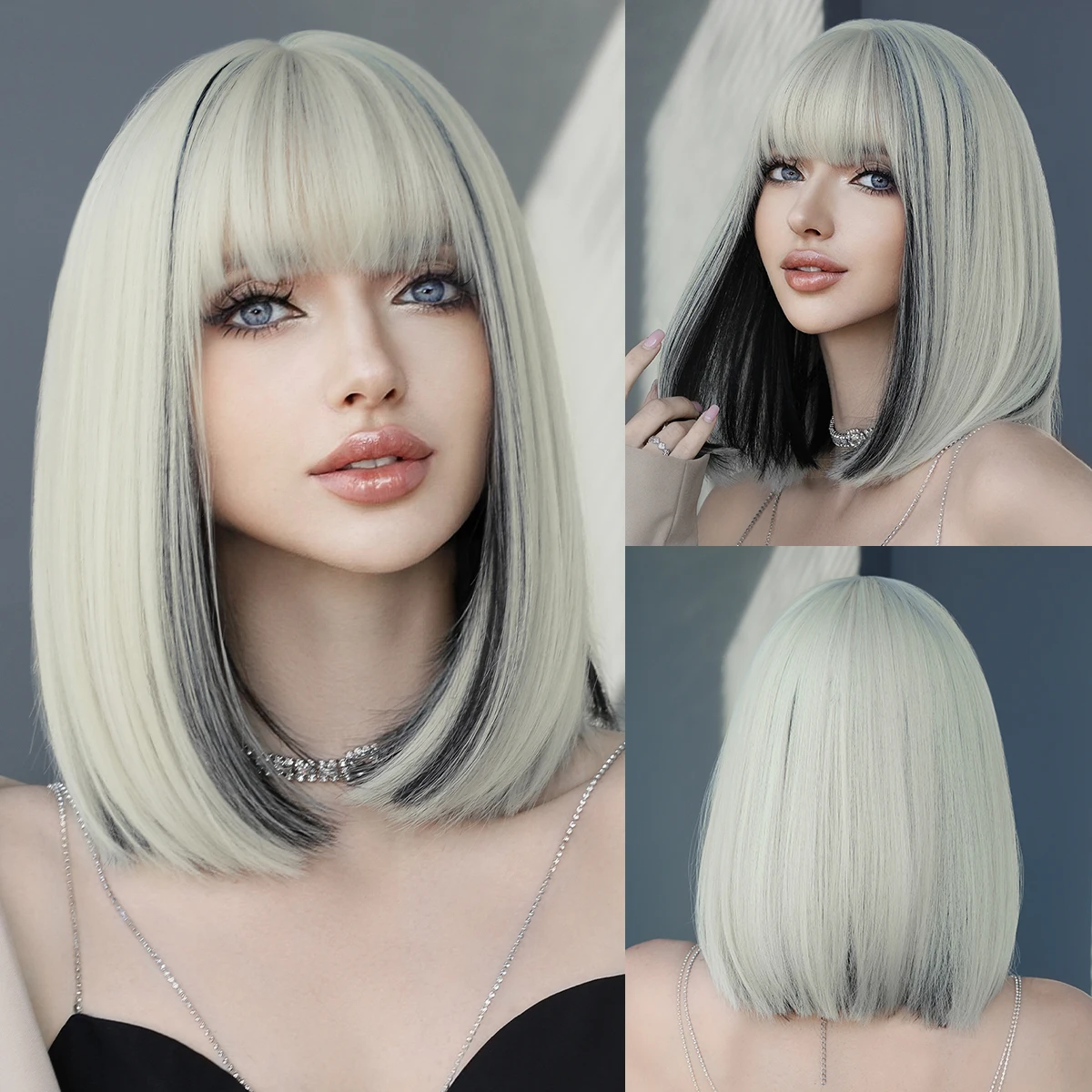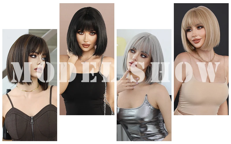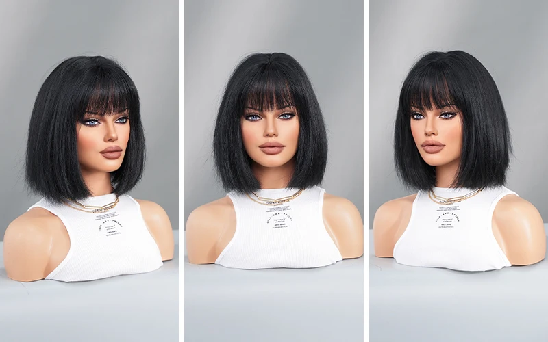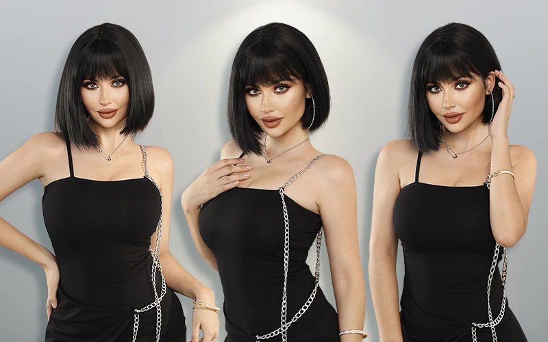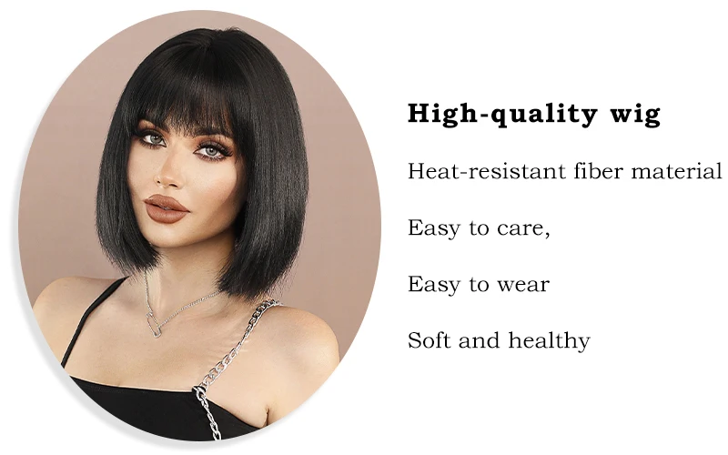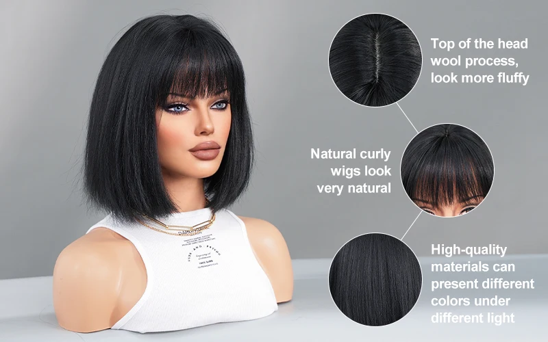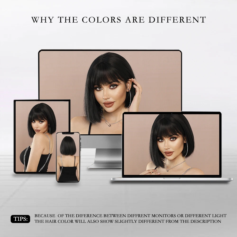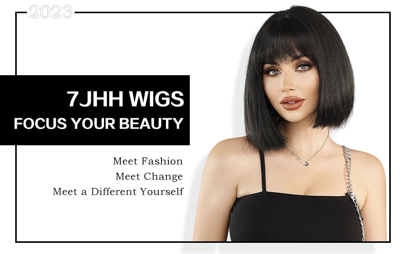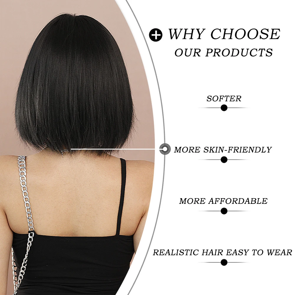 Name: 7JHH WIGS Short Straight Black Bob Wig for Women Daily Party High Density Synthetic Loose Hair Wigs with Bangs Natural Looking