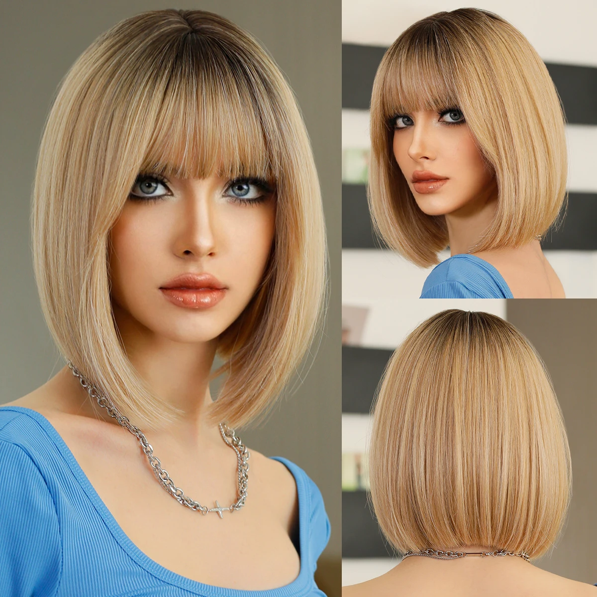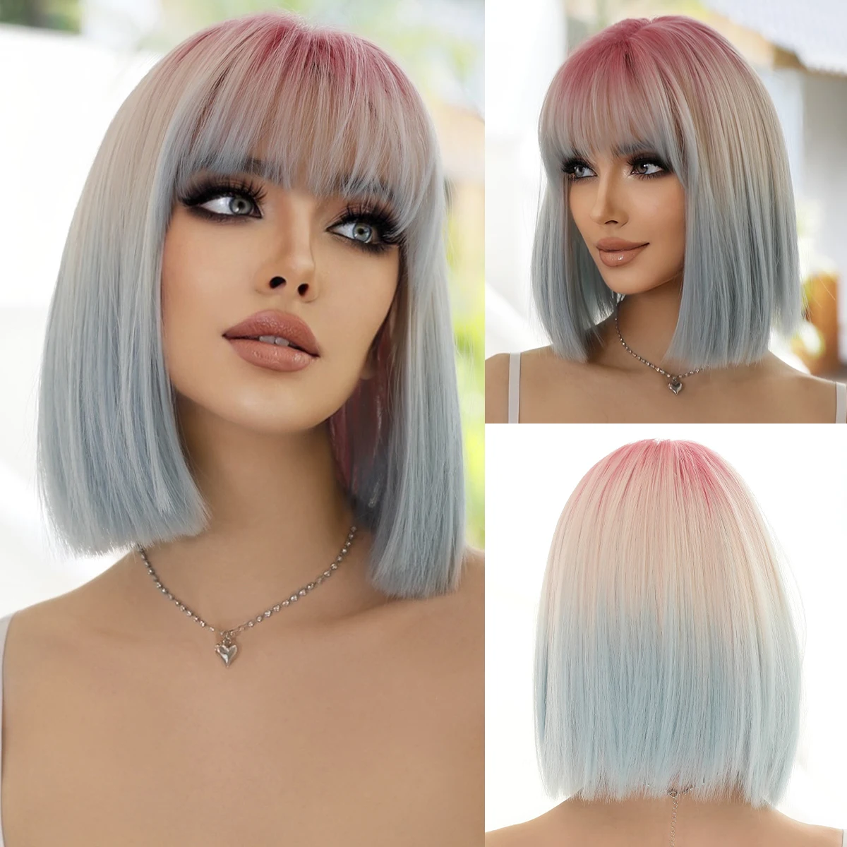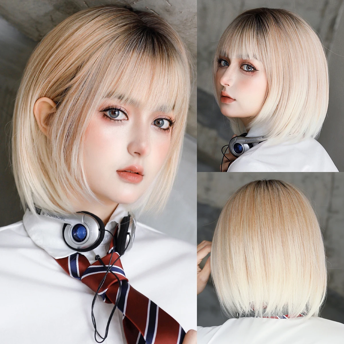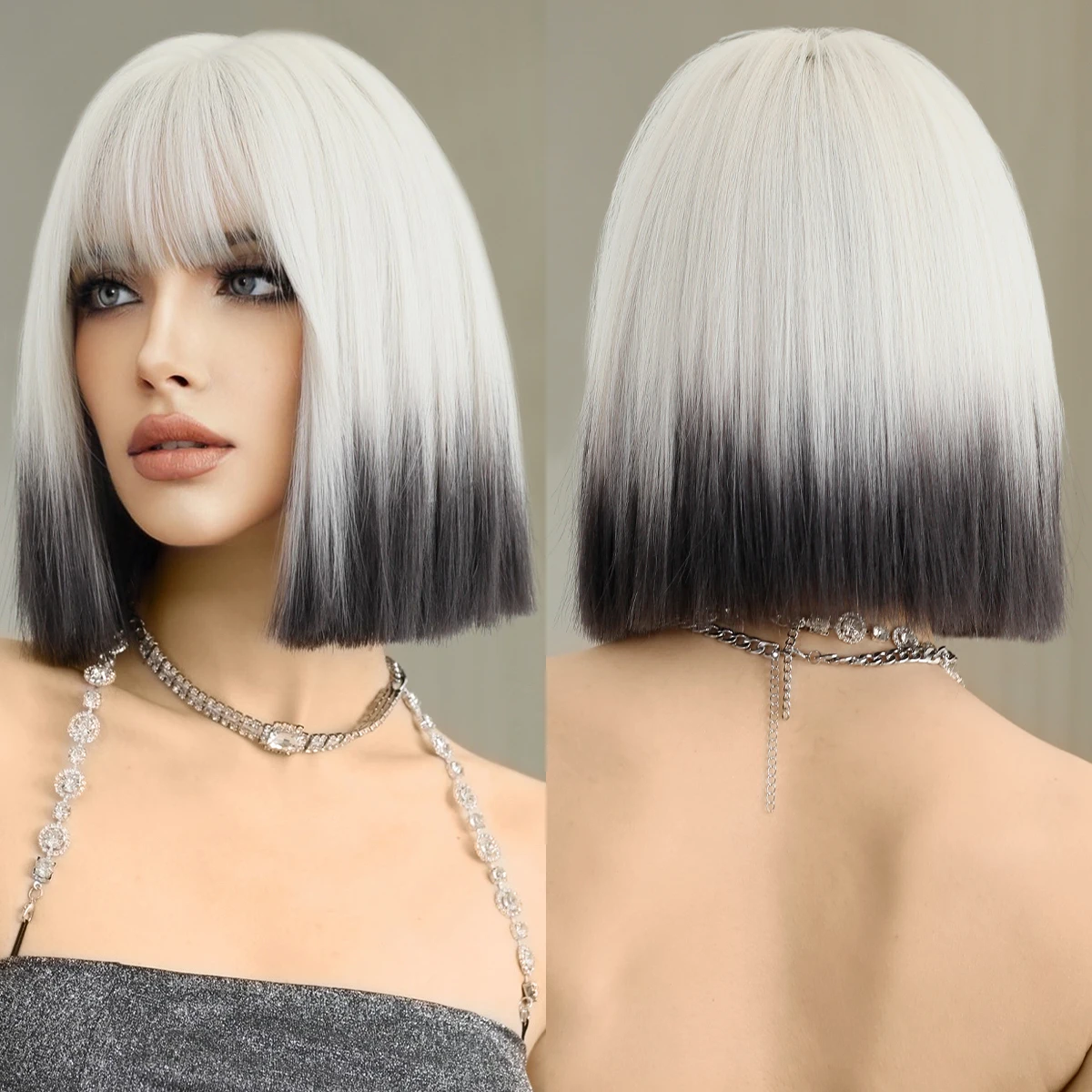 Name: 7JHH WIGS Short Straight Black Bob Wig for Women Daily Party High Density Synthetic Loose Hair Wigs with Bangs Natural Looking