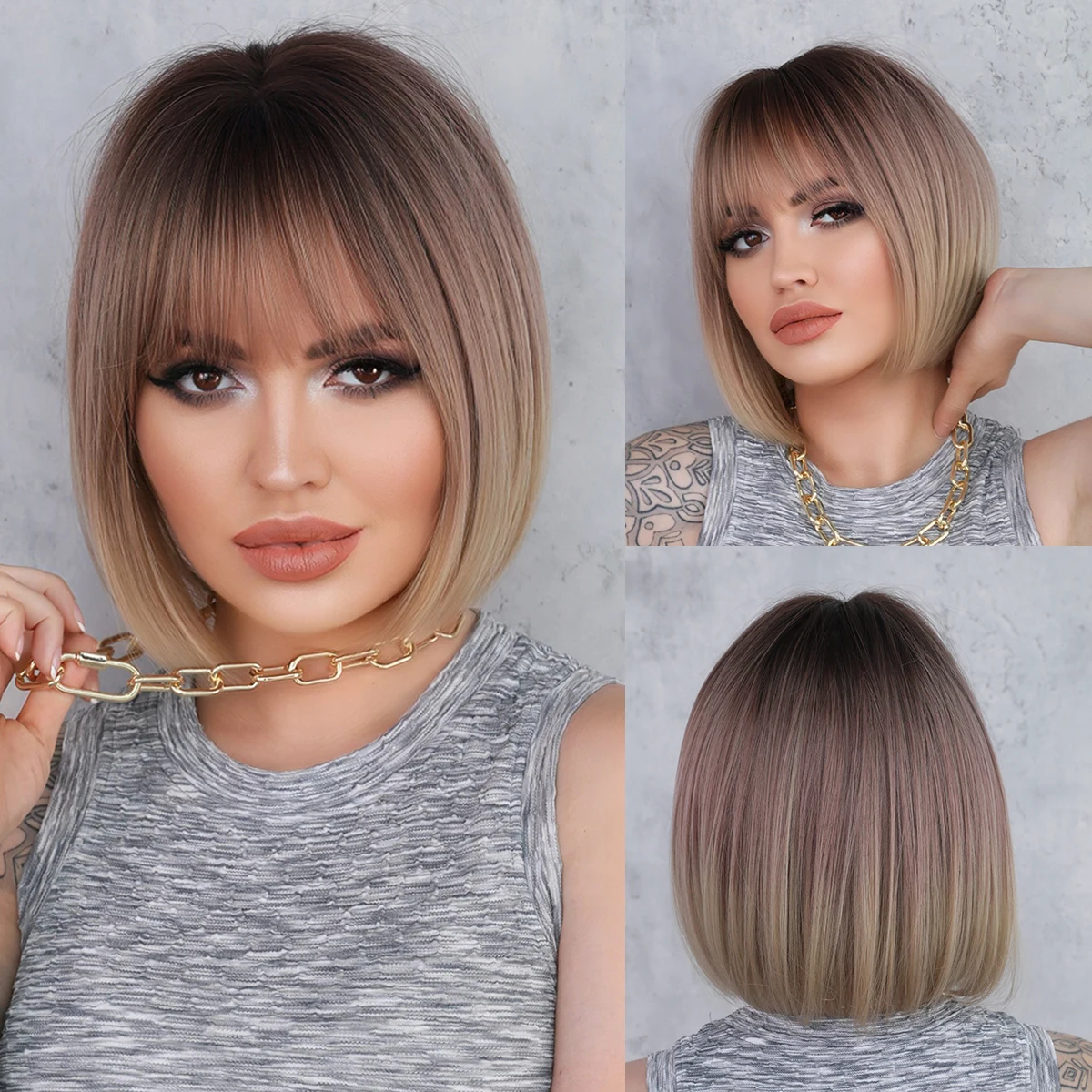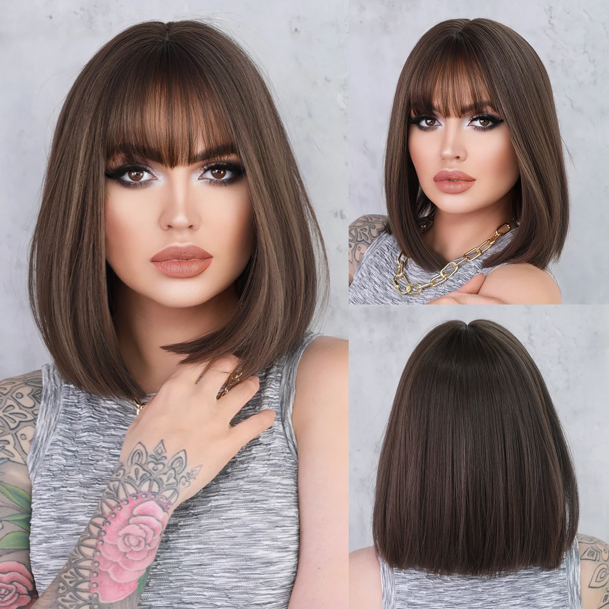 7JHH WIGS Short Straight Black Bob Wig for Women Daily Party High Density Synthetic Loose Hair Wigs with Bangs Natural Looking