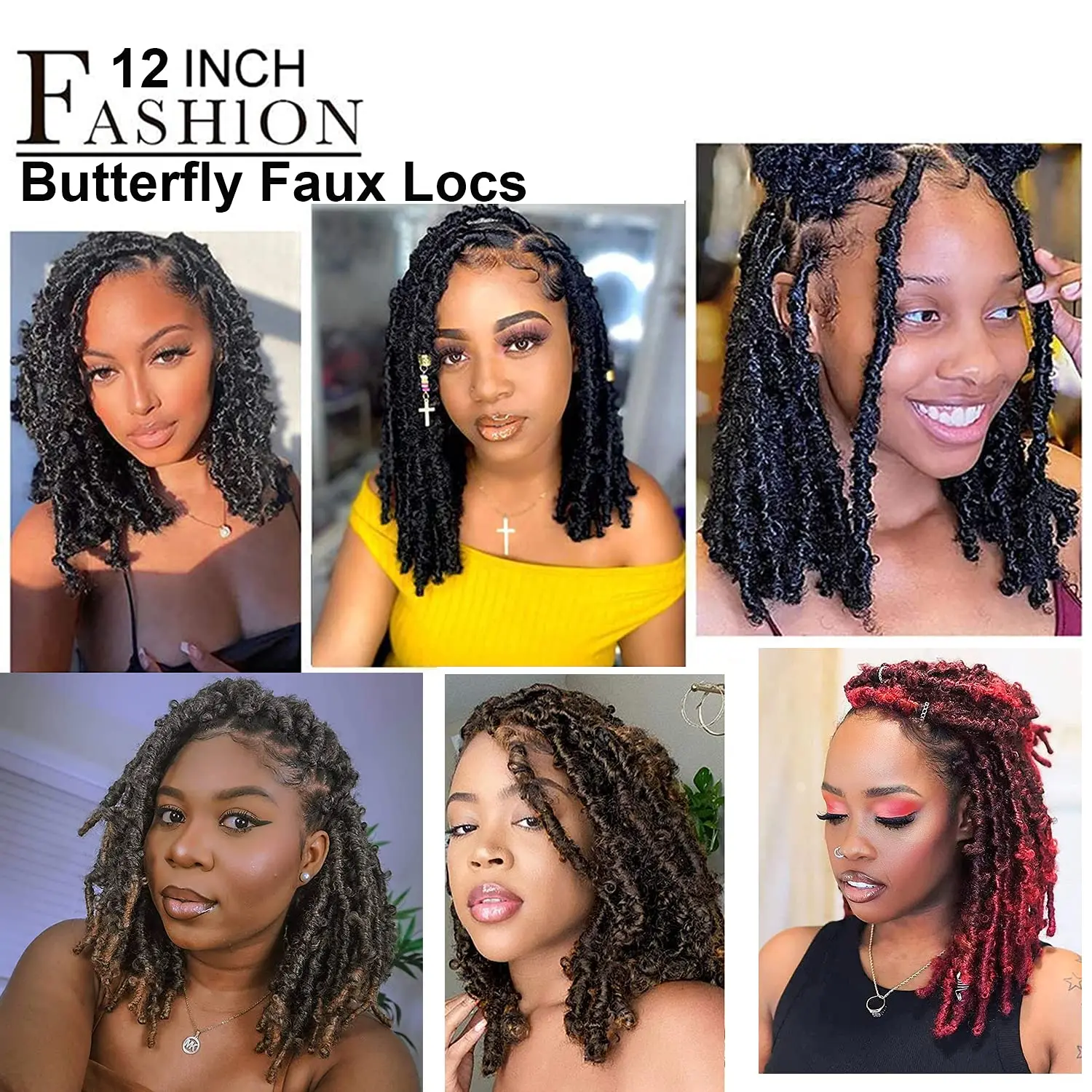 8/10/14 inches Synthetic Butterfly Locs Crochet Hair 12 Strands Soft Locs Crochet Hair For Black Women Crochet Braids Hair