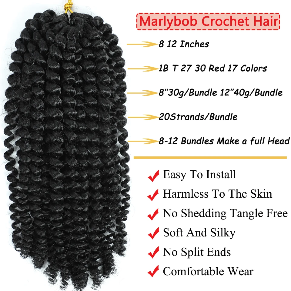 8 12 Inch Short Passion Twist Hair Marlybob Crochet Hair Kinky Curly Marlybob Crochet Braids Synthetic Crochet Twist Braid Hair