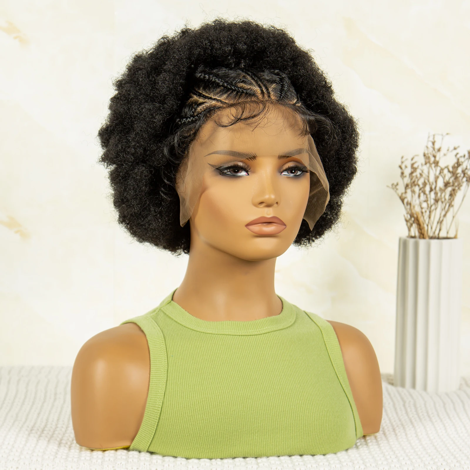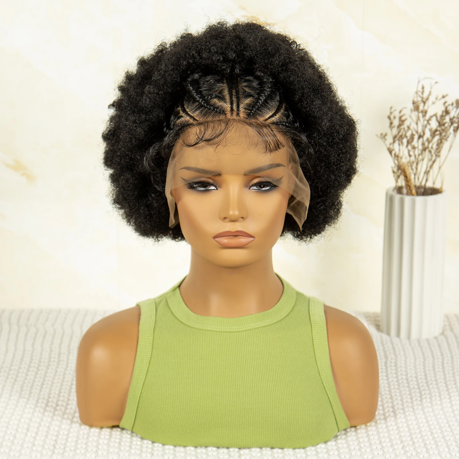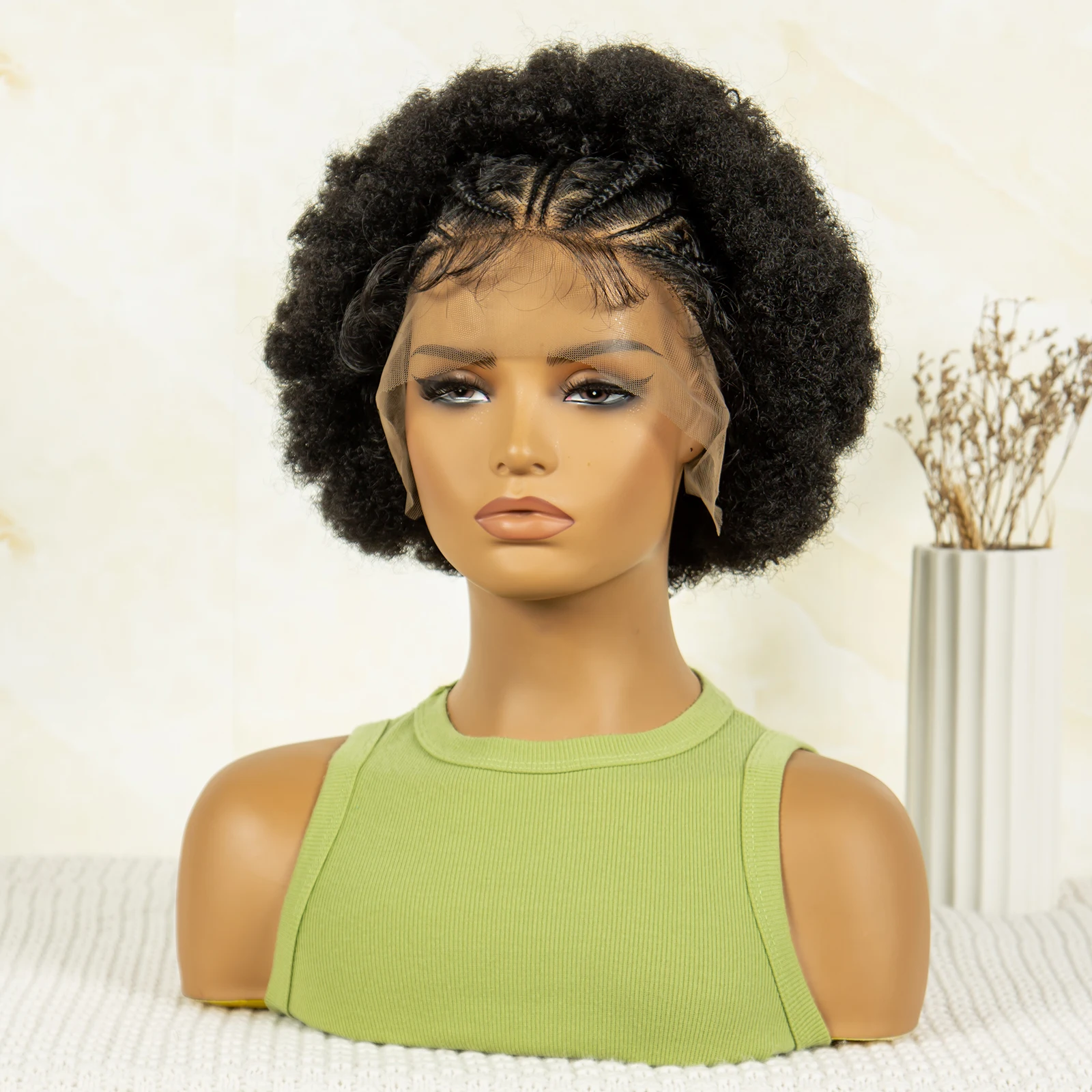 8 Inches Synthetic Short Cornrow Braided Wigs Pixie Cut Kinky Curly Braided Wigs for Women Afro Braiding Wigs with Baby Hair