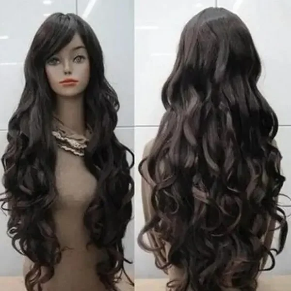 80cm Fashion Women Long Dark Brown Curly Cosplay Costume Hair Wigs Heat Resistant