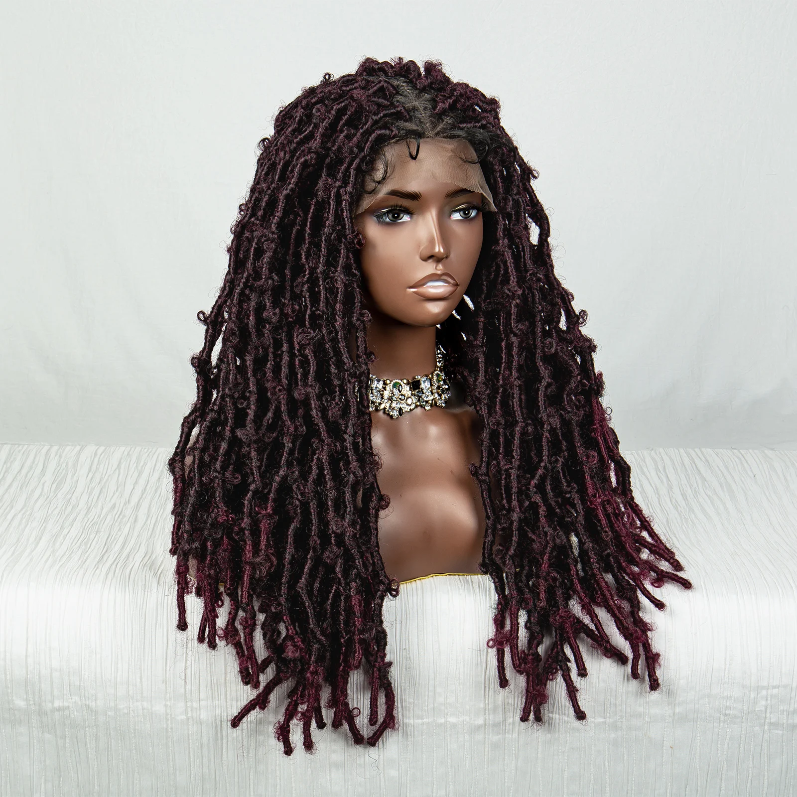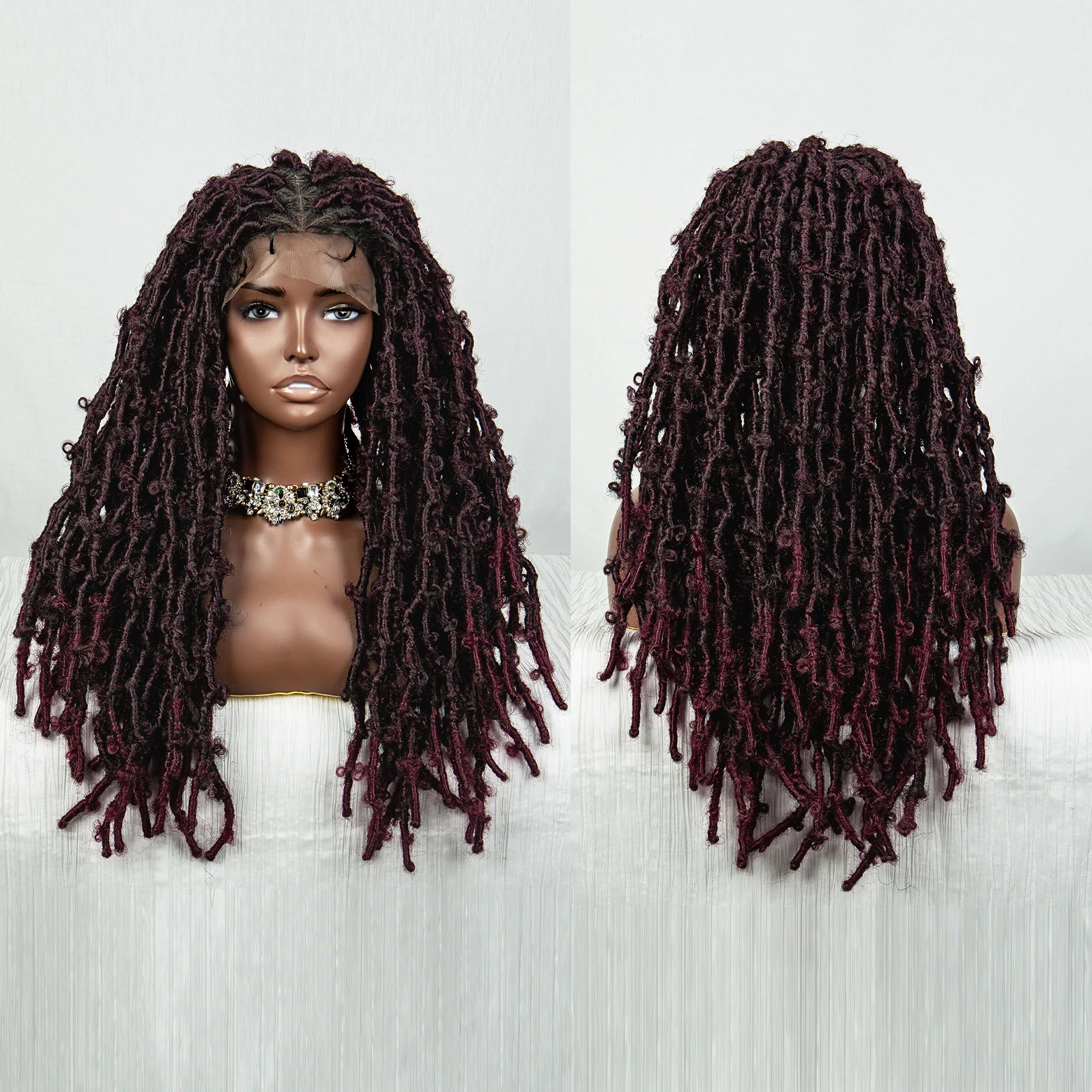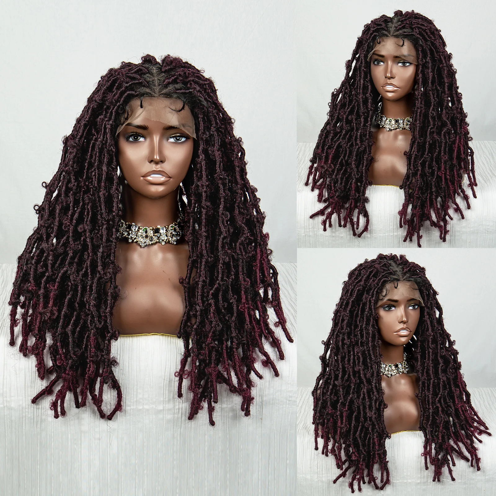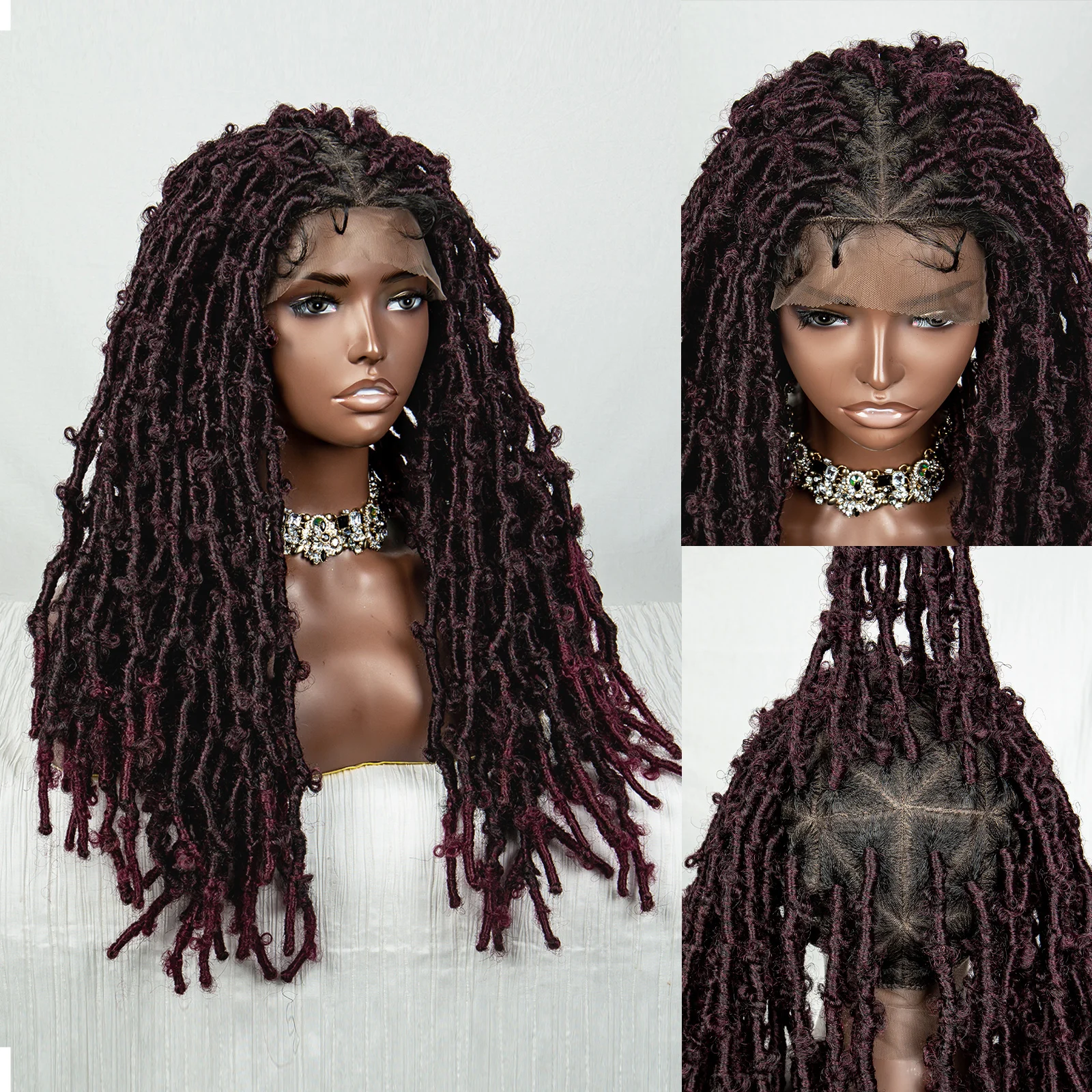 99J Butterfly Locs Synthetic Full Lace Braided Wig Crochet Faux Locs Braids Wig for Black Women 20 Inch Dreadlocks Braiding Hair