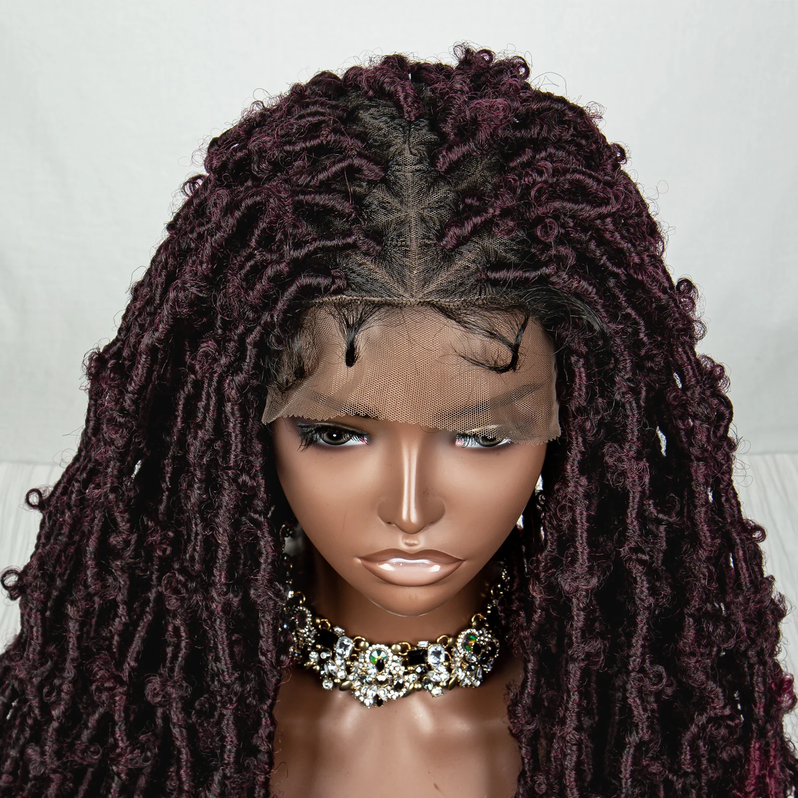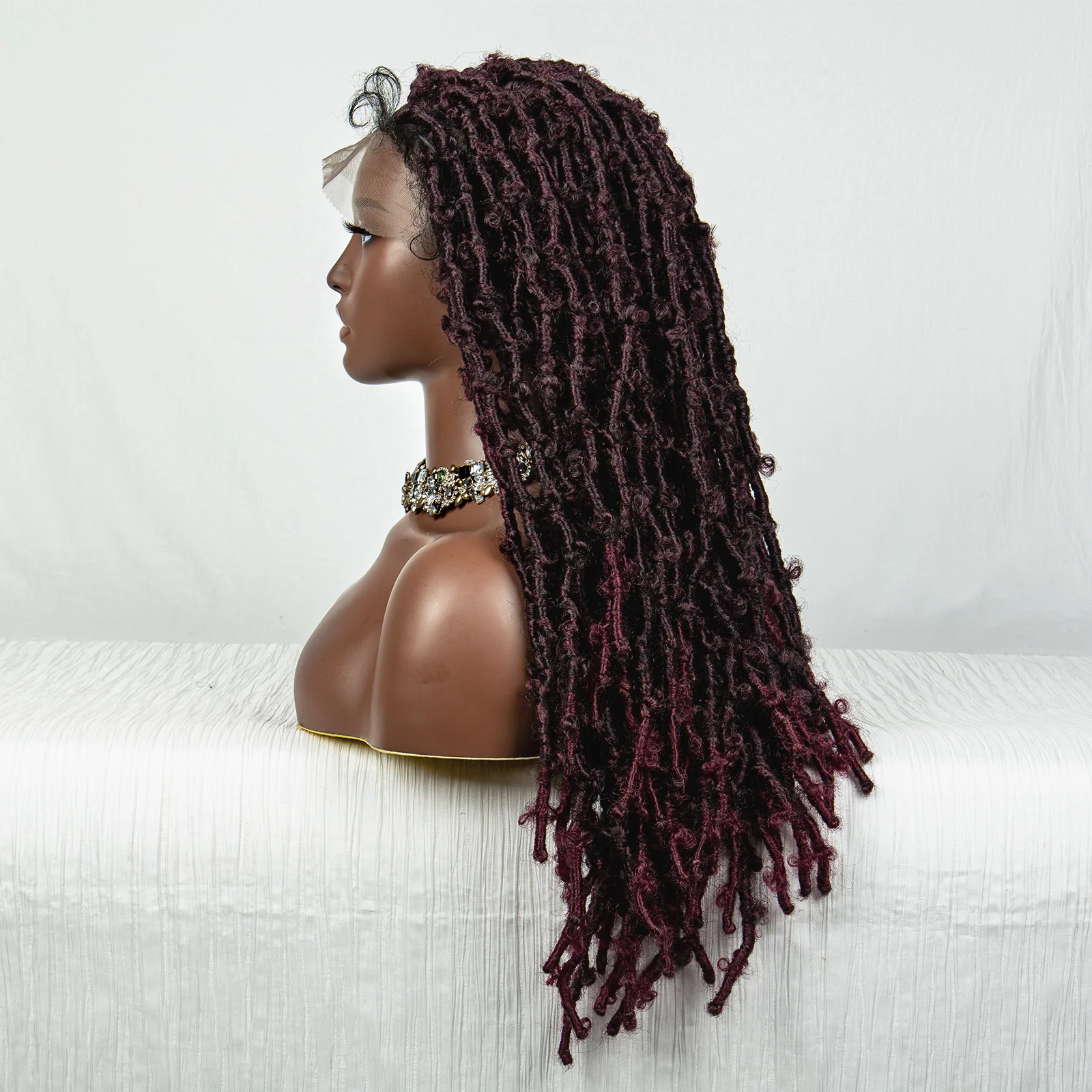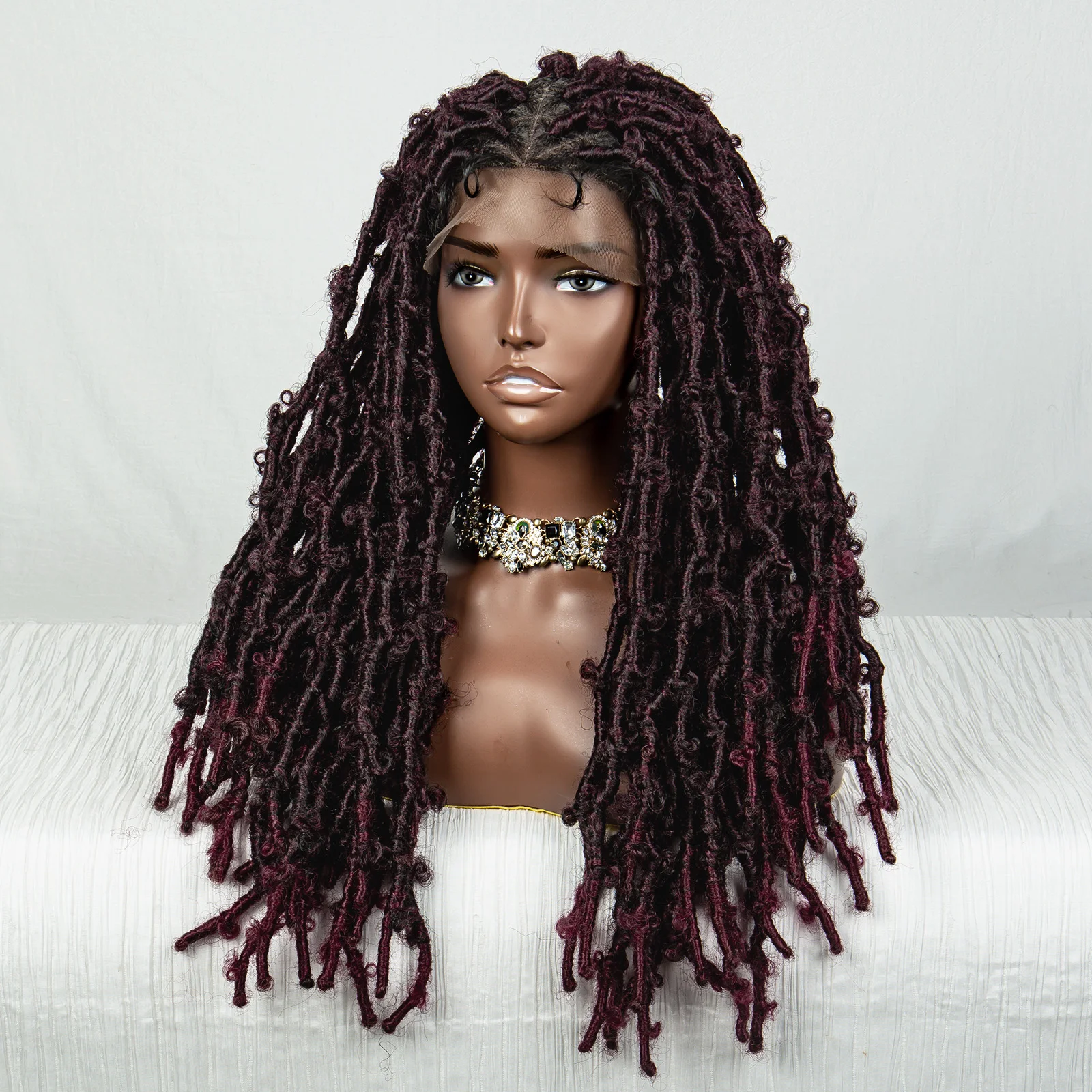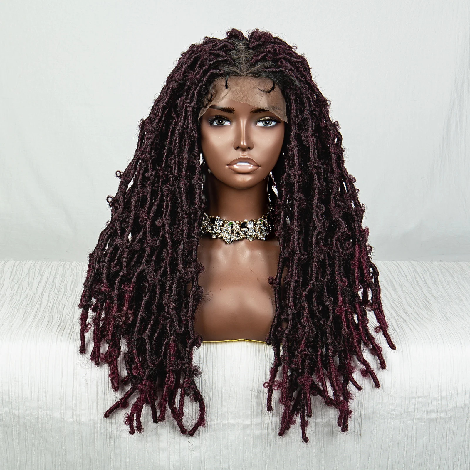 99J Butterfly Locs Synthetic Full Lace Braided Wig Crochet Faux Locs Braids Wig for Black Women 20 Inch Dreadlocks Braiding Hair