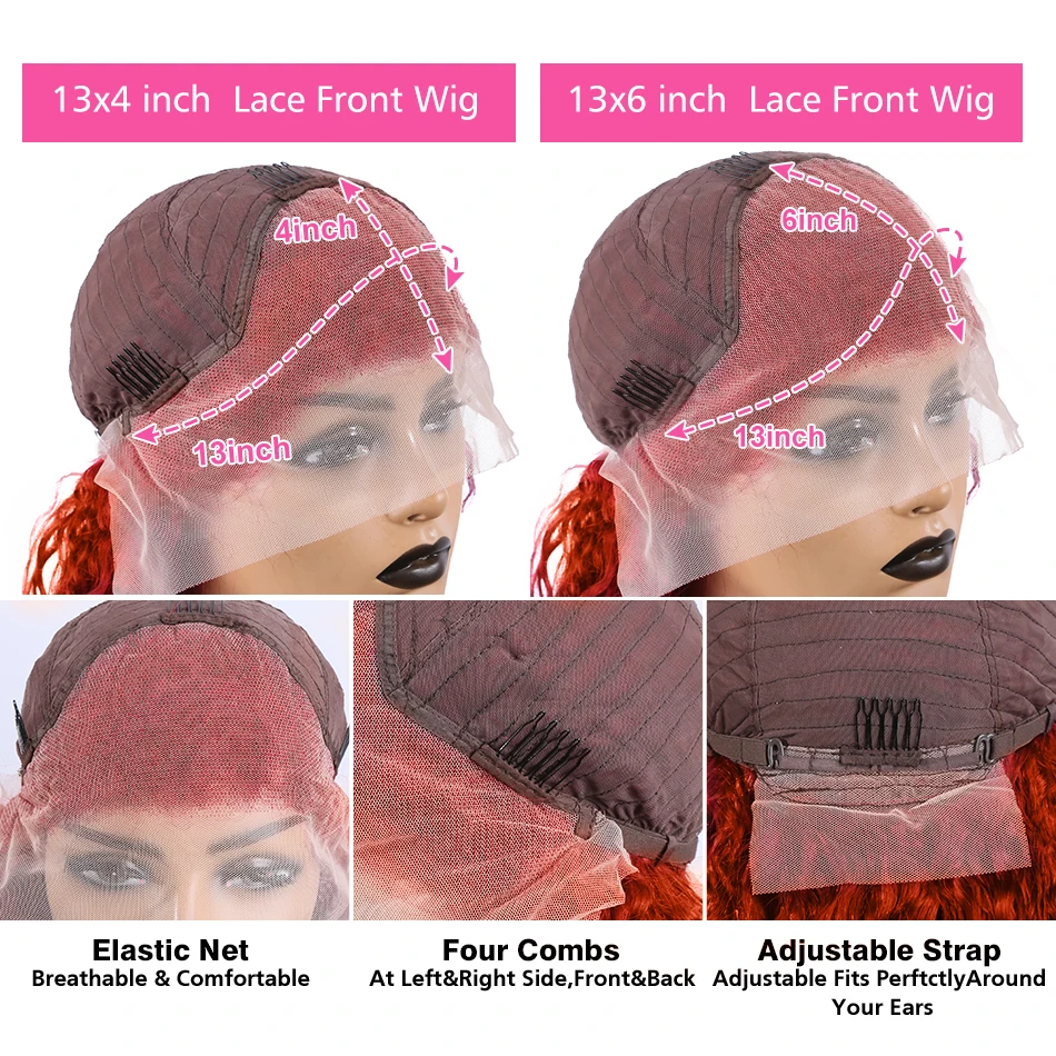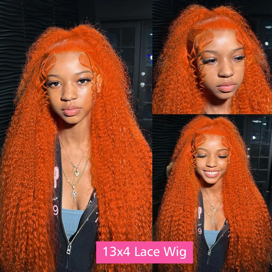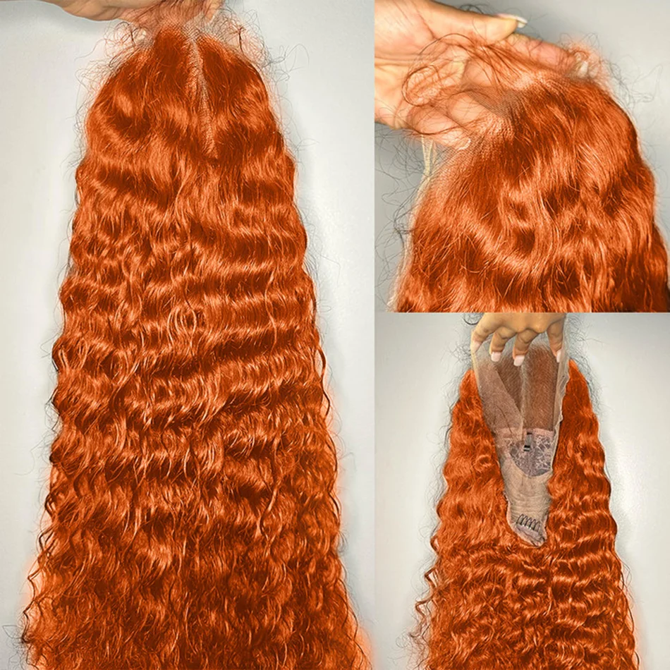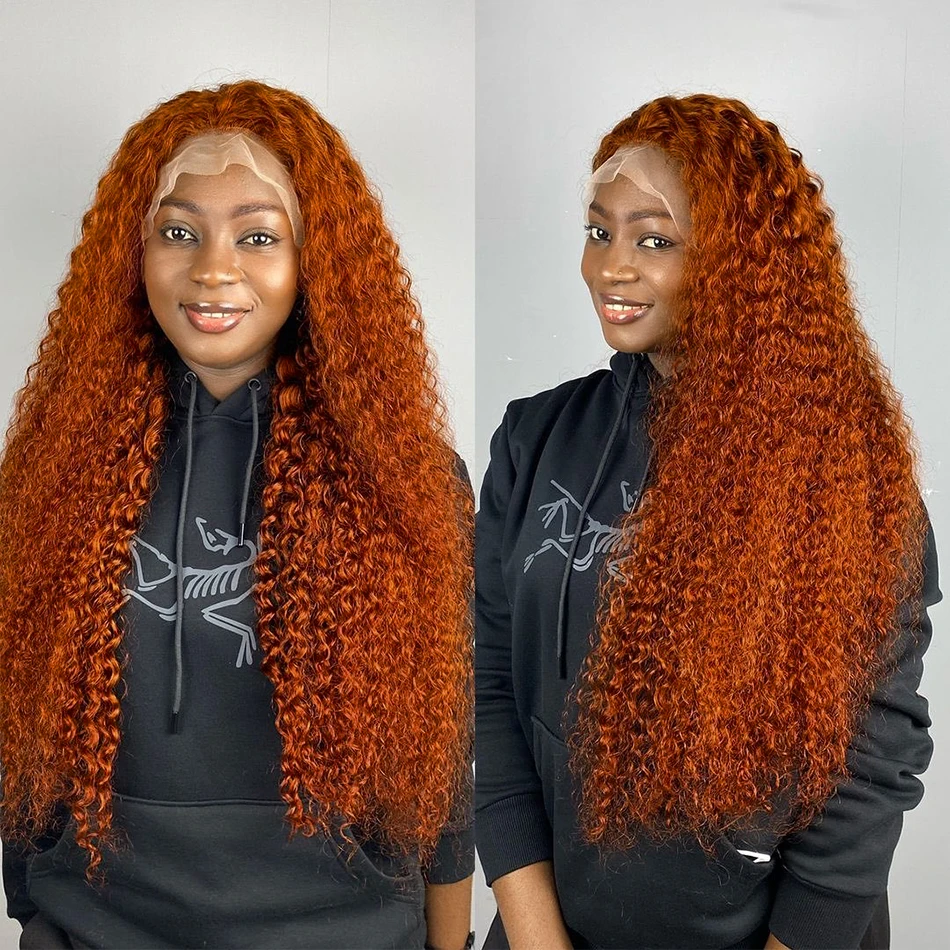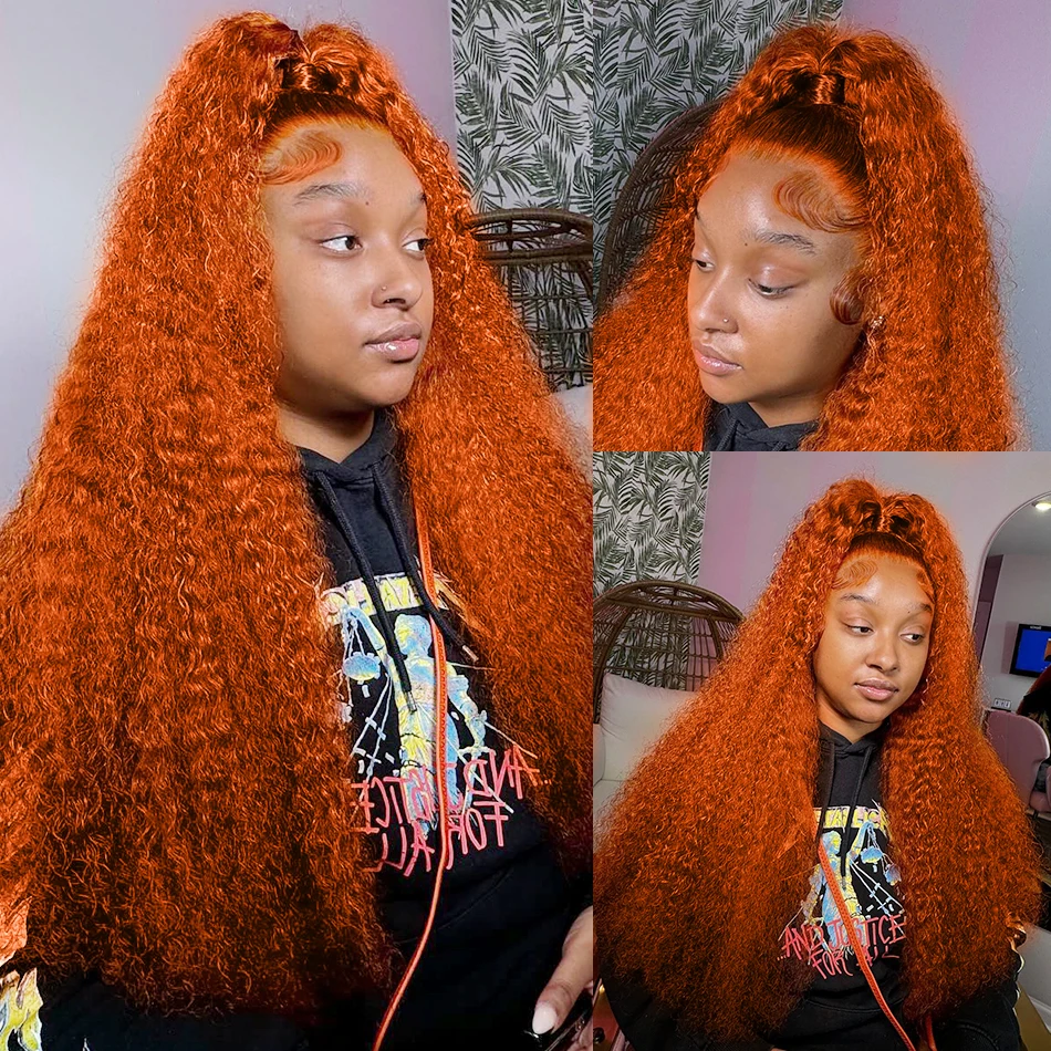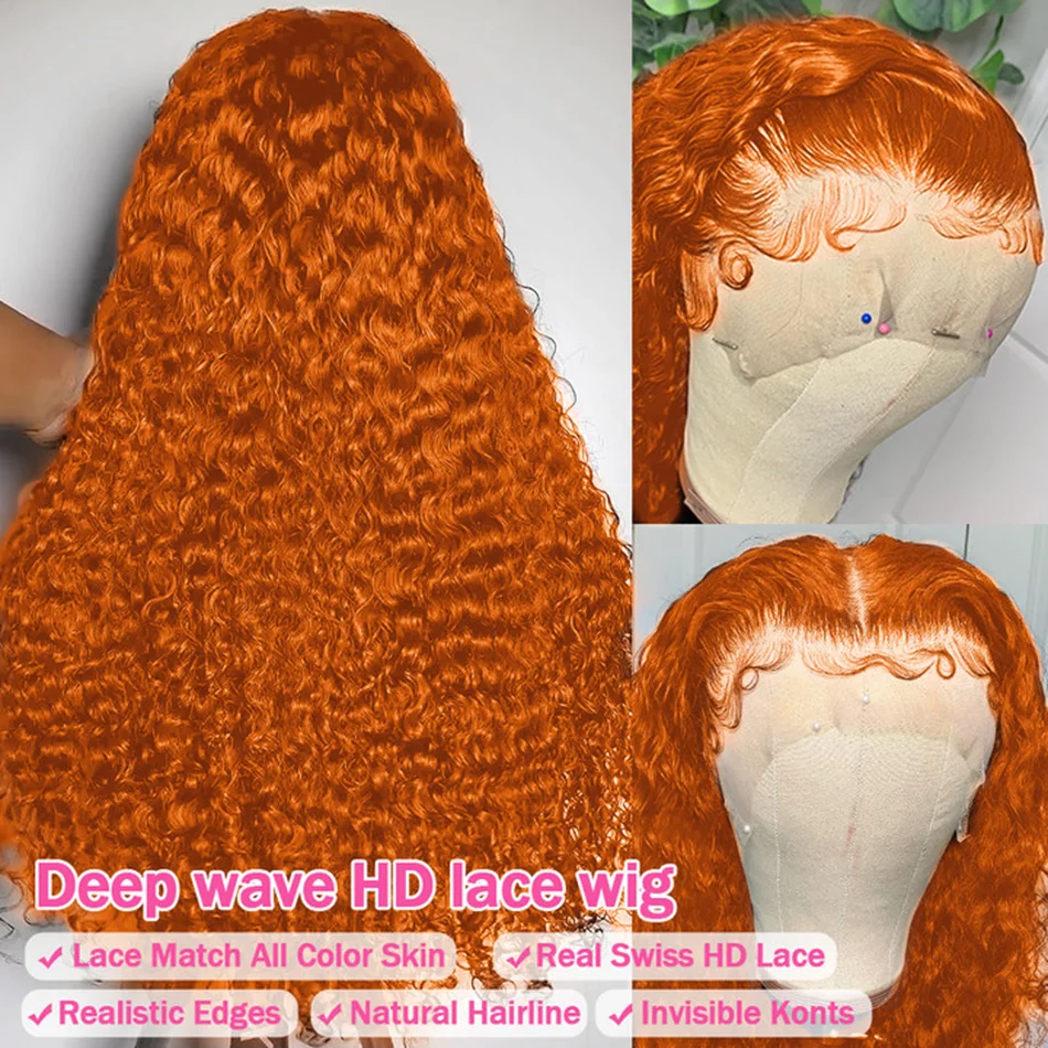 Addictive 30 40 Inch Deep Wave Orange Ginger 13x6 Curly Lace Front Human Hair Wigs 250 Density 13x4 Lace Frontal Wig For Women