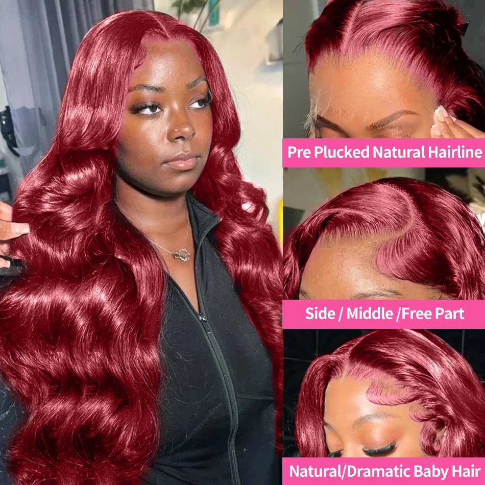 Addictive Burgundy 99J 13x6 Body Wave Lace Front Human Hair Wig HD Transparent Lace Frontal Wigs Brazilian Remy Wigs for Women