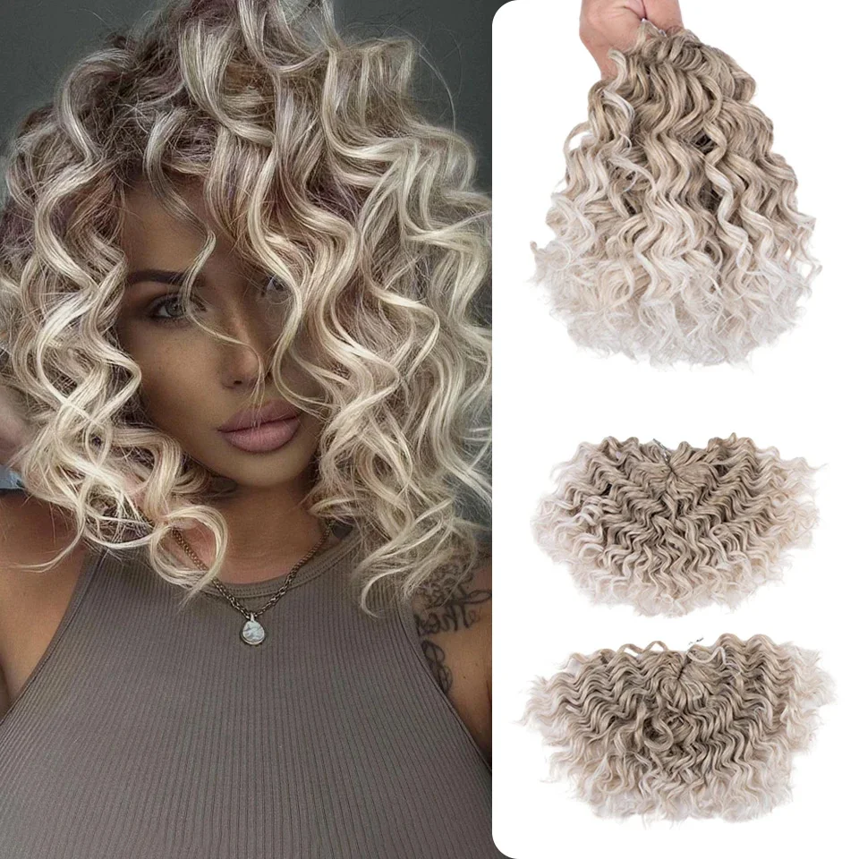 Afro Curly Hair Extensions 10 Inch Synthetic Braids Twist Crochet Hair Ombre Brown Blonde Pink Deep Wavy Braiding Cosplay Hair