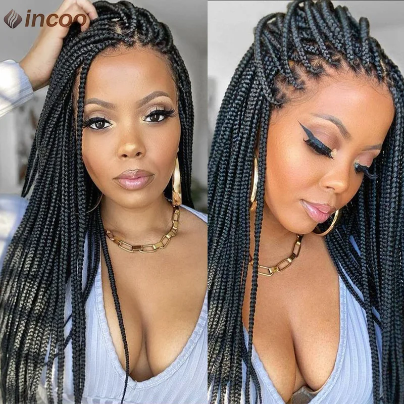 Afro Full Lace Front Braided Wigs Synthetic Cornrow Braids Wig For Black Women 36 Inches Glueless Box Braided Wig With Baby Hair