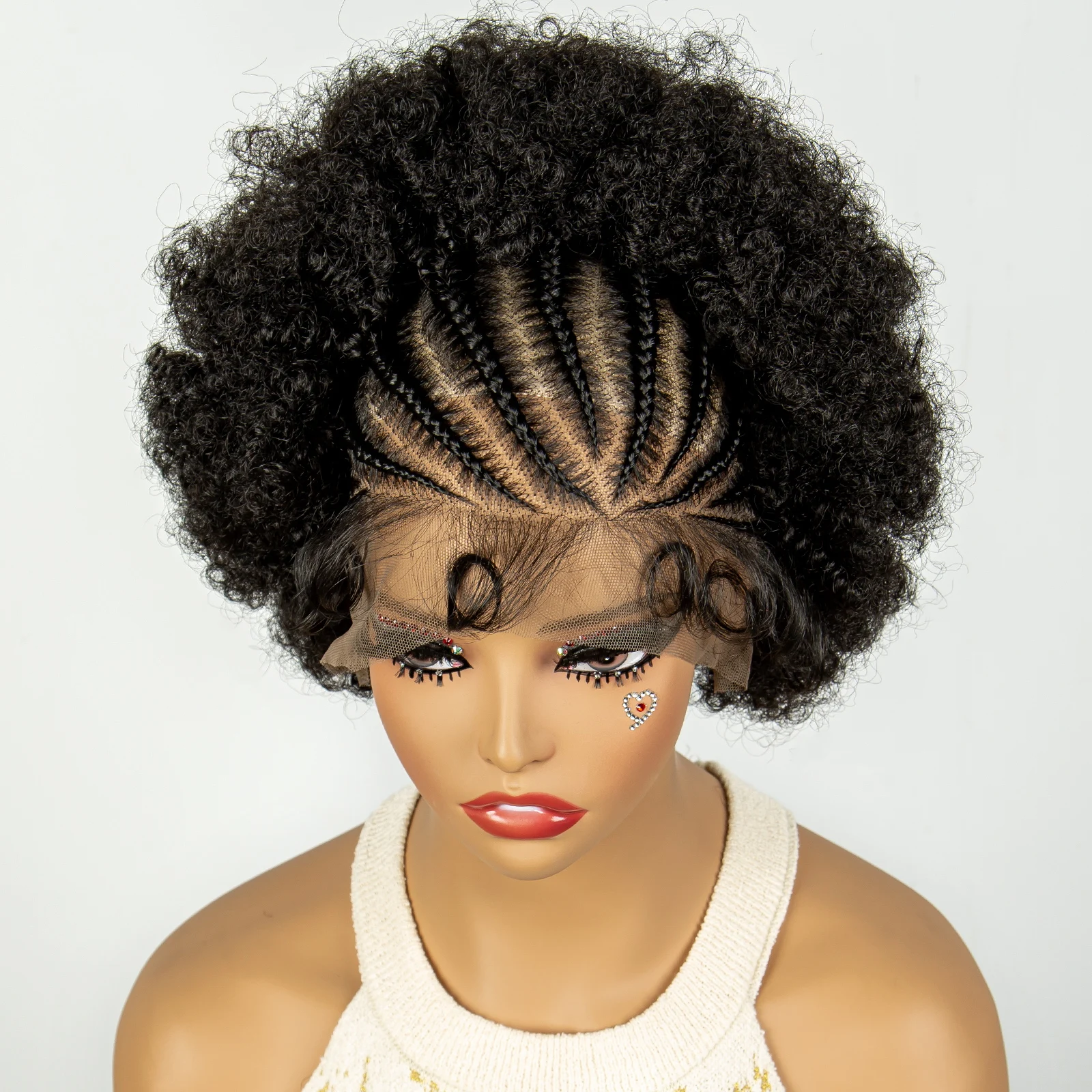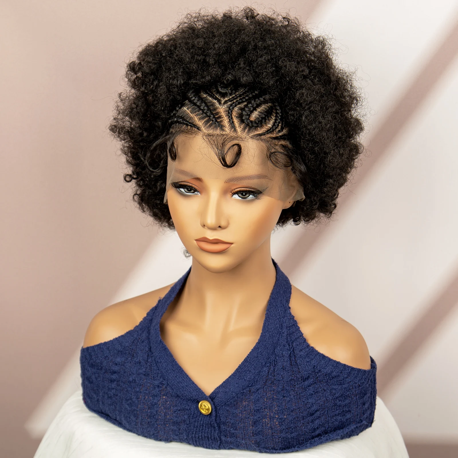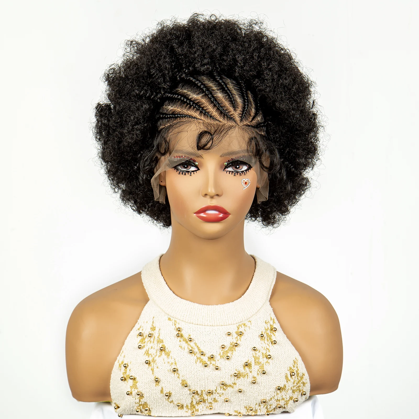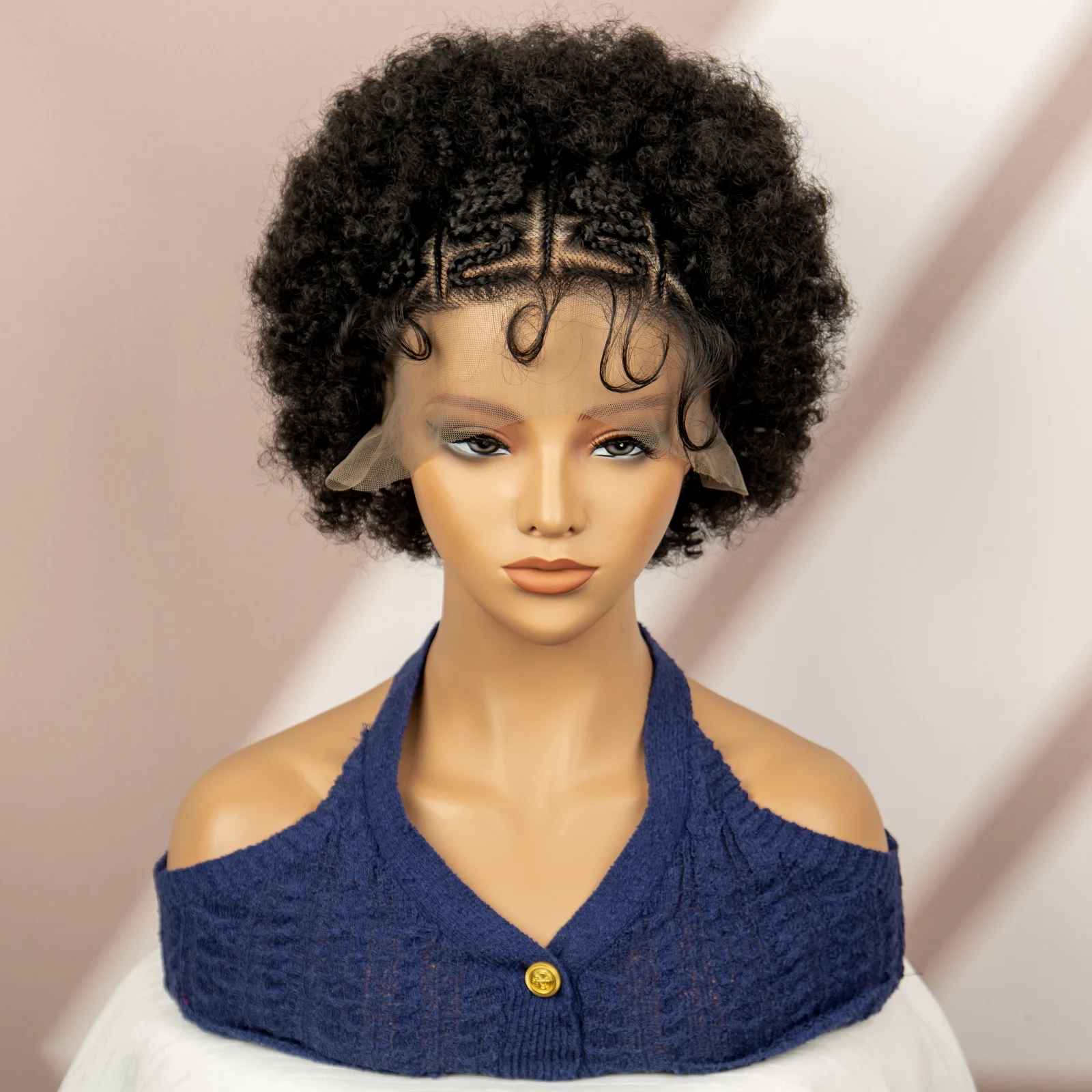 Afro Kinky Curly Braided Wigs for Black Women 13x6 Lace Frontal Synthetic Cornrow Braiding Wig with Baby Hair for African Women
