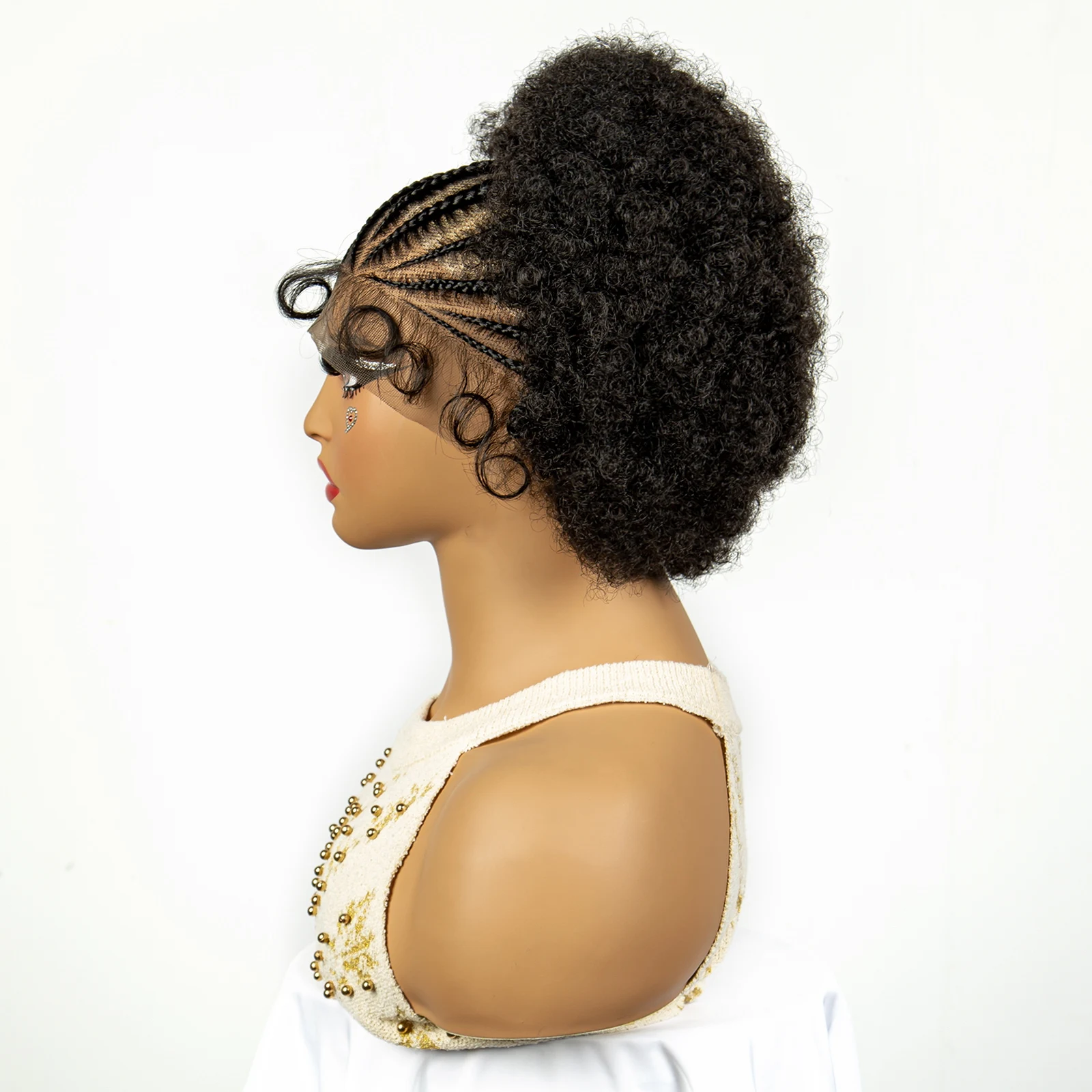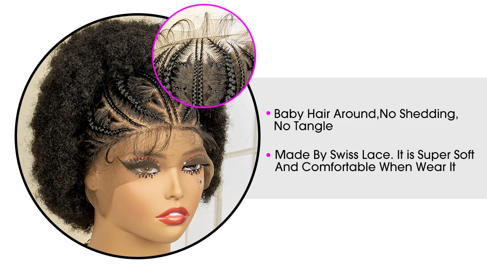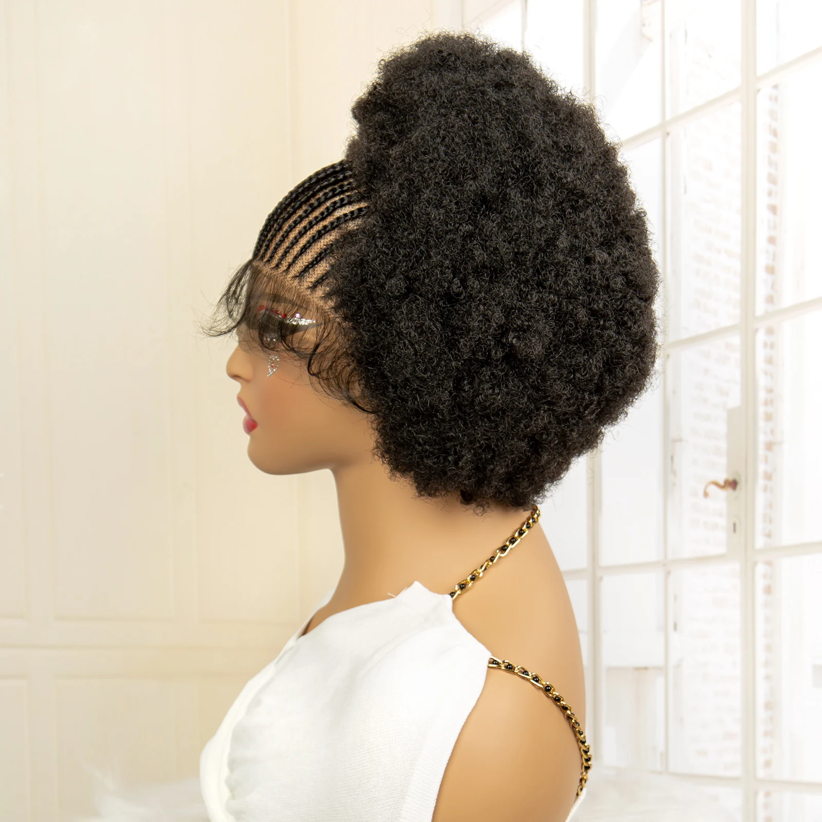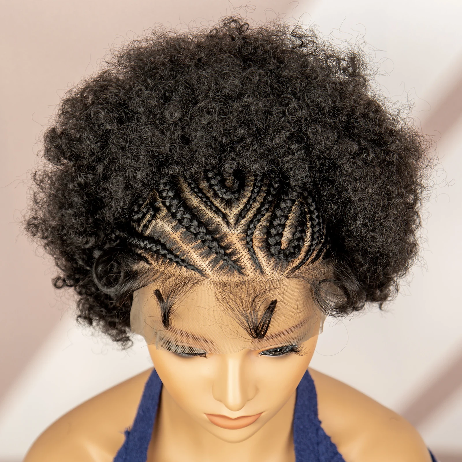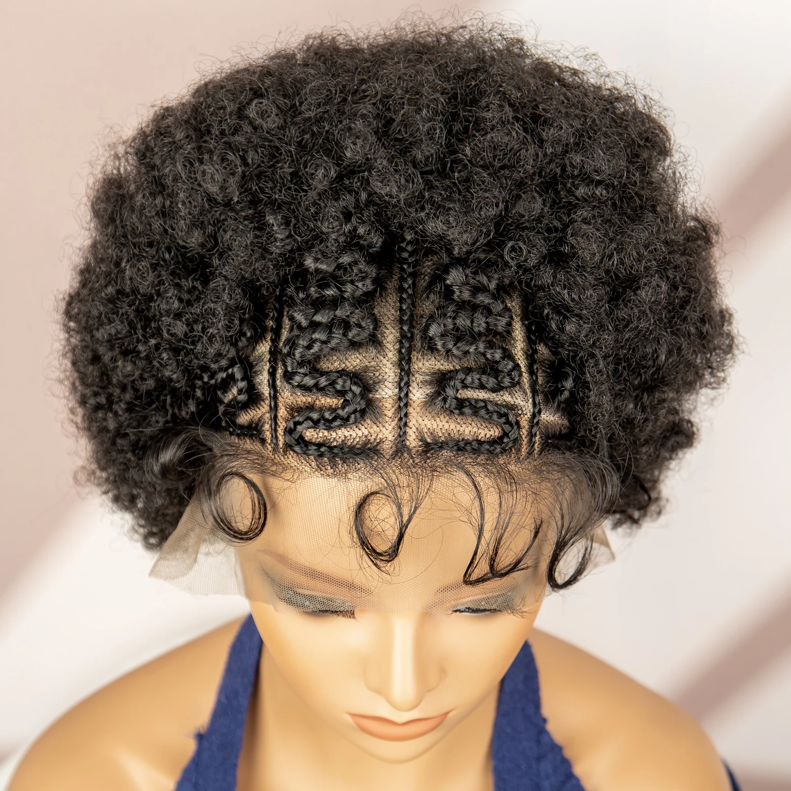 Afro Kinky Curly Braided Wigs for Black Women 13x6 Lace Frontal Synthetic Cornrow Braiding Wig with Baby Hair for African Women