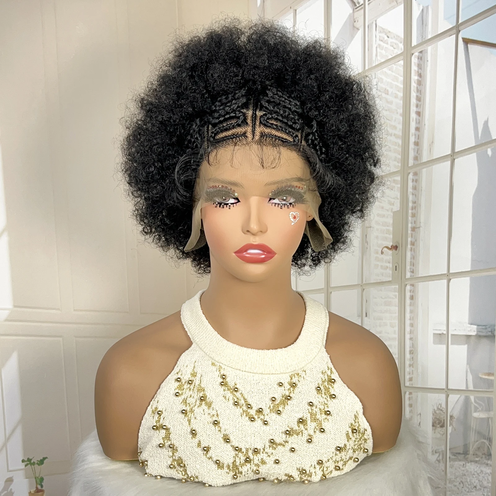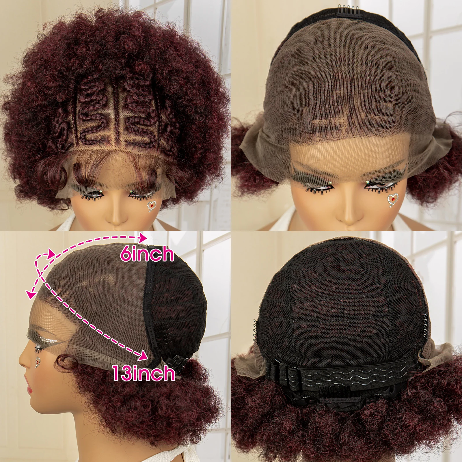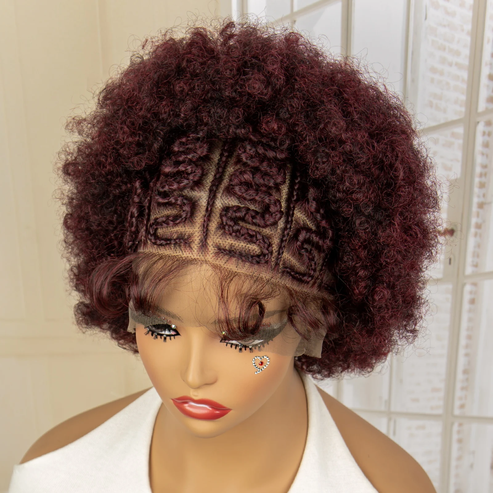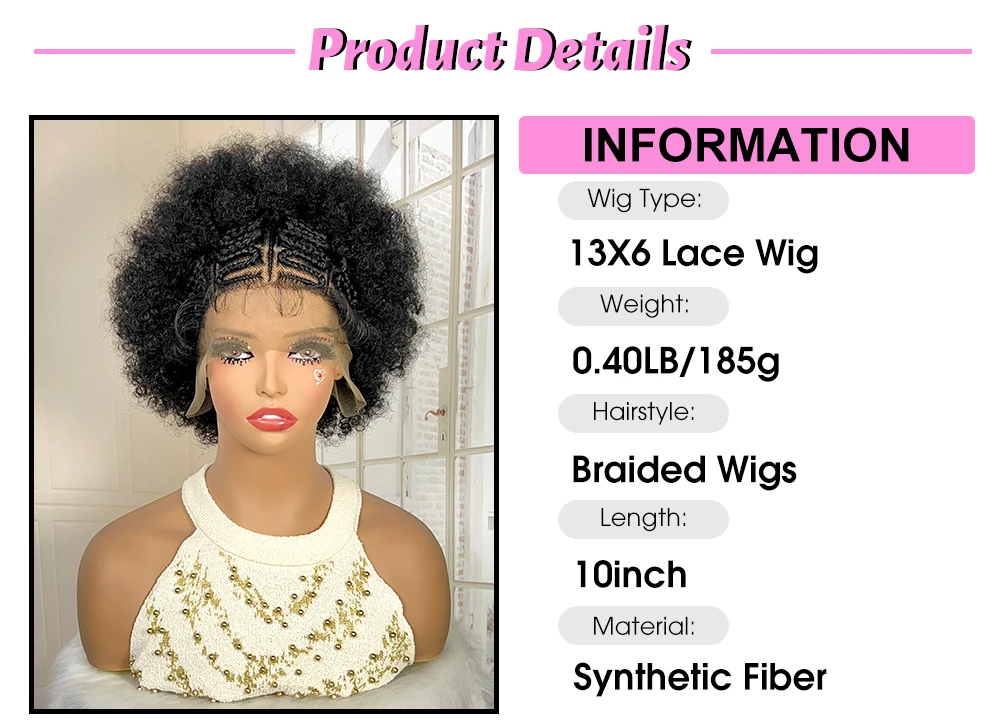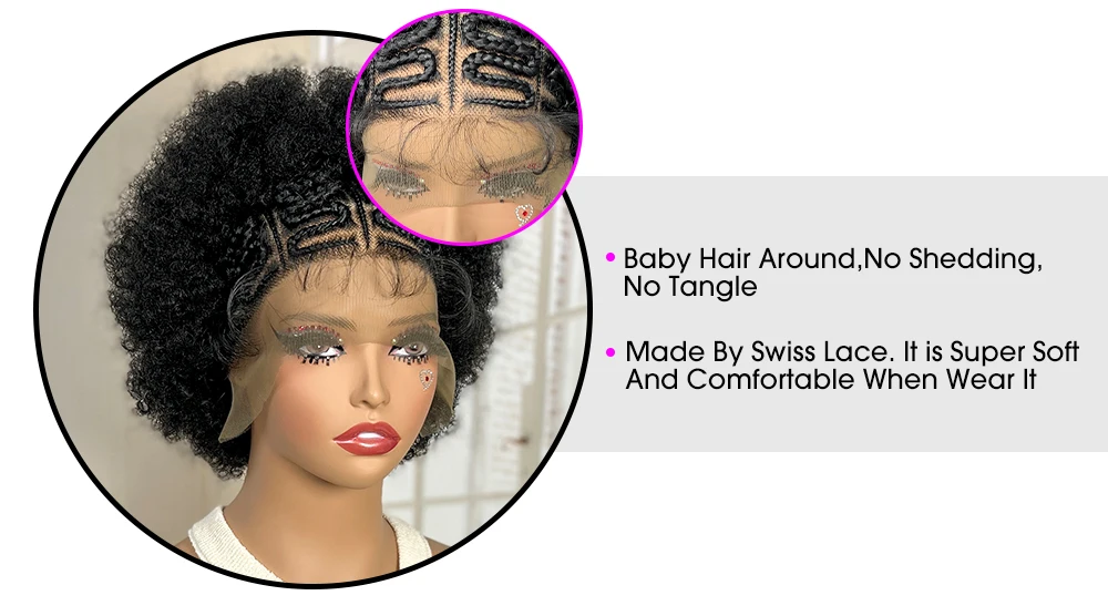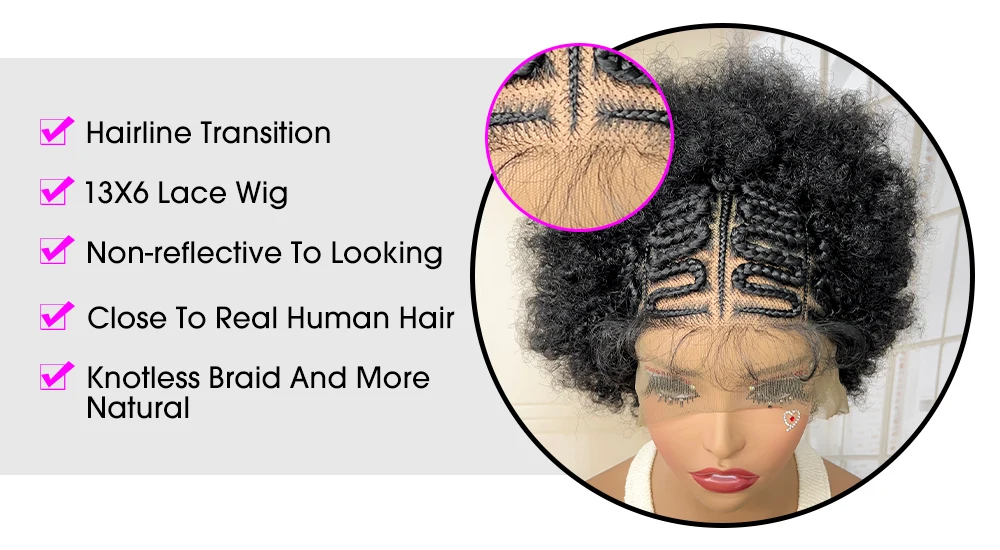 Afro Kinky Curly Braided Wigs for Black Women Lace Frontal Cornrow Braiding Wig with Baby Hair African Box Braids Wig
