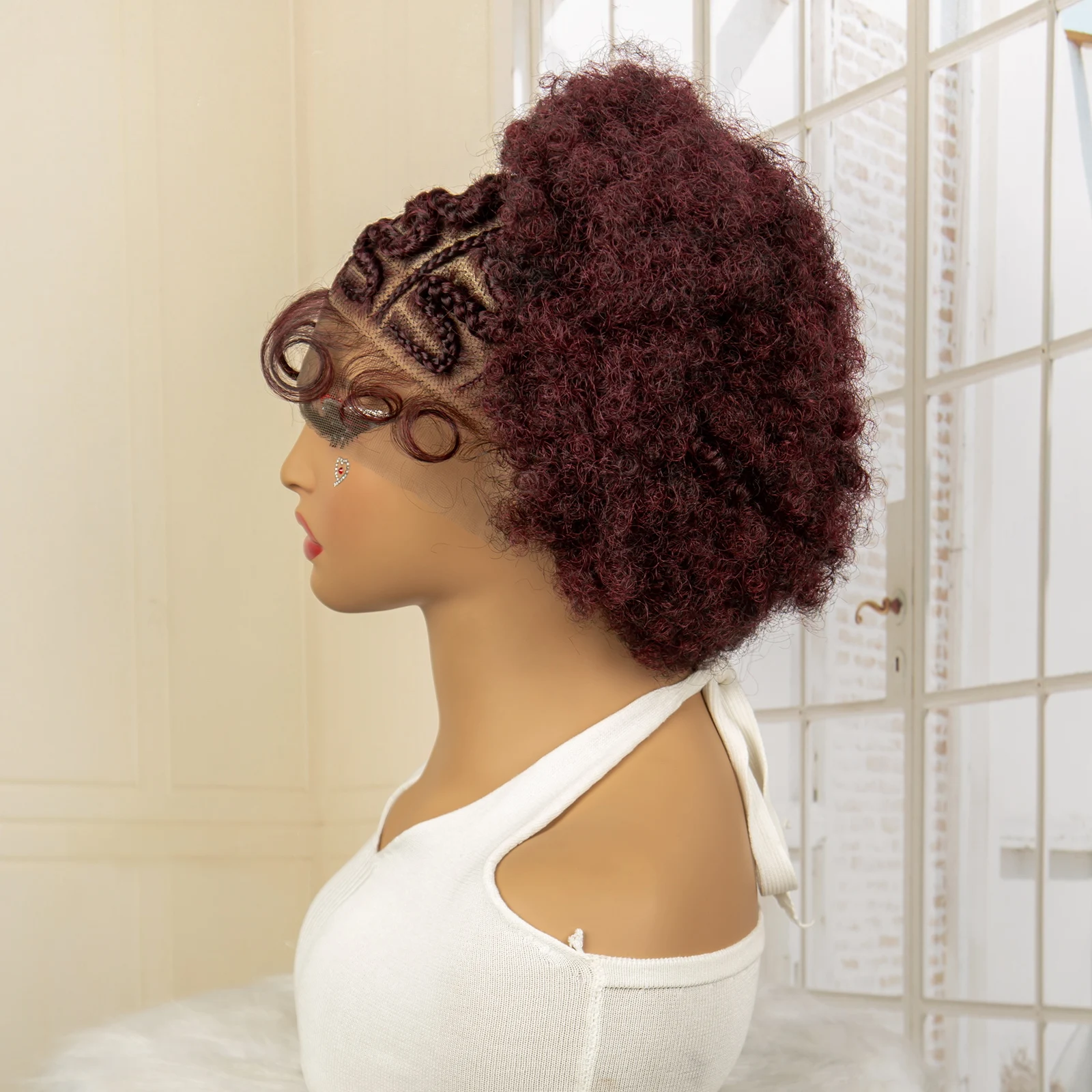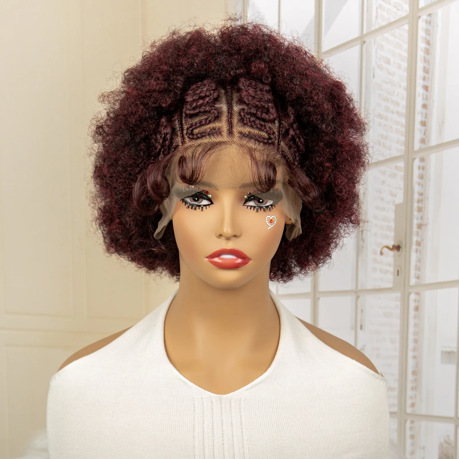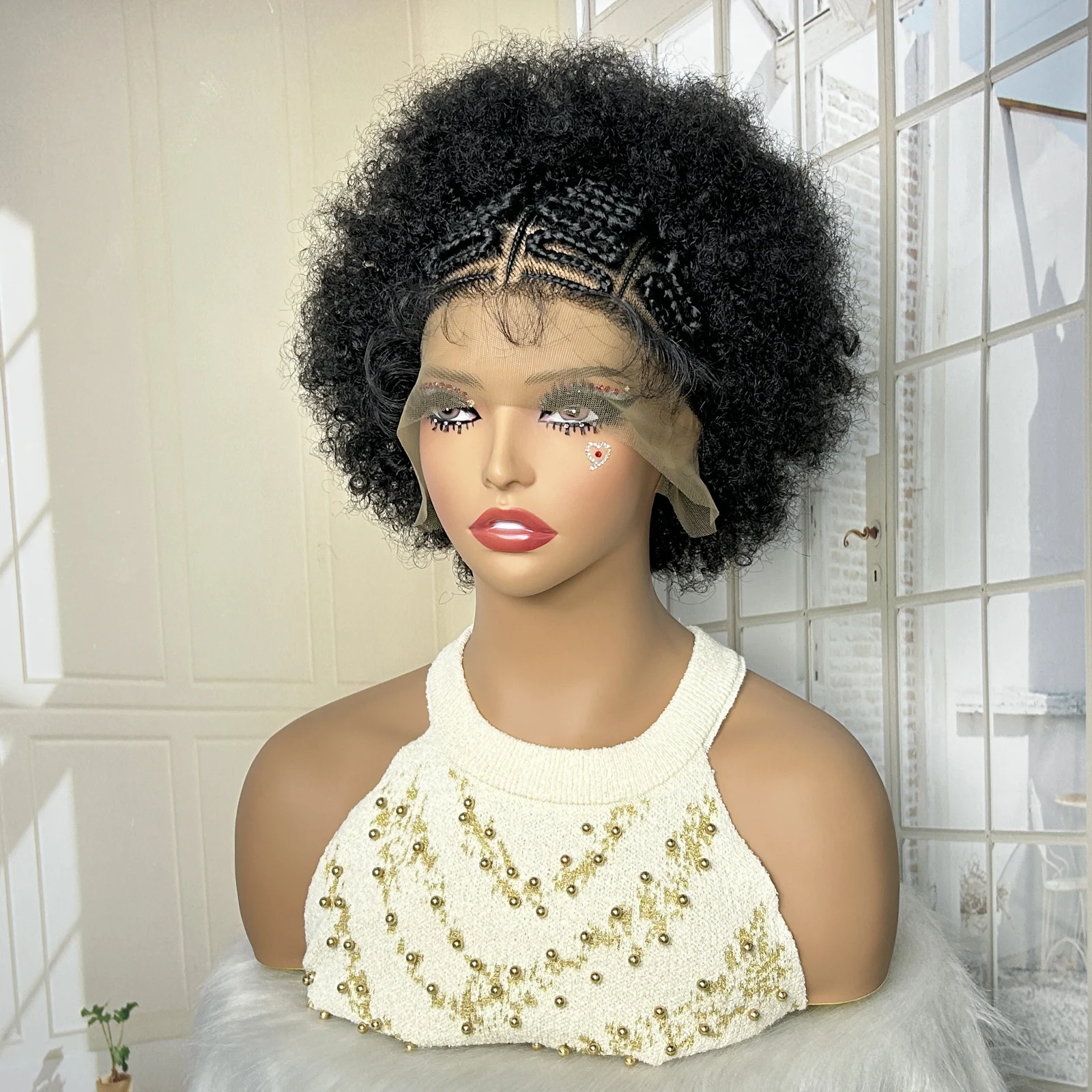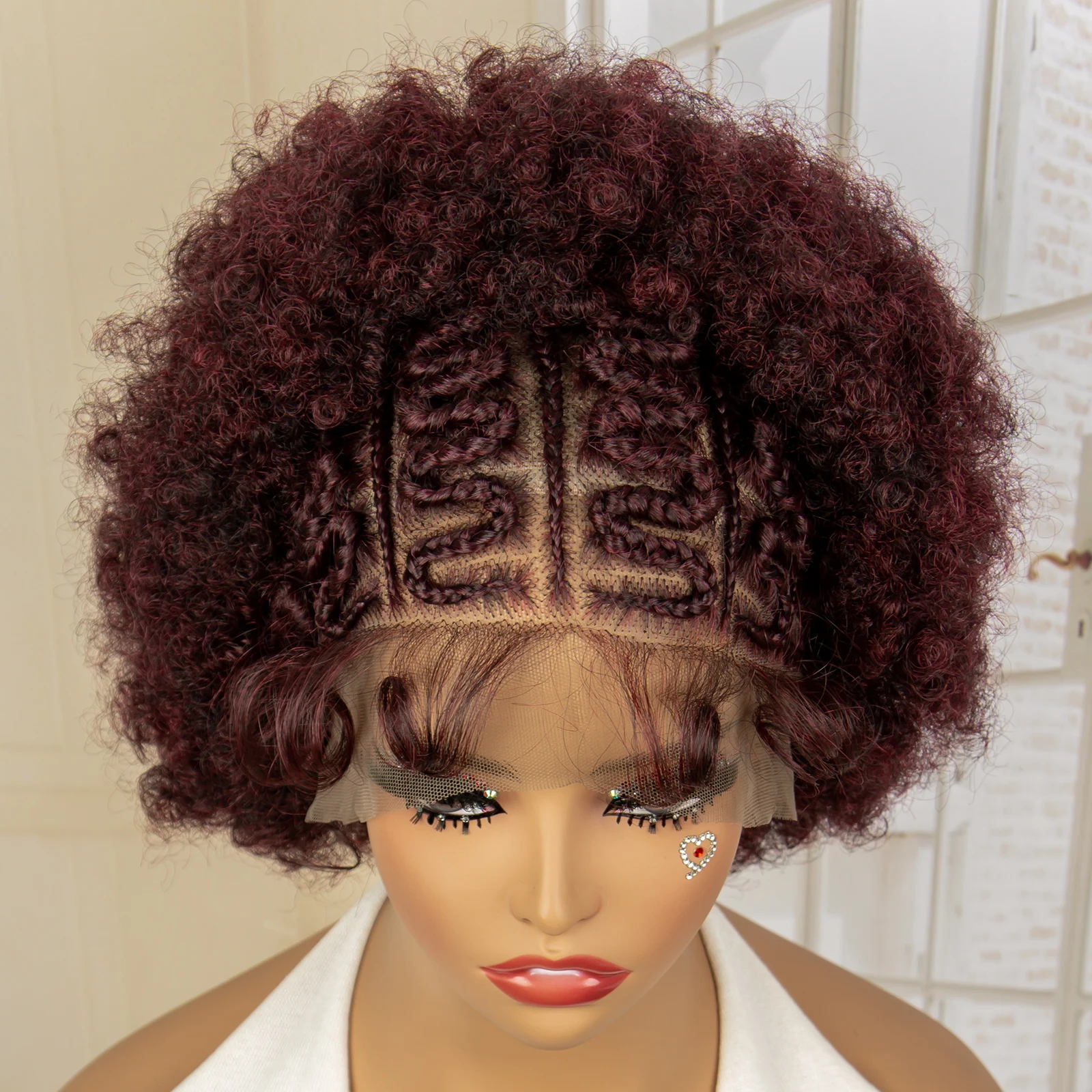 Afro Kinky Curly Braided Wigs for Black Women Lace Frontal Cornrow Braiding Wig with Baby Hair African Box Braids Wig