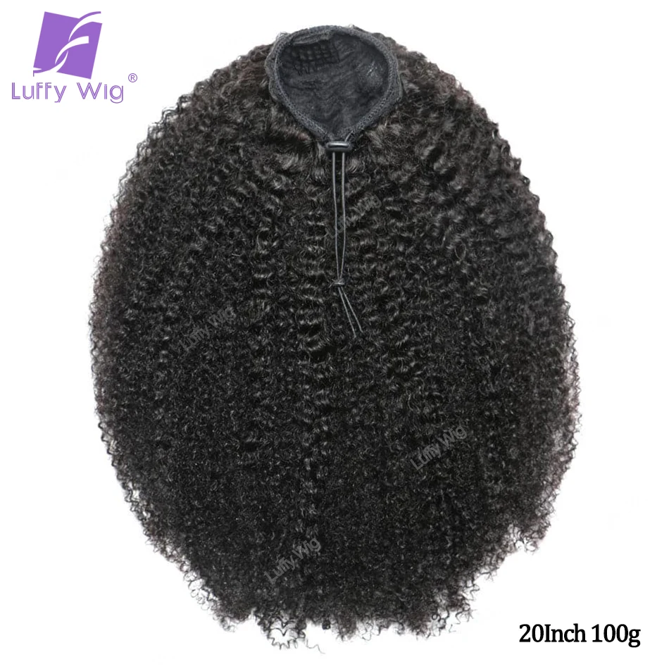 Afro Kinky Curly Drawstring Ponytail Human Hair Real Brazilian Remy Human Hair Ponytail Clip In Extensions Bundles 120g Luffy