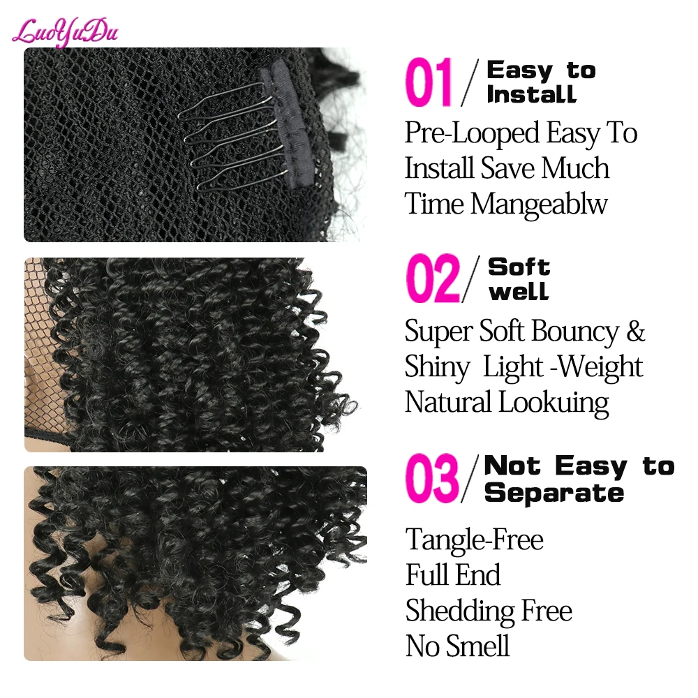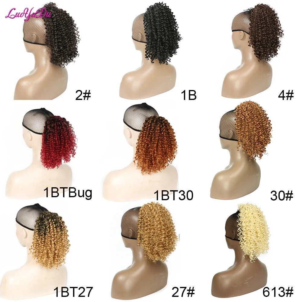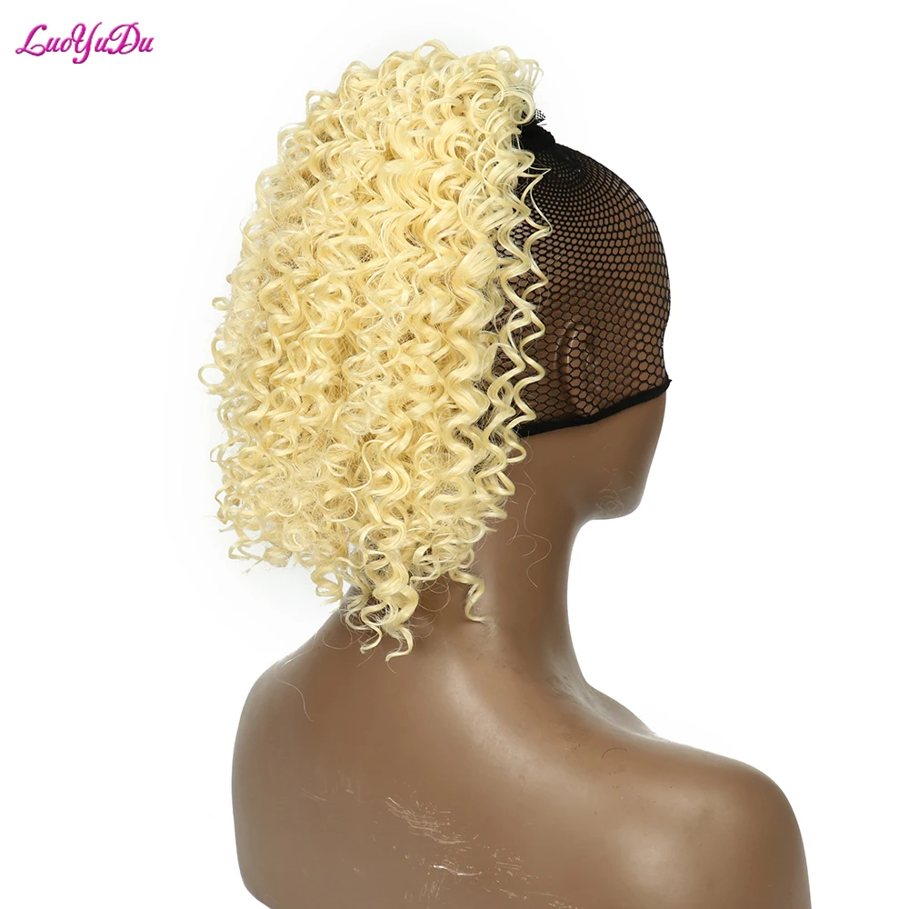 Afro Kinky Curly Ponytail Hair Extension Afro Short Puff Chignon Synthetic Puff Crab Hair Clip In Hairpiece Horse Tail For Women