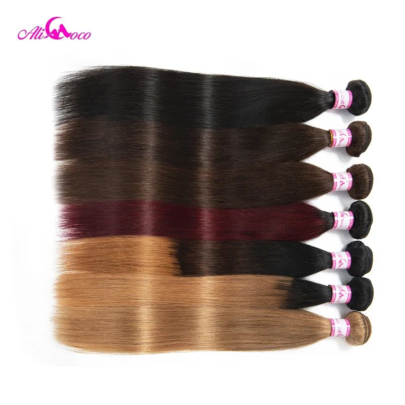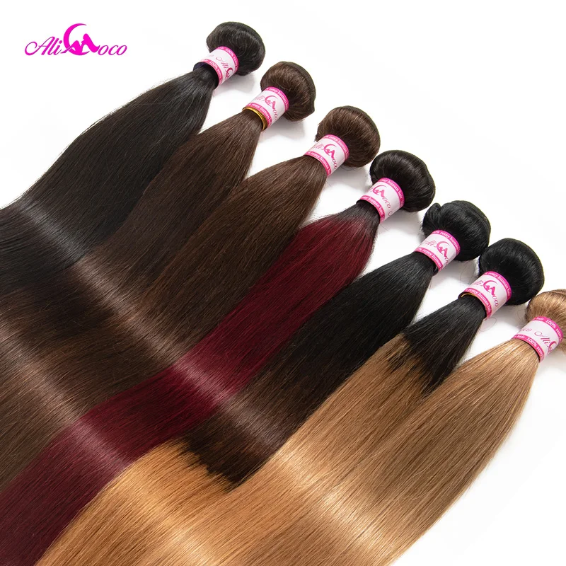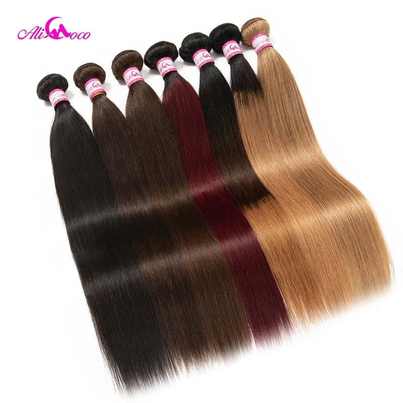Ali Coco Brazilian Straight Hair 1/3/4 Bundles "8-30" inch #2/#4/1b/27/ #27/1b/99j Non Remy Ombre Hair 100% Human Weave Bundles