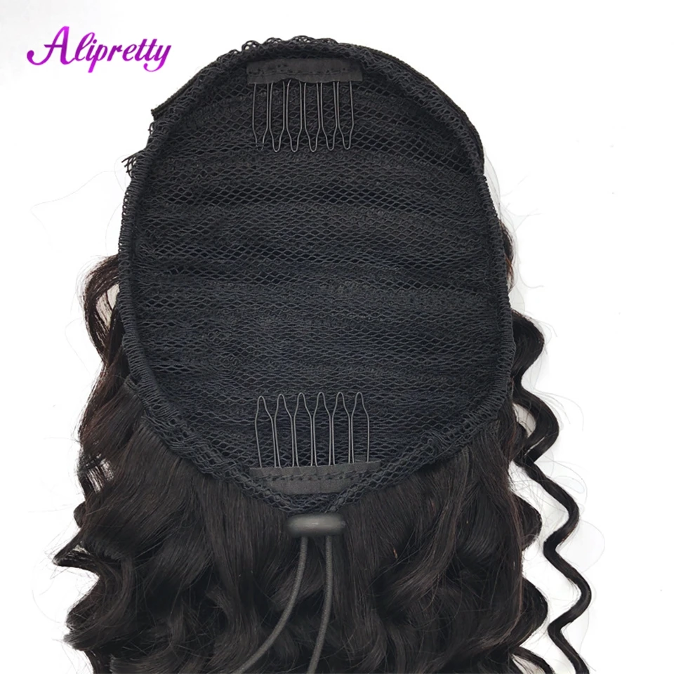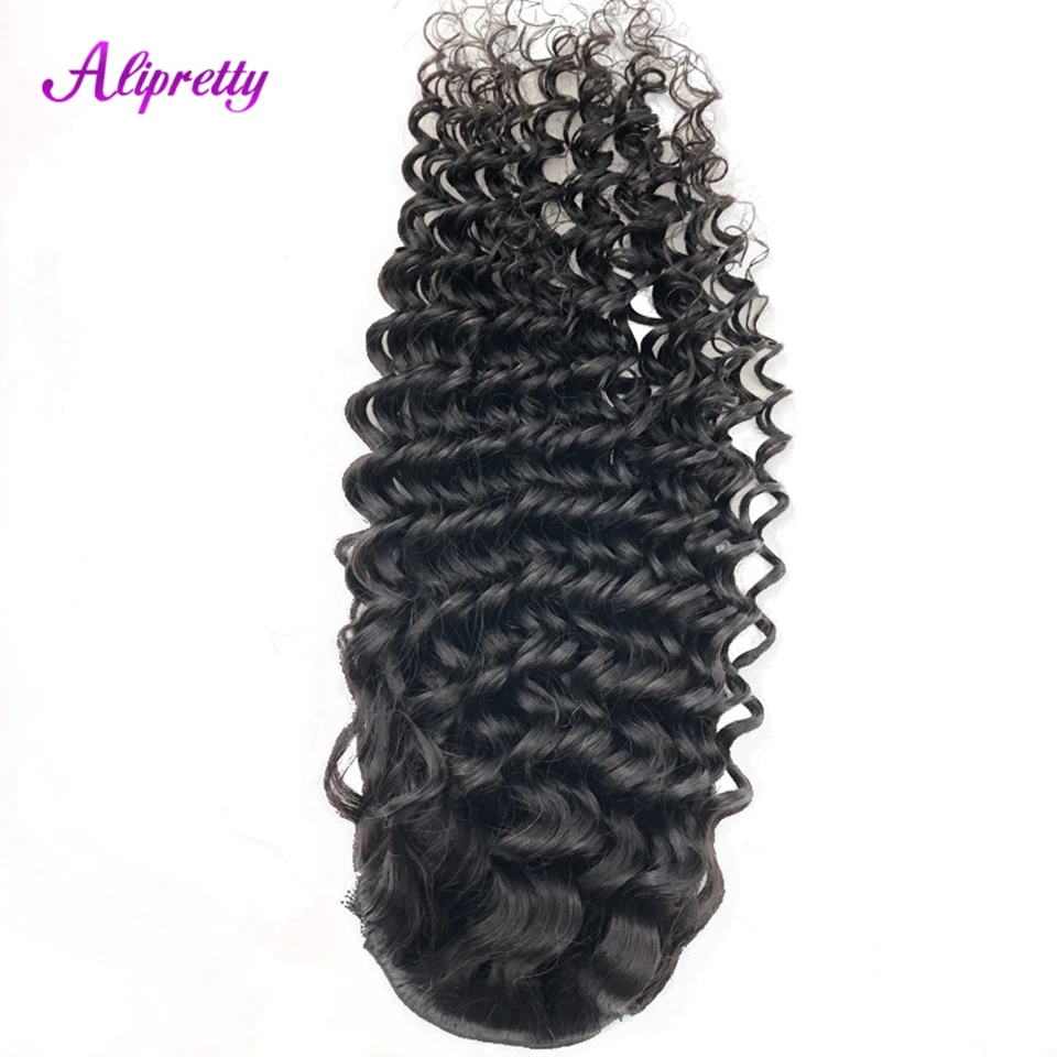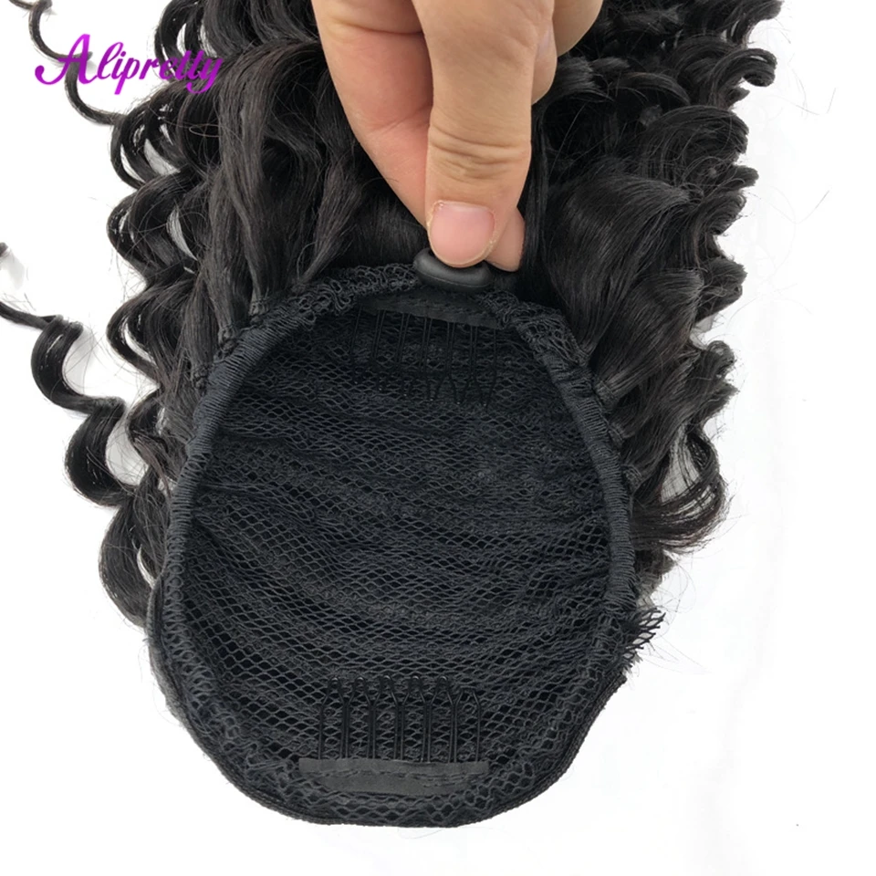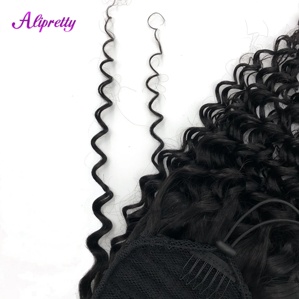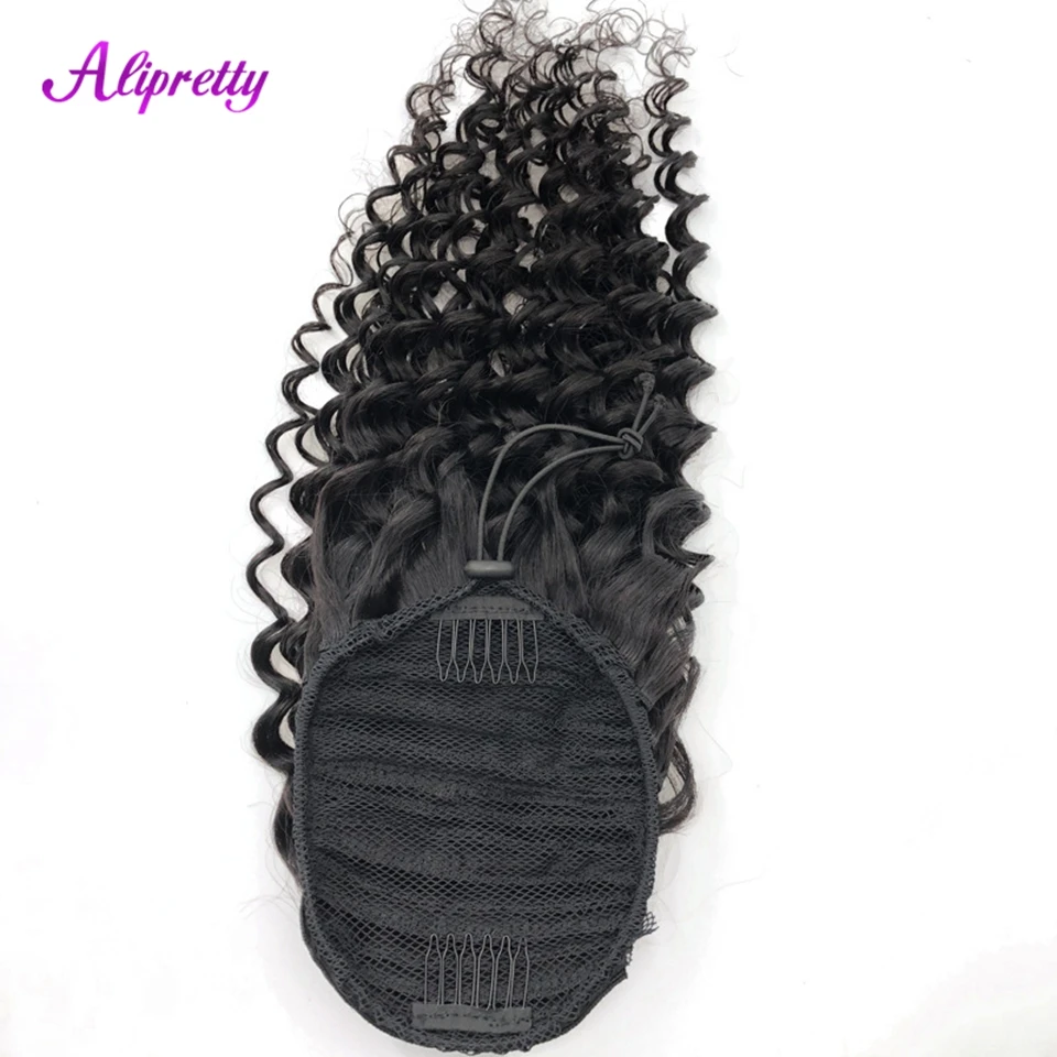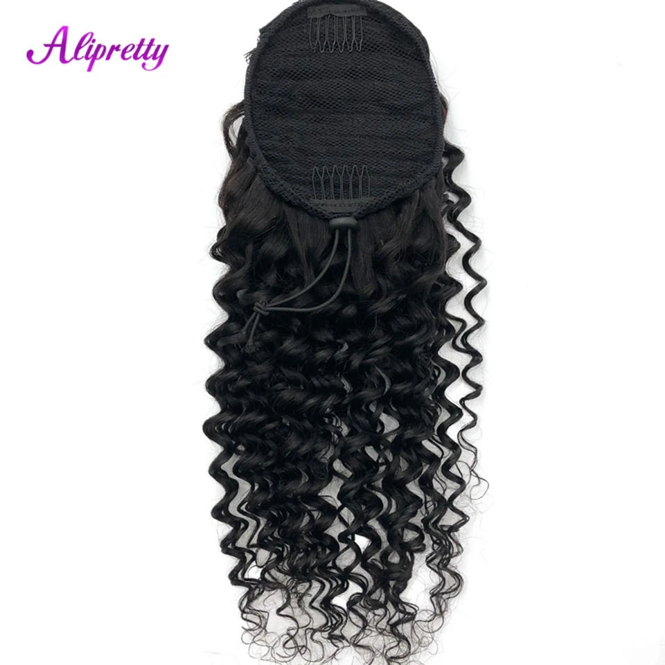 Alipretty Deep Wave Curly Drawstring Ponytail Human Hair Real Natural Color Brazilian Hair Ponytail Clip In Extensions 8-24inch