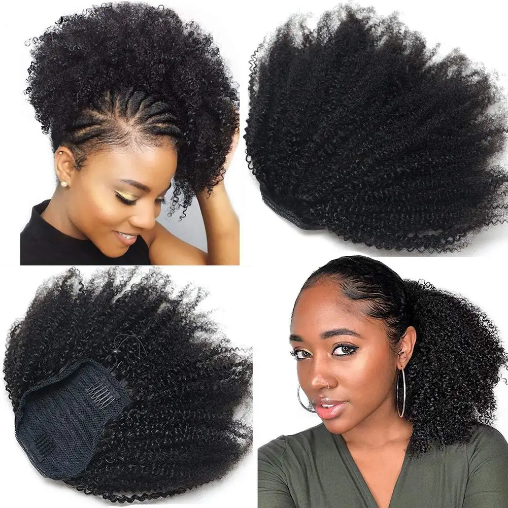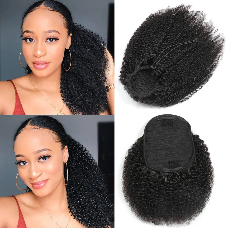 Alipretty Ponytail Human Hair With Drawstring Afro Kinky Curly Ponytail 100% Remy Brazilian Hair Ponytail Long Curly Ponytail