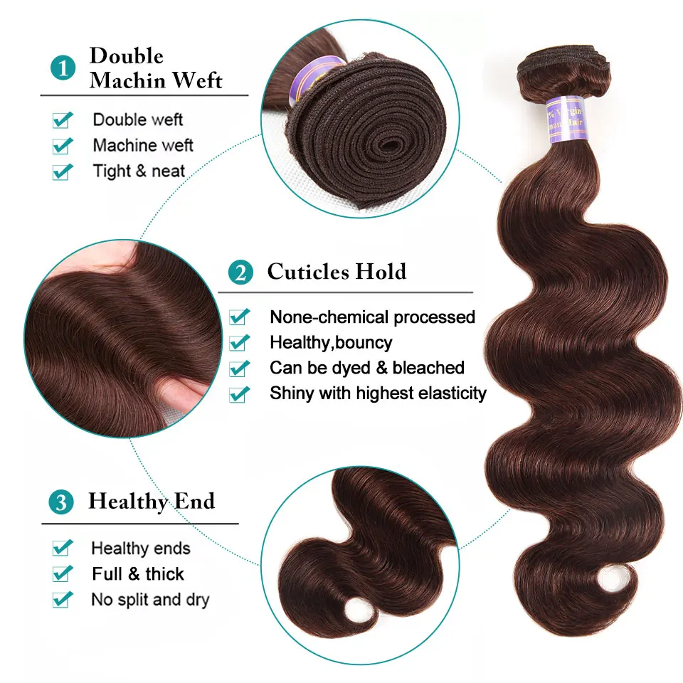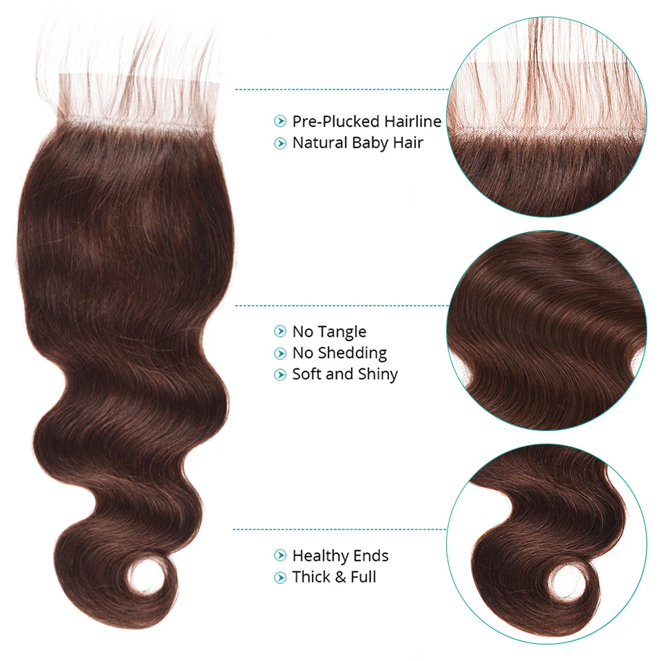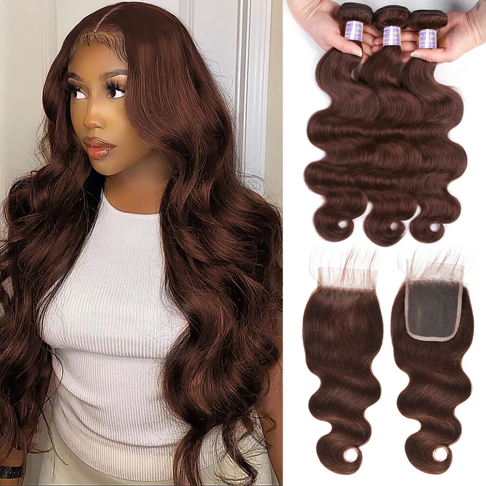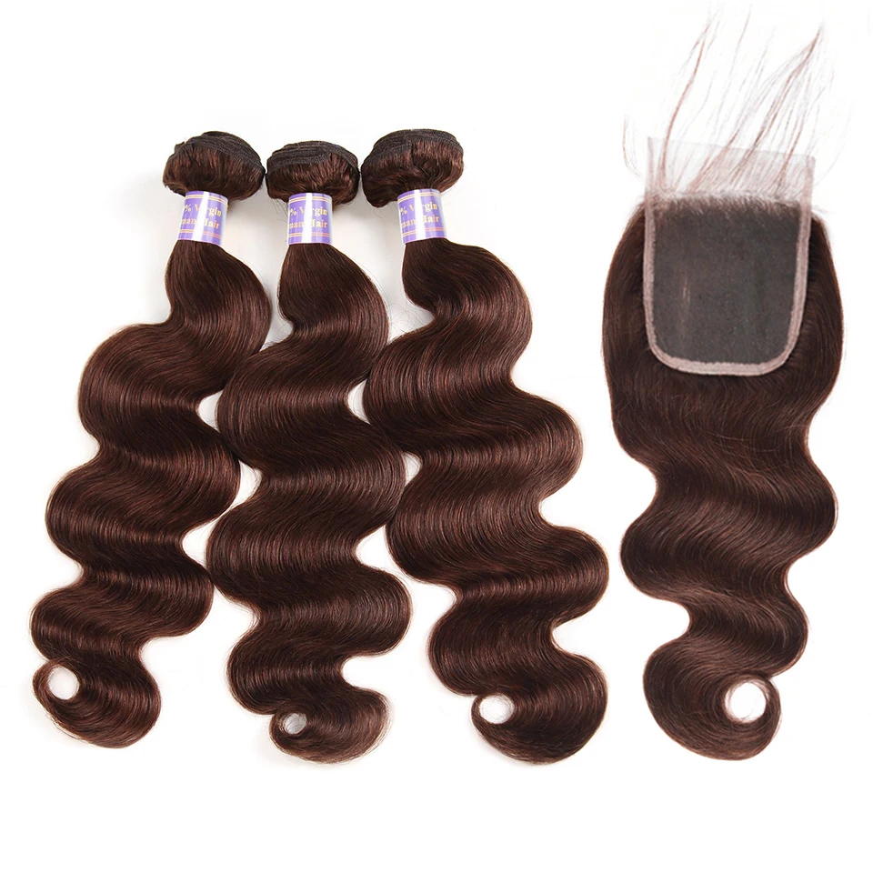 Brown Body Wave Hair Bundles With 4x4 Lace Closure Real Pictures Shows