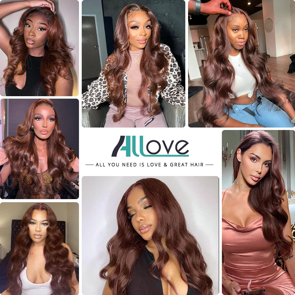 Allove Chocolate Brown Bundles With Closure Transparent Lace Closure With Body Wave Bundles Colored Brazilian Remy Hair Weave