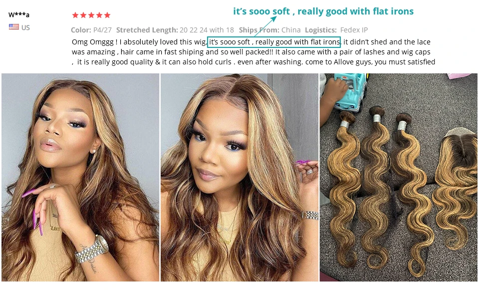 Highlight Body Wave Hair Bundles With 4x4 Lace Closure Real Customer Shows