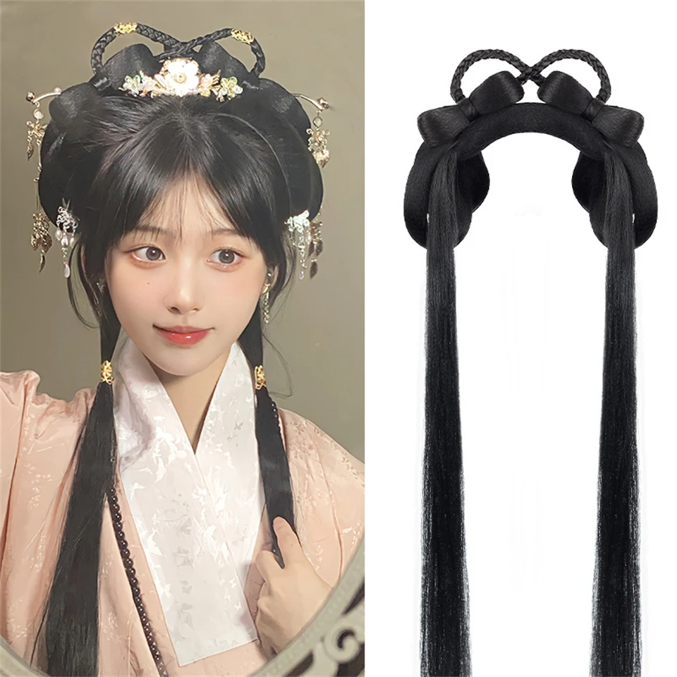 AOSI Synthetic Chinese Traditional Retro Black Hair Chignon Fake Hanfu Hair Bun Pad High Ancient Princess TV Cosplay Wig
