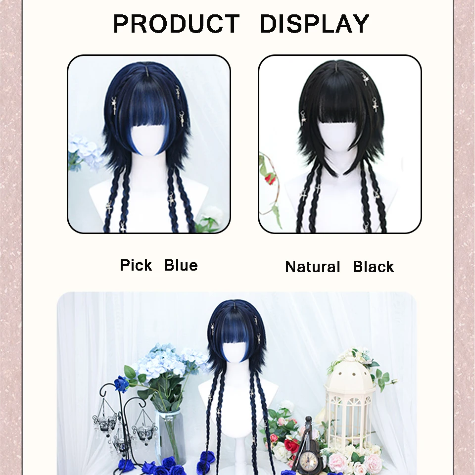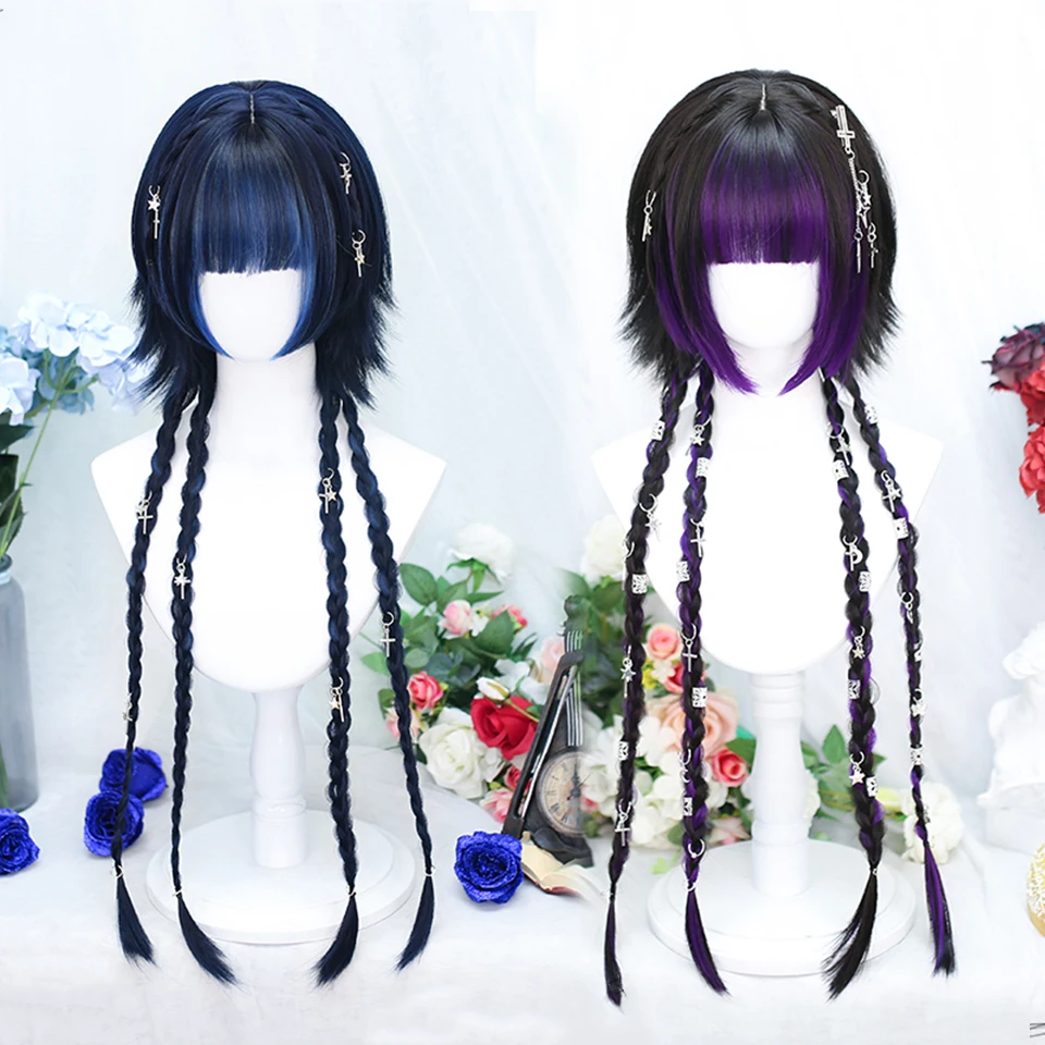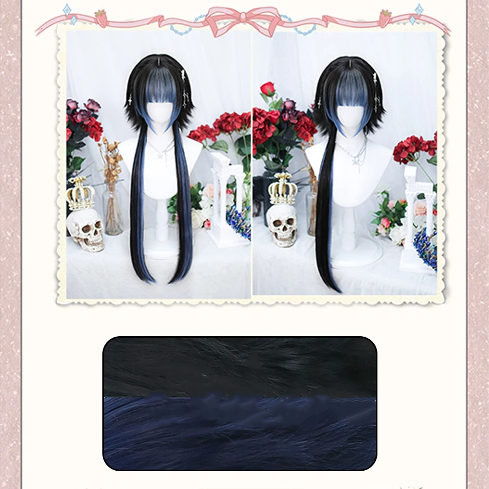 AOSI Synthetic Lolita Long Anime Curly Wigs Hair Black Pick Blue Cosplay Wig Heat-Resisting Fiber Hair Wigs For Women
