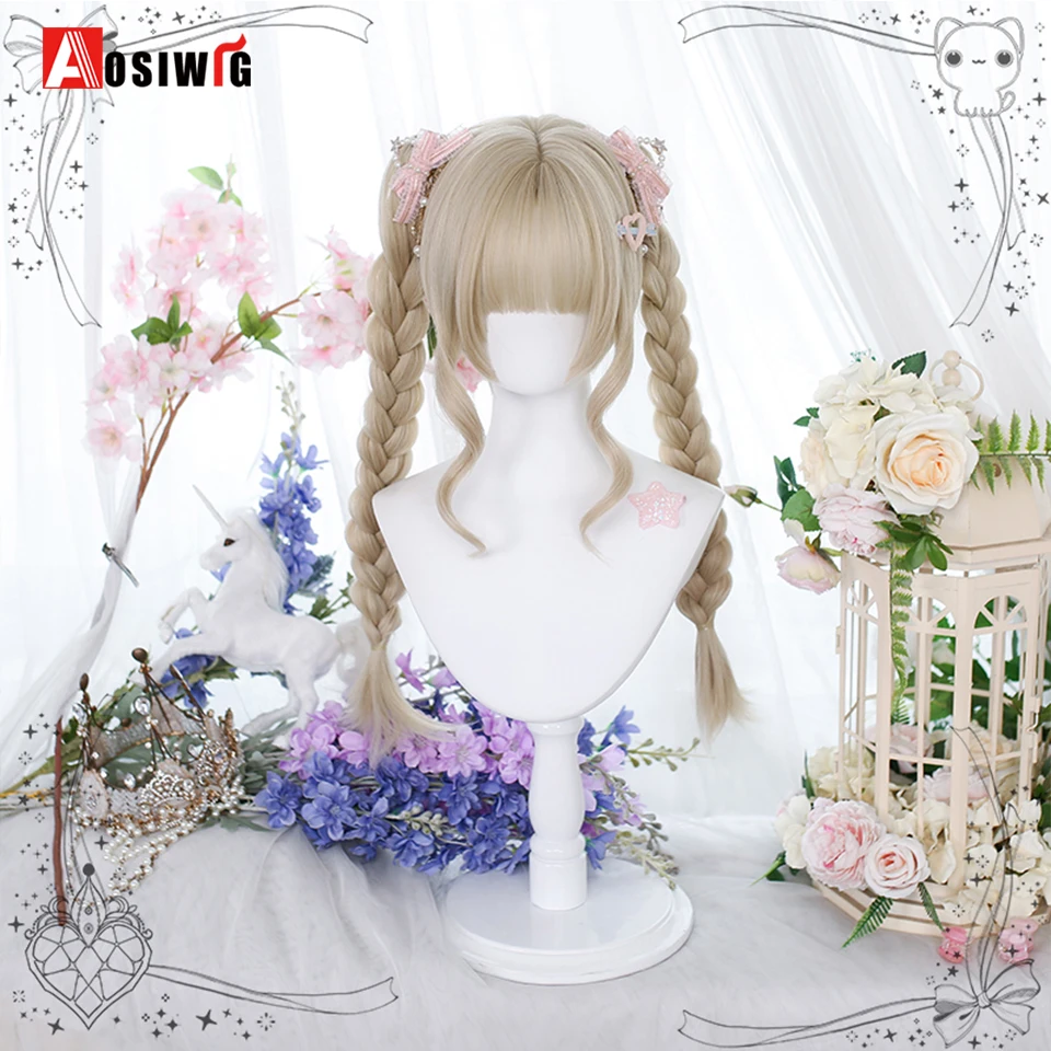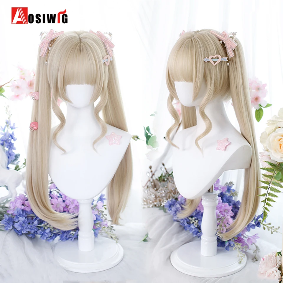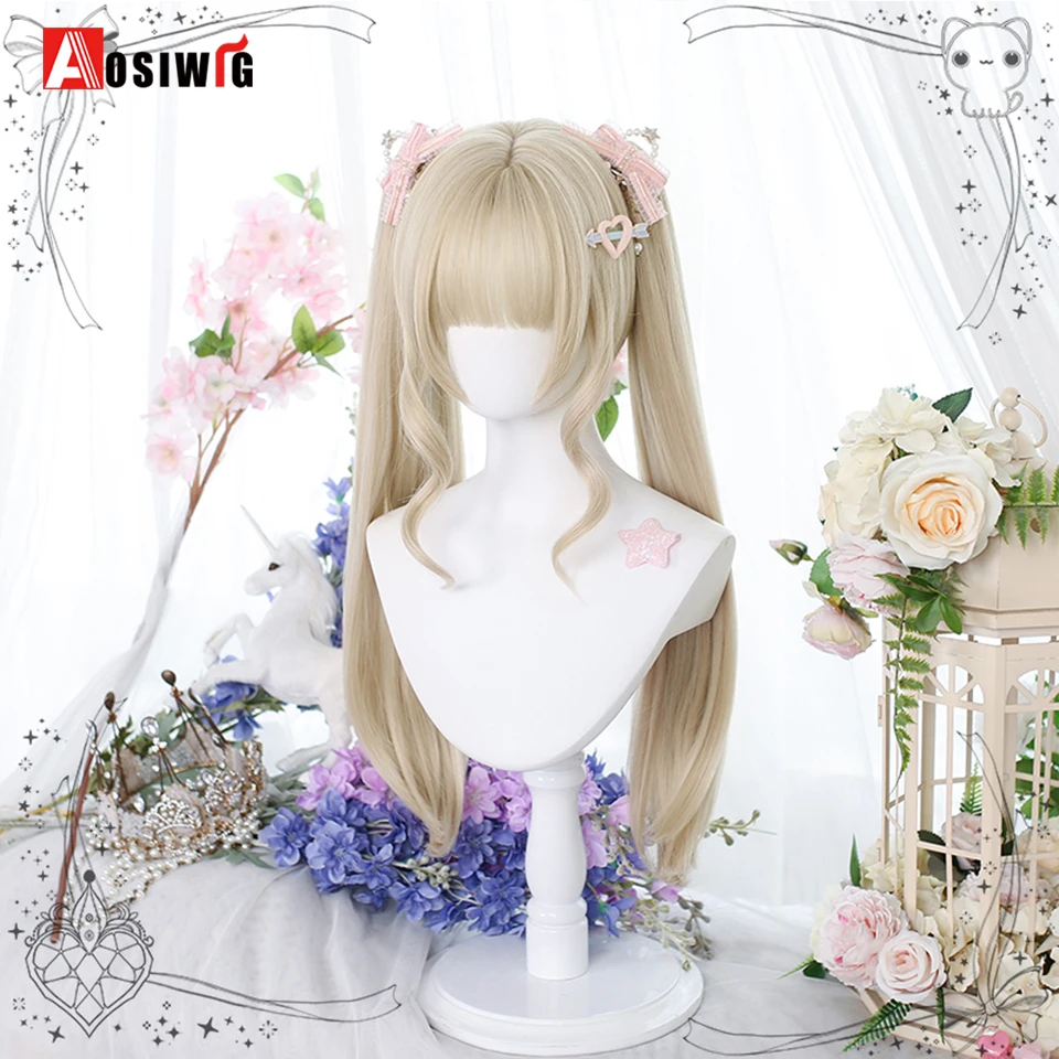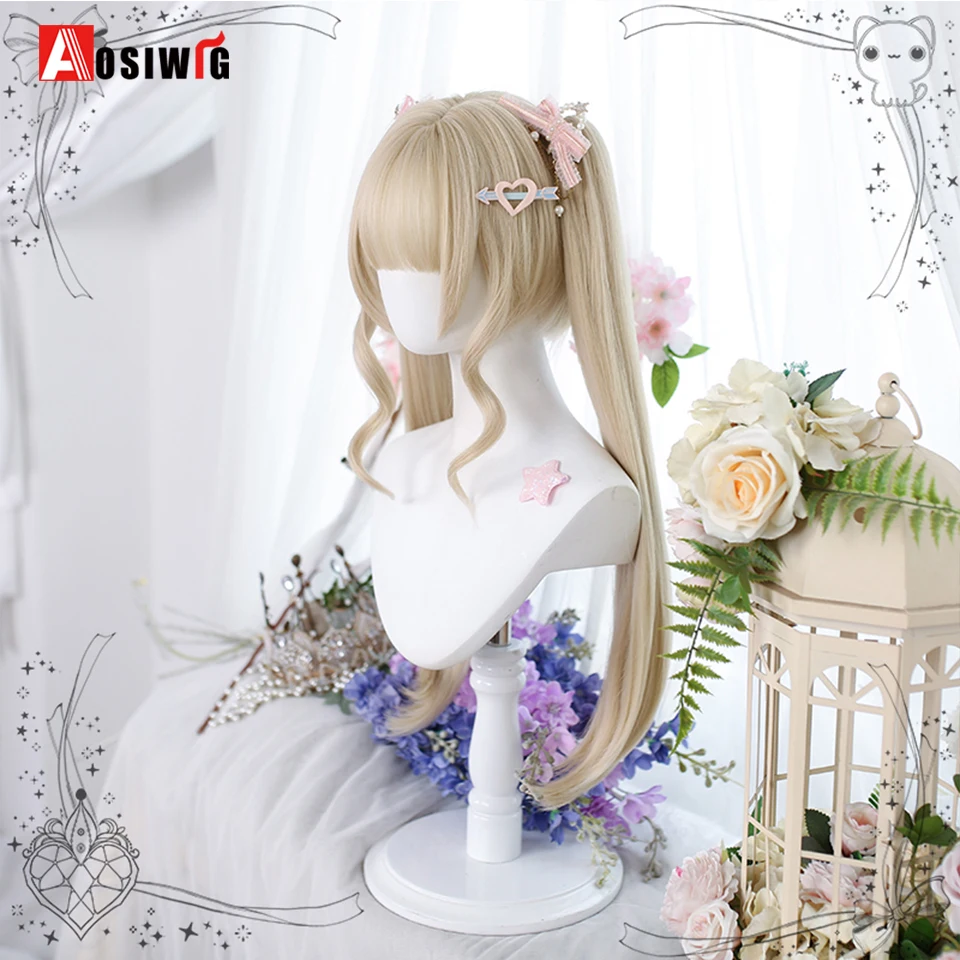 AOSI Synthetic Lolita Long Anime Curly Wigs Hair Black Pick Blue Cosplay Wig Heat-Resisting Fiber Hair Wigs For Women