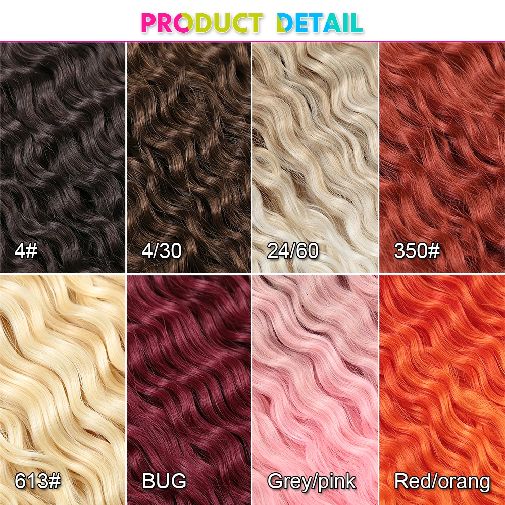 Hair Colors:1B,4#,4/30,350,613,BUG,24/60,Red/Orange,Pink/Grey,