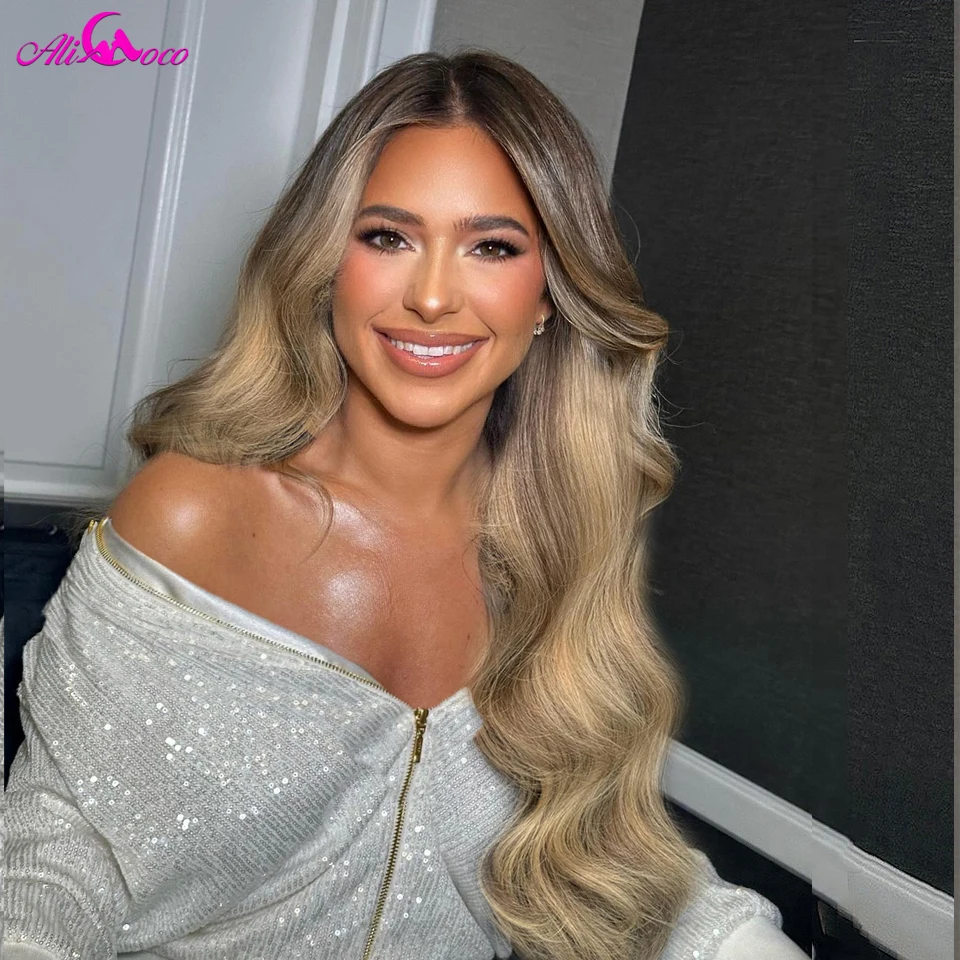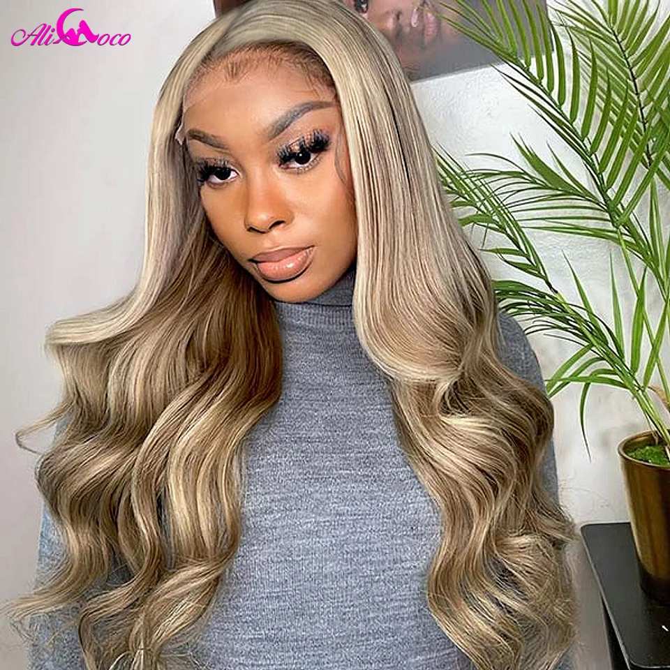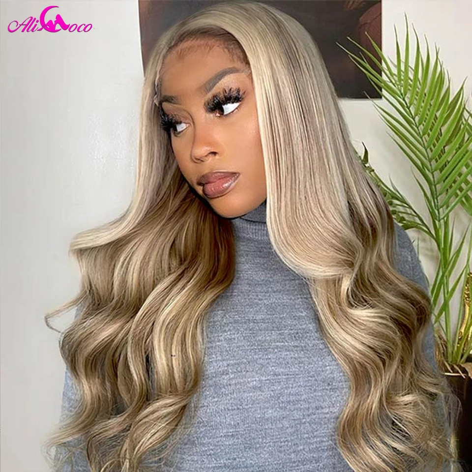Ash Blonde Highlights Color Human Hair Wigs Transparent Lace Frontal Wig For Women Pre Plucked Brazilian Remy Hair Wigs