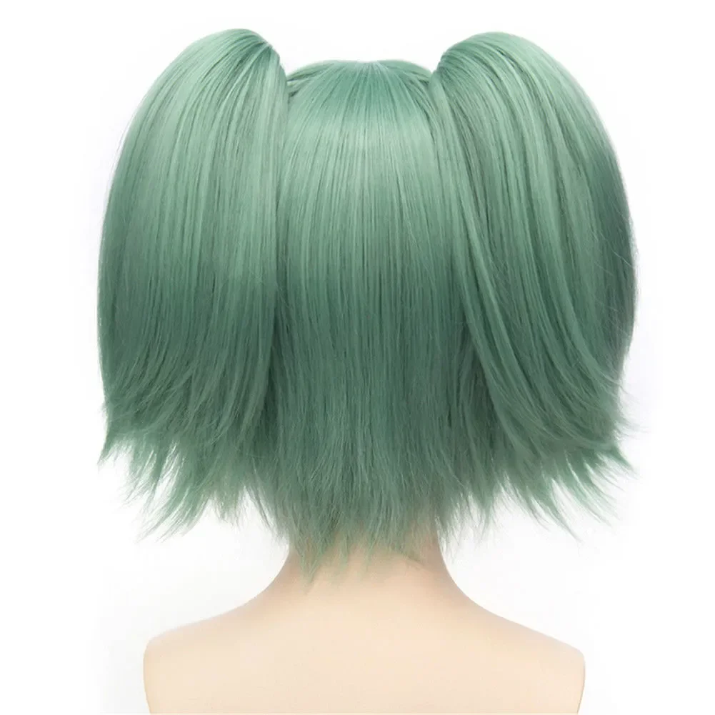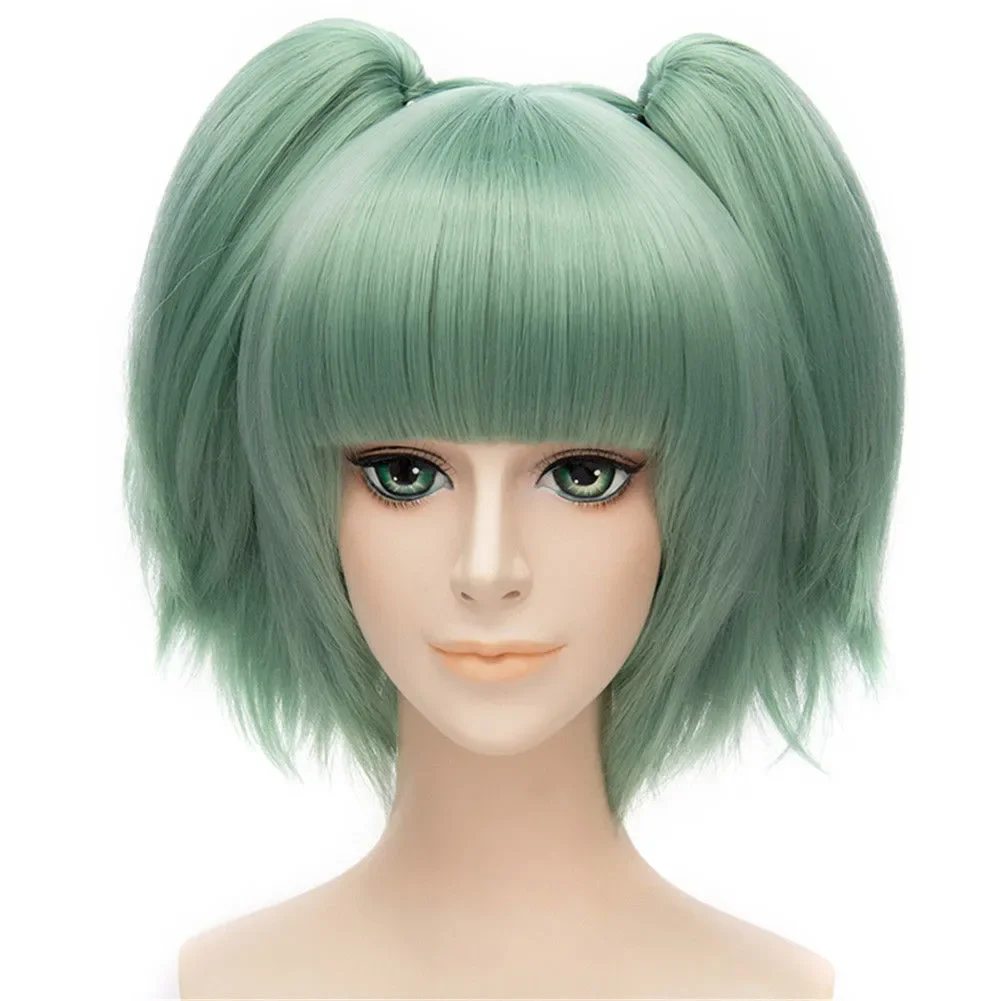 Assassination Classroom Kayano Kaede Halloween Short Green Cosplay Hair Wigs With 2 Ponytail